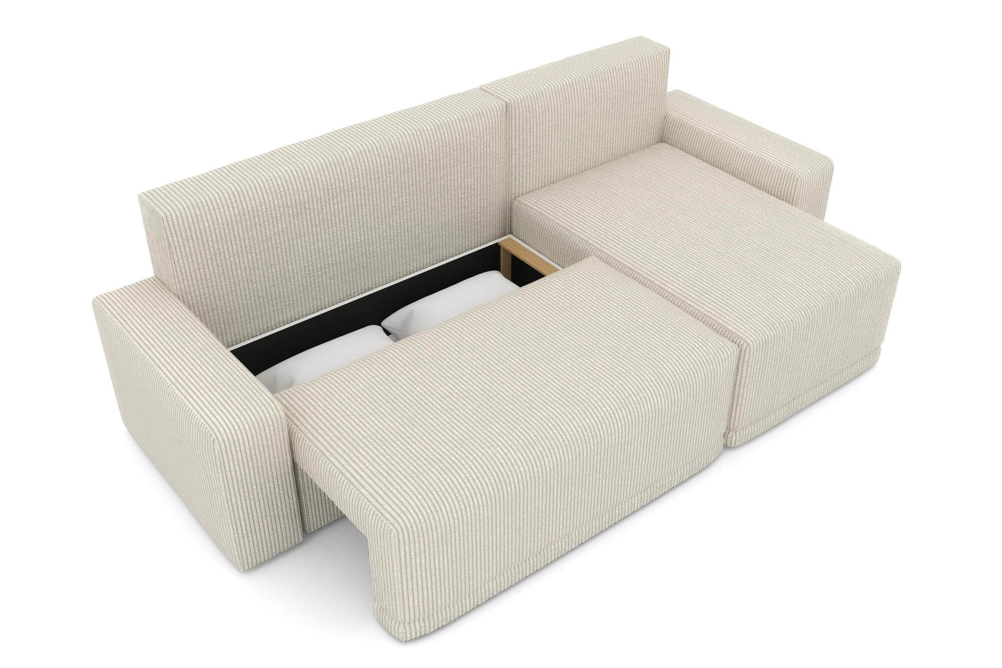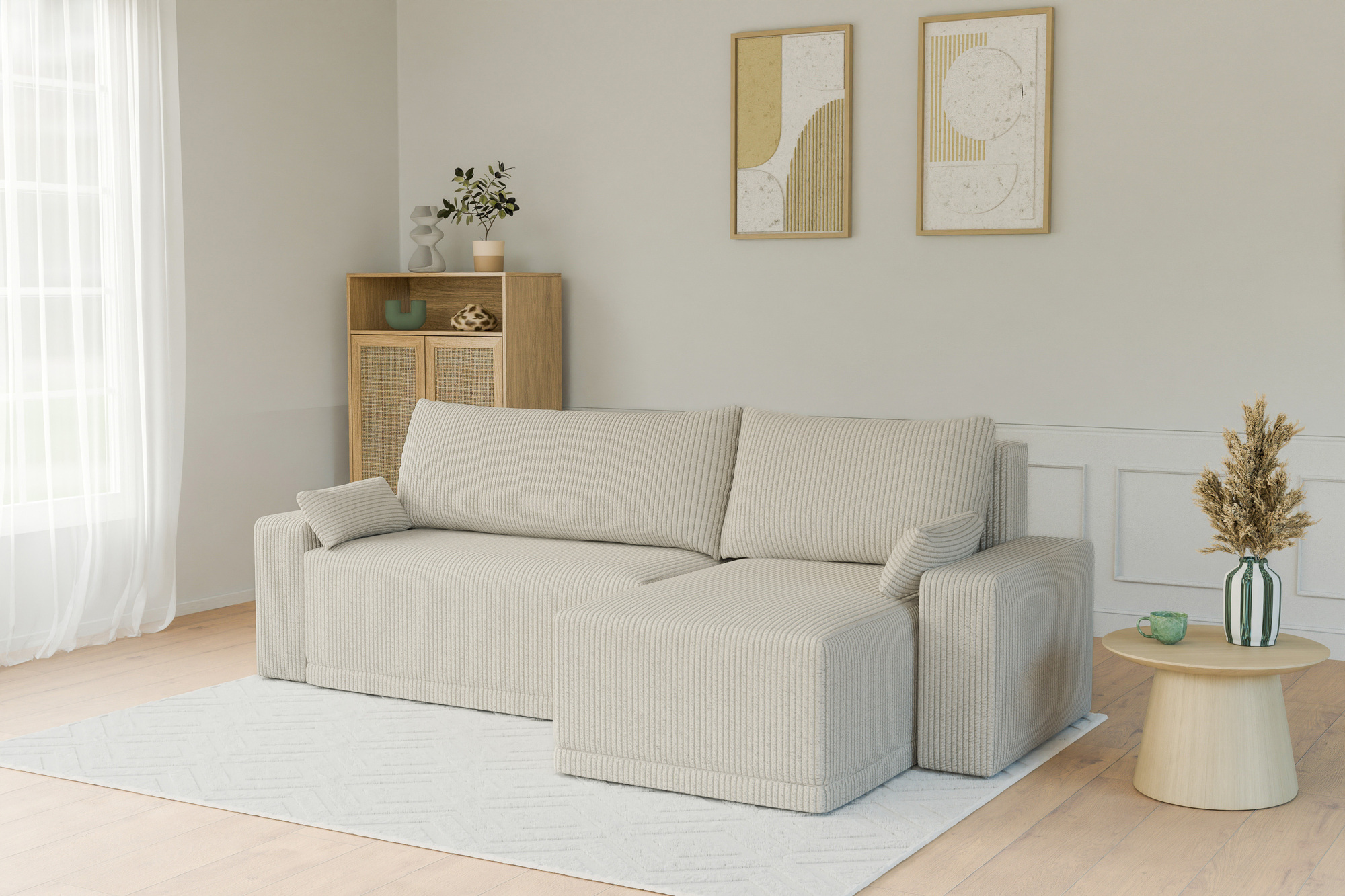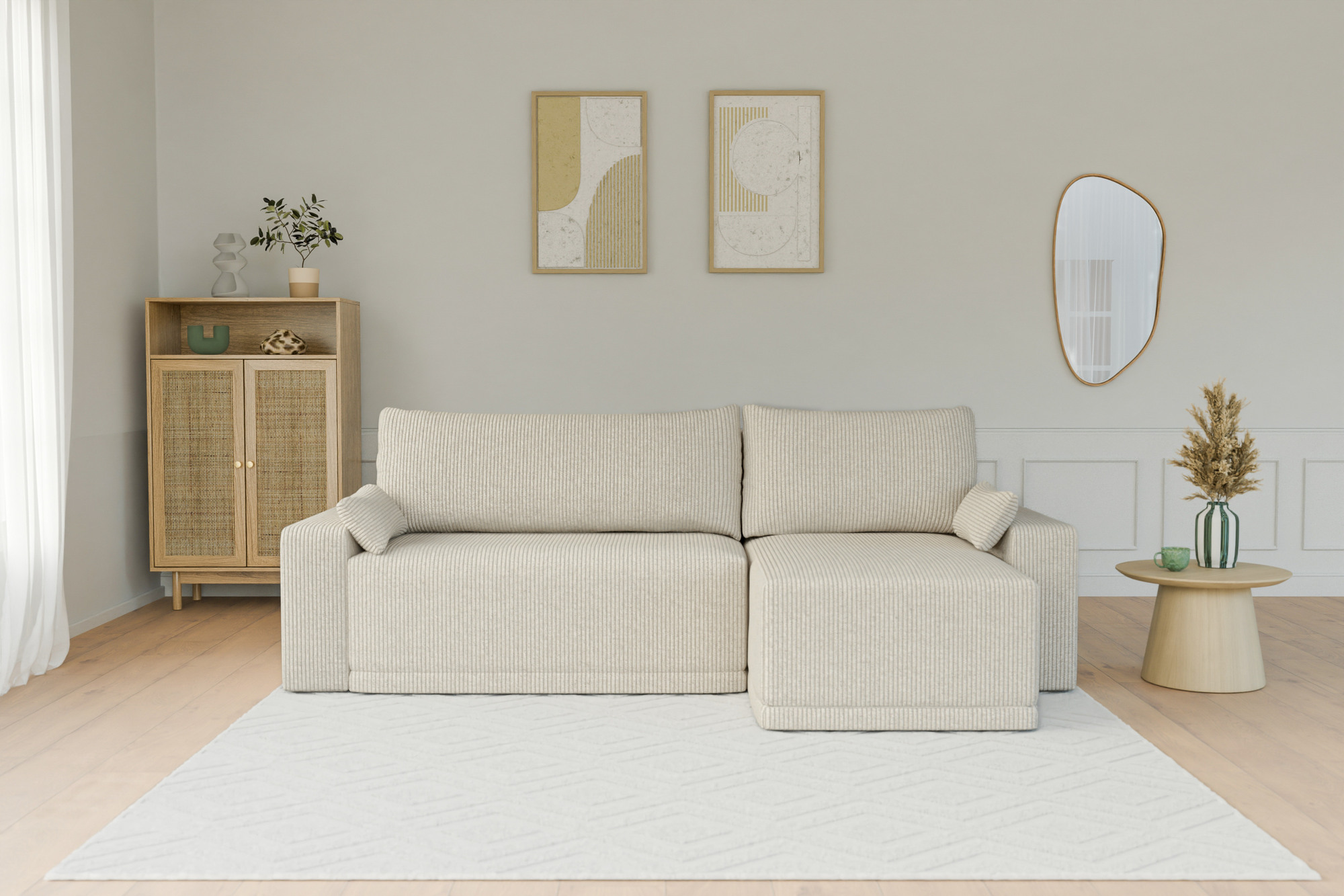 Canapé d'angle TEO convertible velours côtelé beige 4 places
