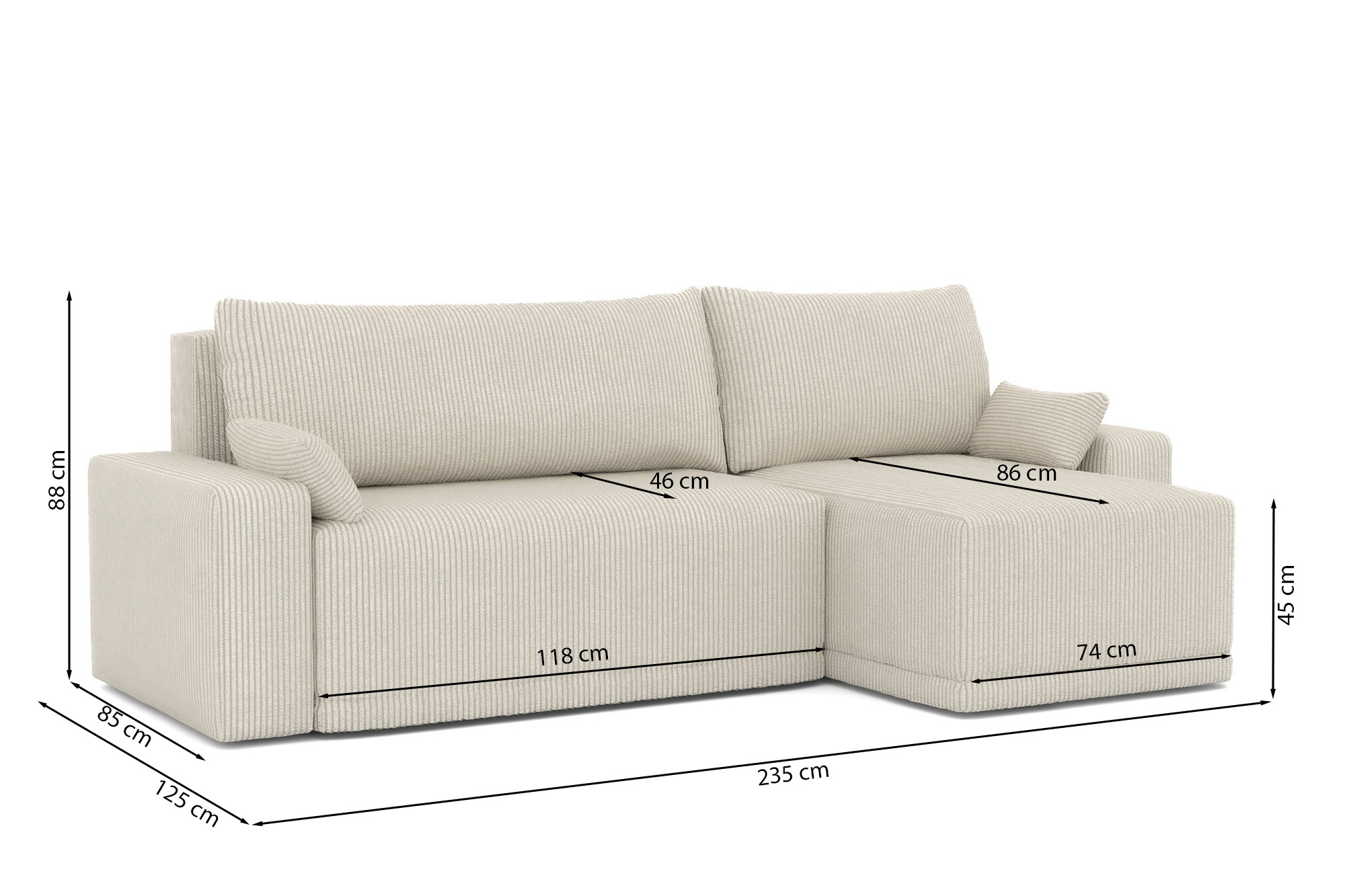 Dimensions du canapé : 235 x 125 x 88 cm