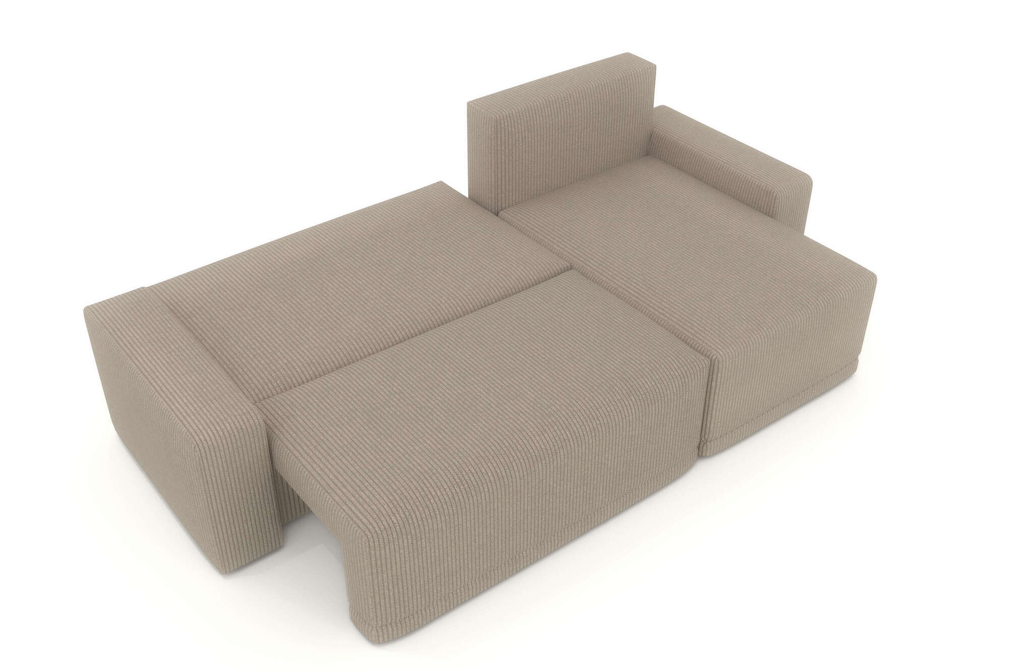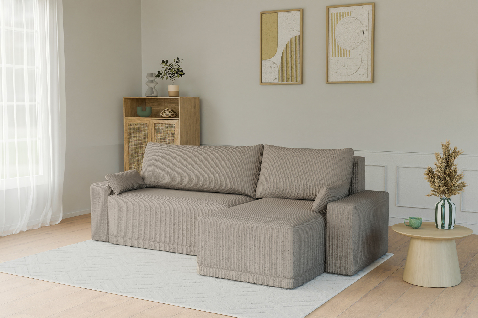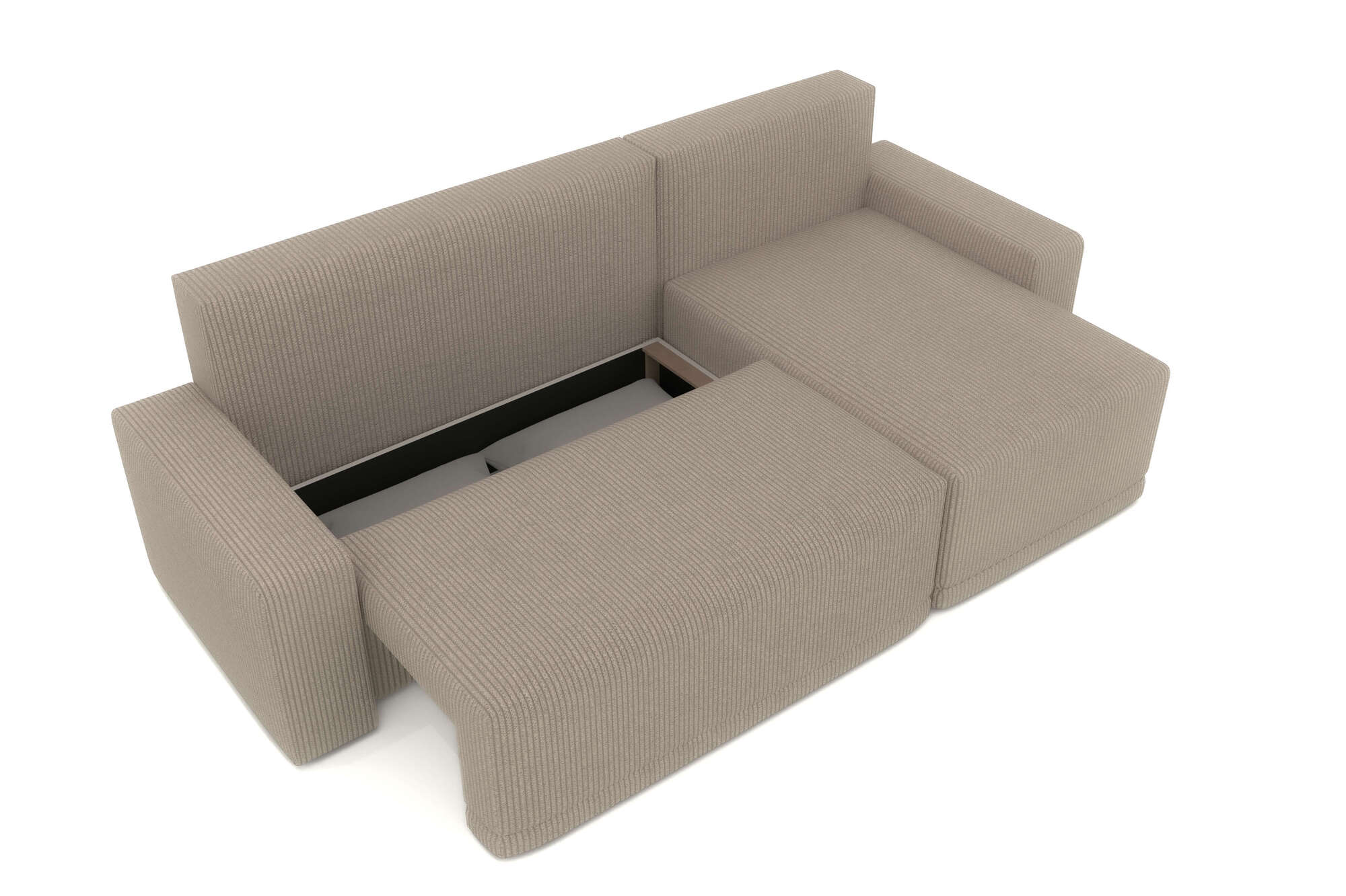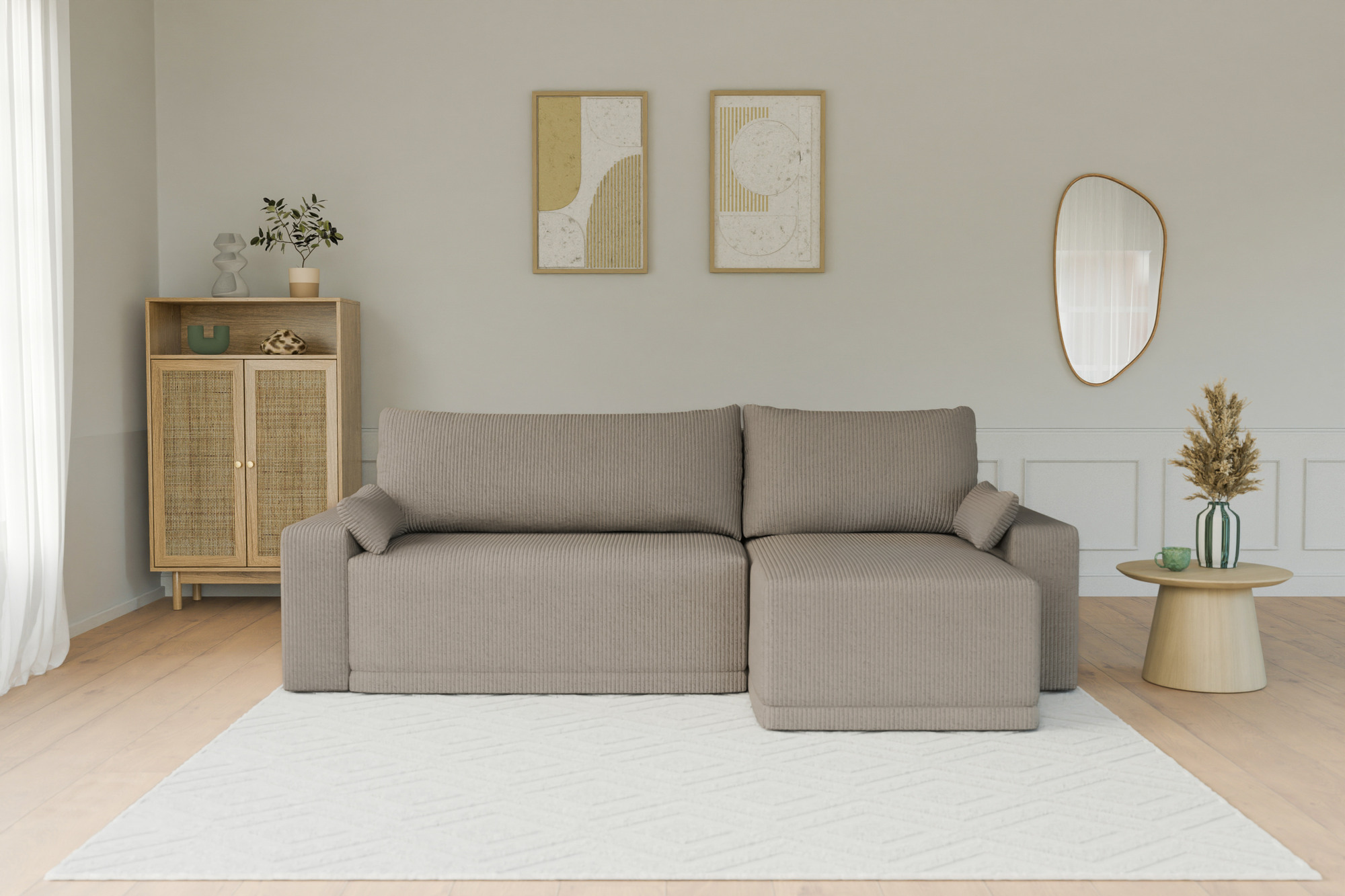 Canapé d'angle TEO convertible velours côtelé grège 4 places