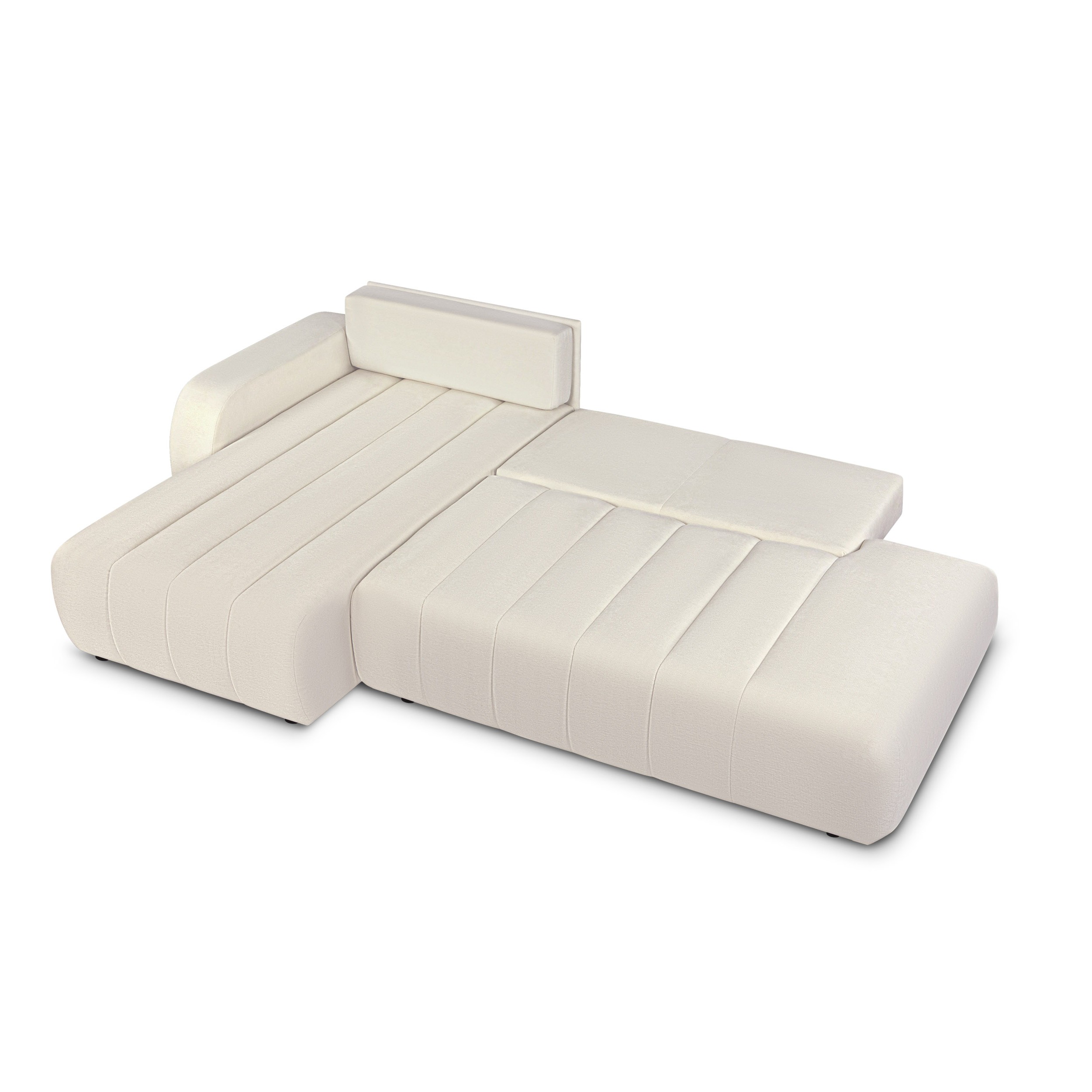Canapé d'angle gauche convertible BELEM 4/5 places tissu chenille écru