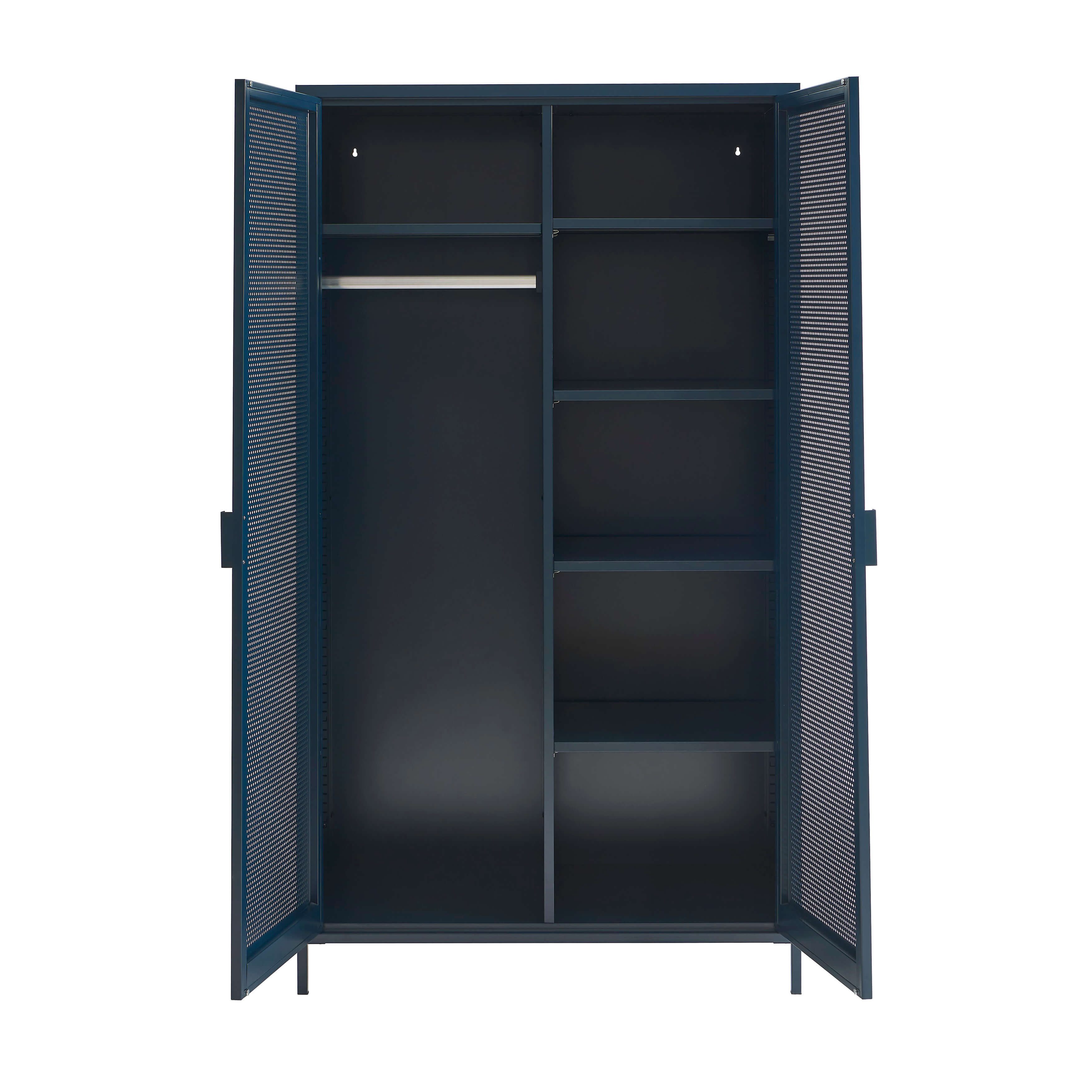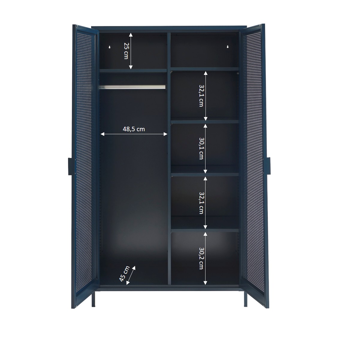 Avec ses dimensions L100 x P50 x H180 cm, cette armoire offre un volume de rangement important tout en conservant une silhouette épurée. Ses deux portes métalliques permettent de dissimuler facilement vêtements, accessoires ou objets du quotidien, pour un intérieur parfaitement organisé.