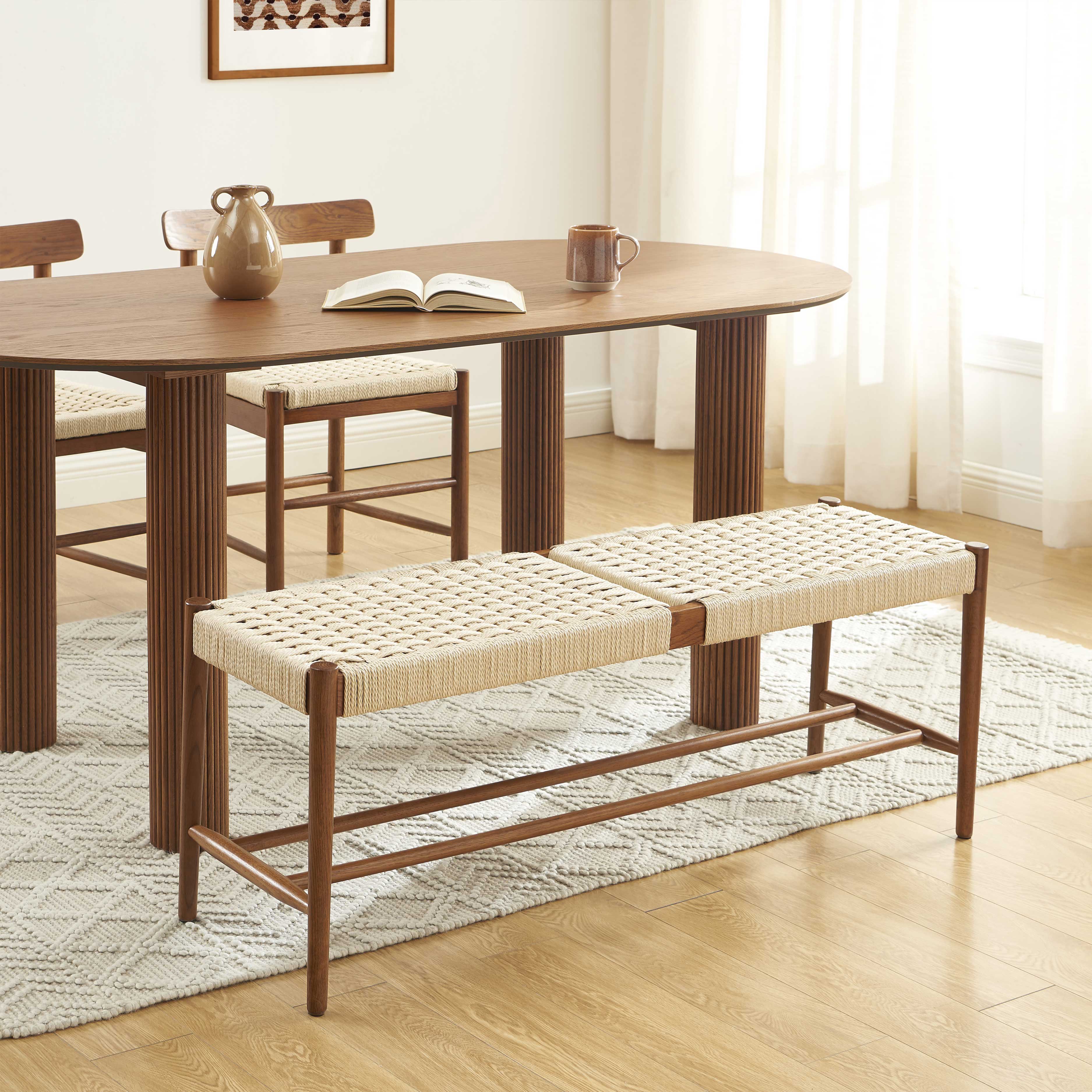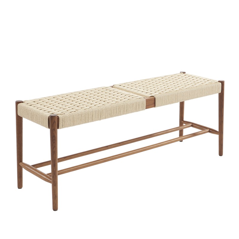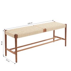 Ce banc est idéal pour accueillir plusieurs personnes autour d'une table, dans une entrée ou au pied d’un lit. Son assise en corde assure un confort optimal tout en apportant une touche d’originalité.