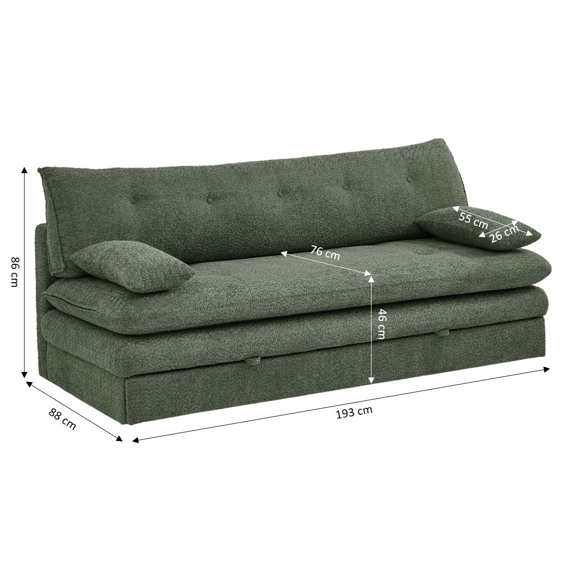 Avec son revêtement en tissu tout doux, la banquette convertible KIARA s'intègre facilement dans tous les intérieurs. Son format compact de 193 cm de long en fait un choix idéal pour un studio, une chambre d'amis ou un salon ayant un espace retreint.