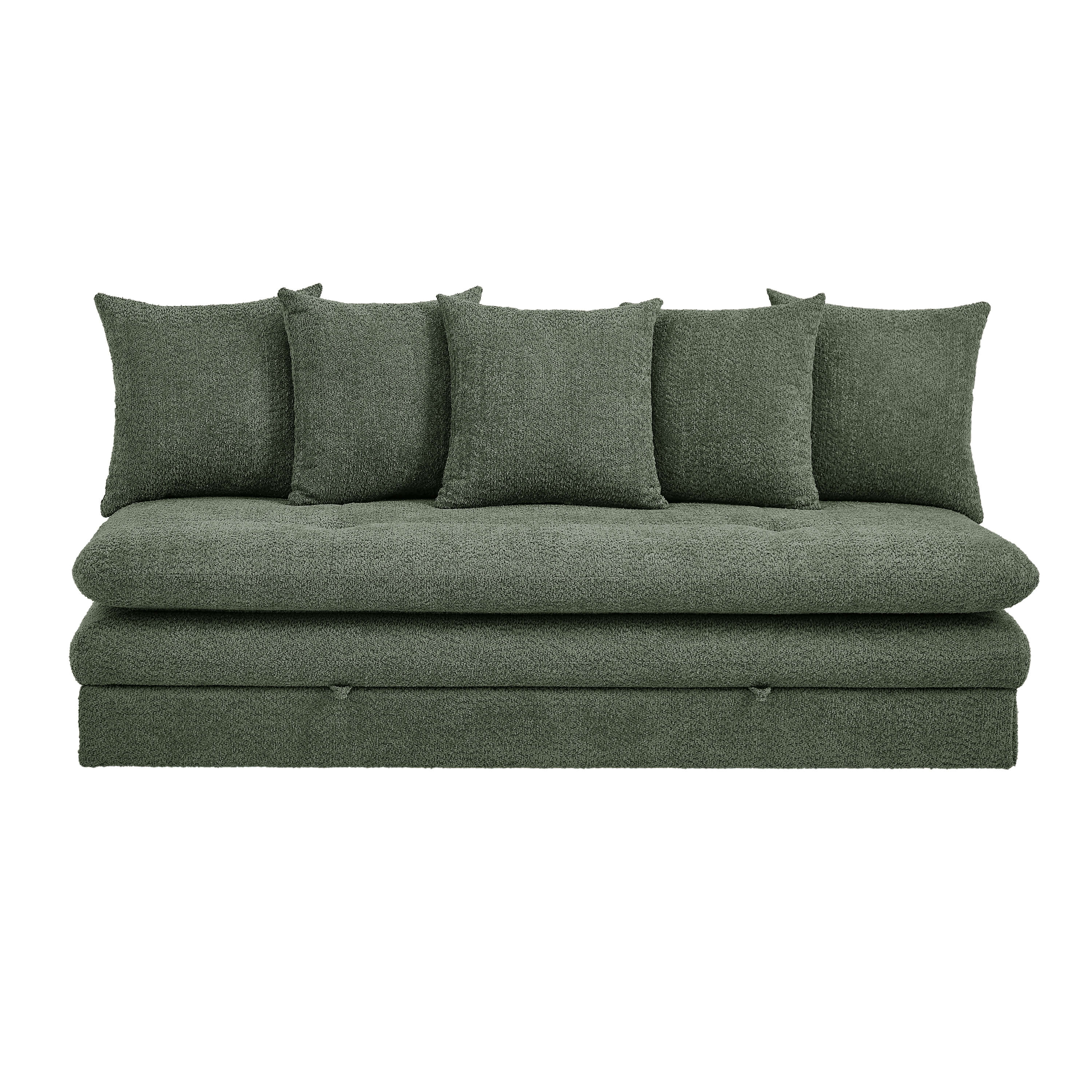 Équipée de cinq coussins de dossier déhoussables, la banquette MAORA est simple à entretenir. Elle dispose également de deux coffres de rangement séparés, parfaits pour organiser couvertures, oreillers ou linge de maison. Son piètement avec roulettes facilite le déplacement et l'utilisation au quotidien.