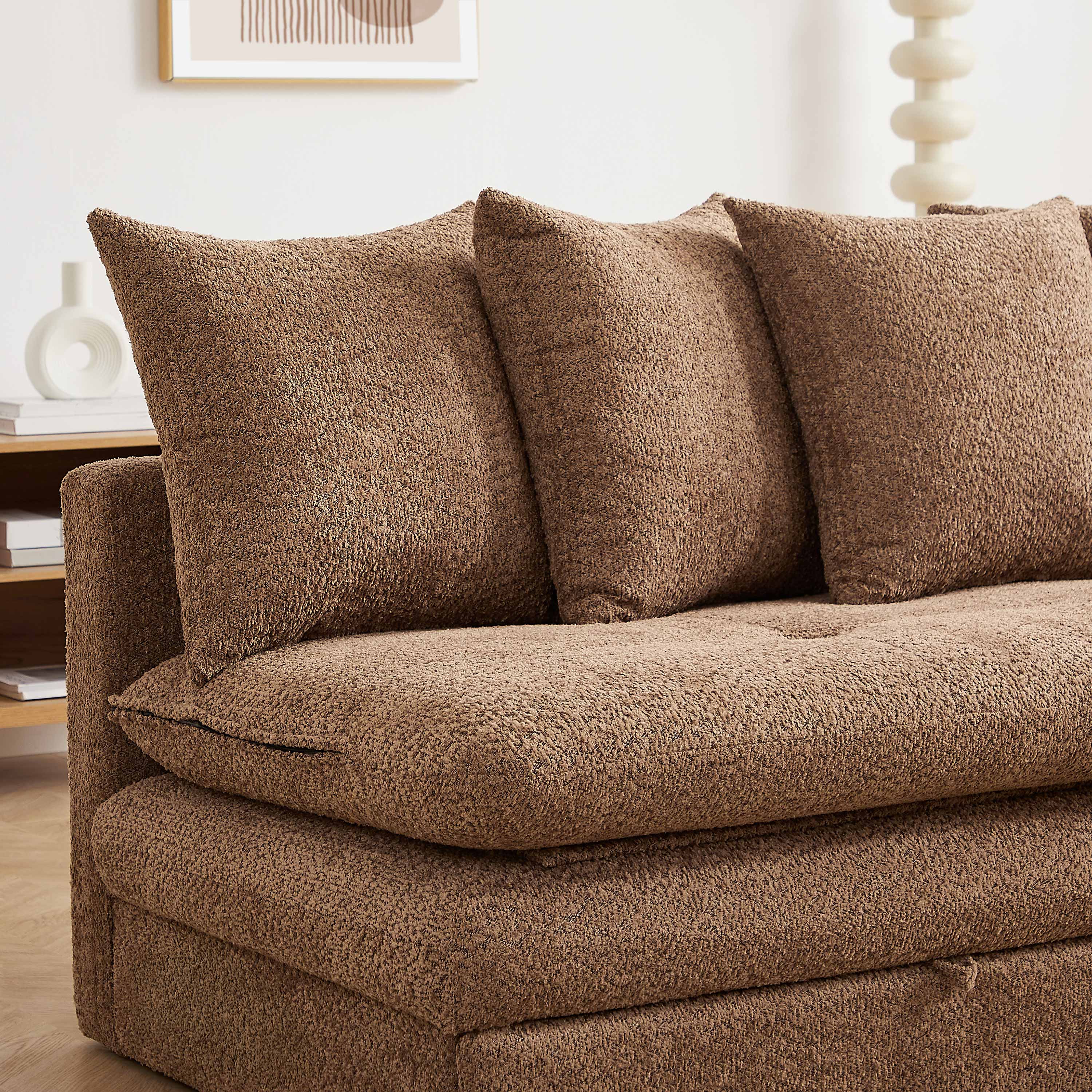 La banquette MAORA 3 places se distingue par son revêtement en tissu bouclette 100% polyester, doux au toucher et chaleureux. Son design épuré s'intègre facilement dans différents styles d'intérieur, apportant une atmosphère cosy et accueillante à votre pièce de vie.