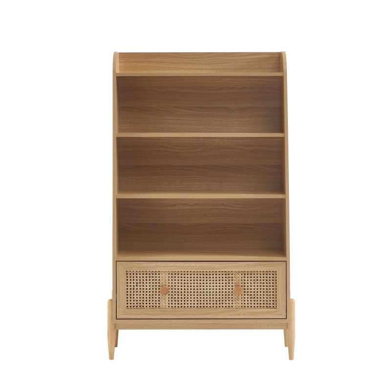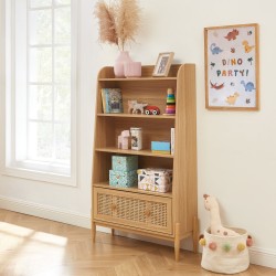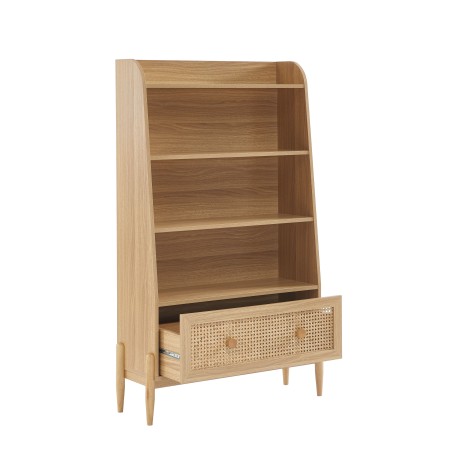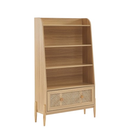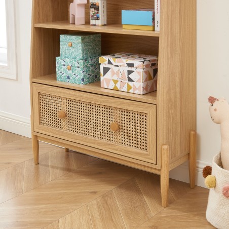 Avec ses trois étagères et son tiroir en cannage, cette bibliothèque offre des espaces de rangement généreux pour les livres, les jouets et les objets préférés de votre enfant. Les étagères sont parfaitement dimensionnées pour accueillir des livres de toutes tailles, tandis que le tiroir peut contenir des petits trésors et des objets personnels. Cela en fait un meuble polyvalent, idéal pour encourager l'organisation et la créativité de votre enfant.