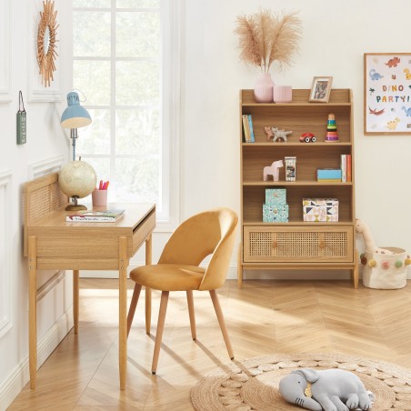 Bibliothèque enfant PABLO cannage rotin et effet chêne 80x140cm