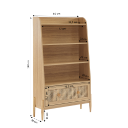 Bibliothèque PABLO avec cannage en rotin et effet chêne - dimensions : 80 x 30 x 140 cm