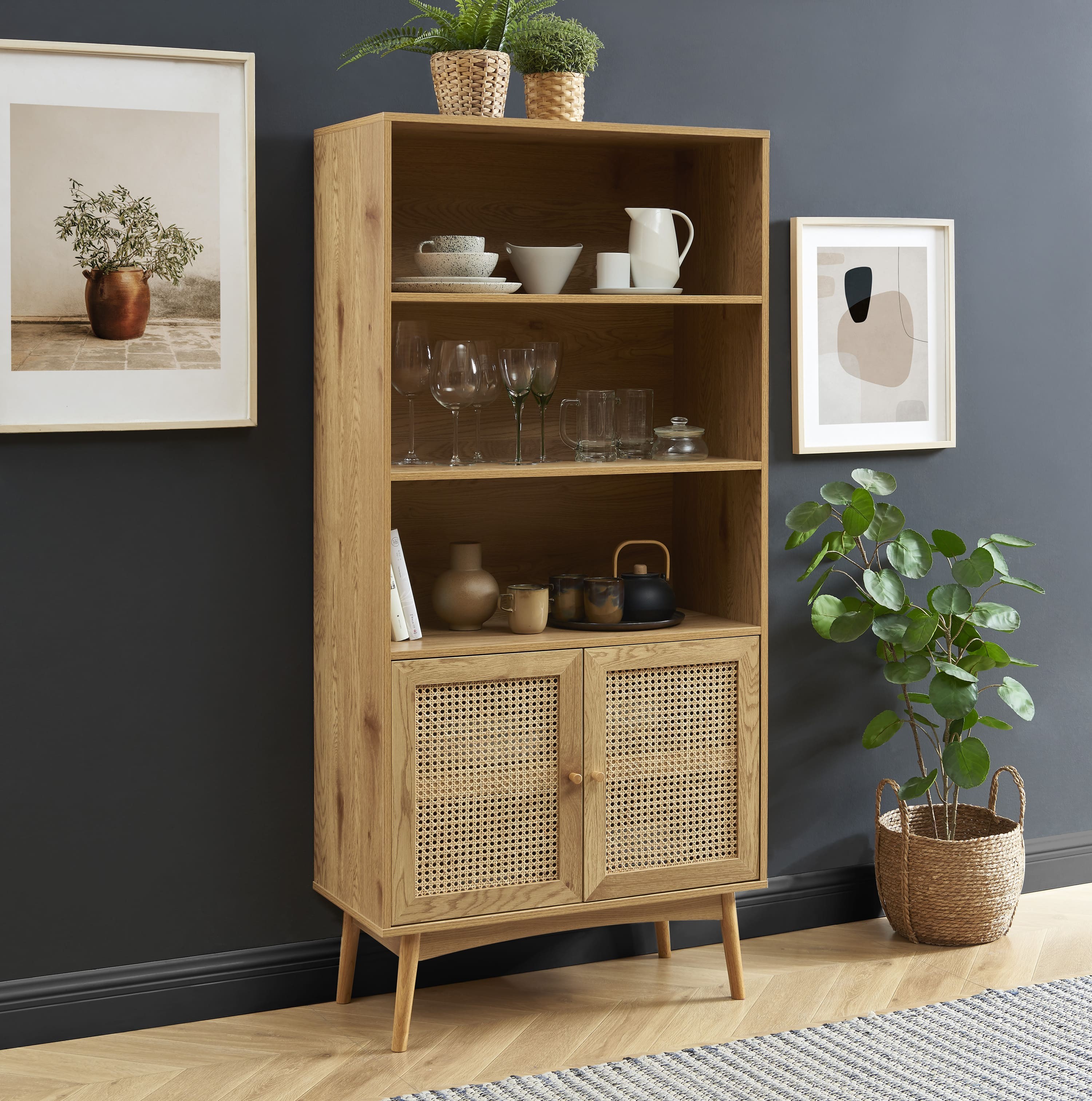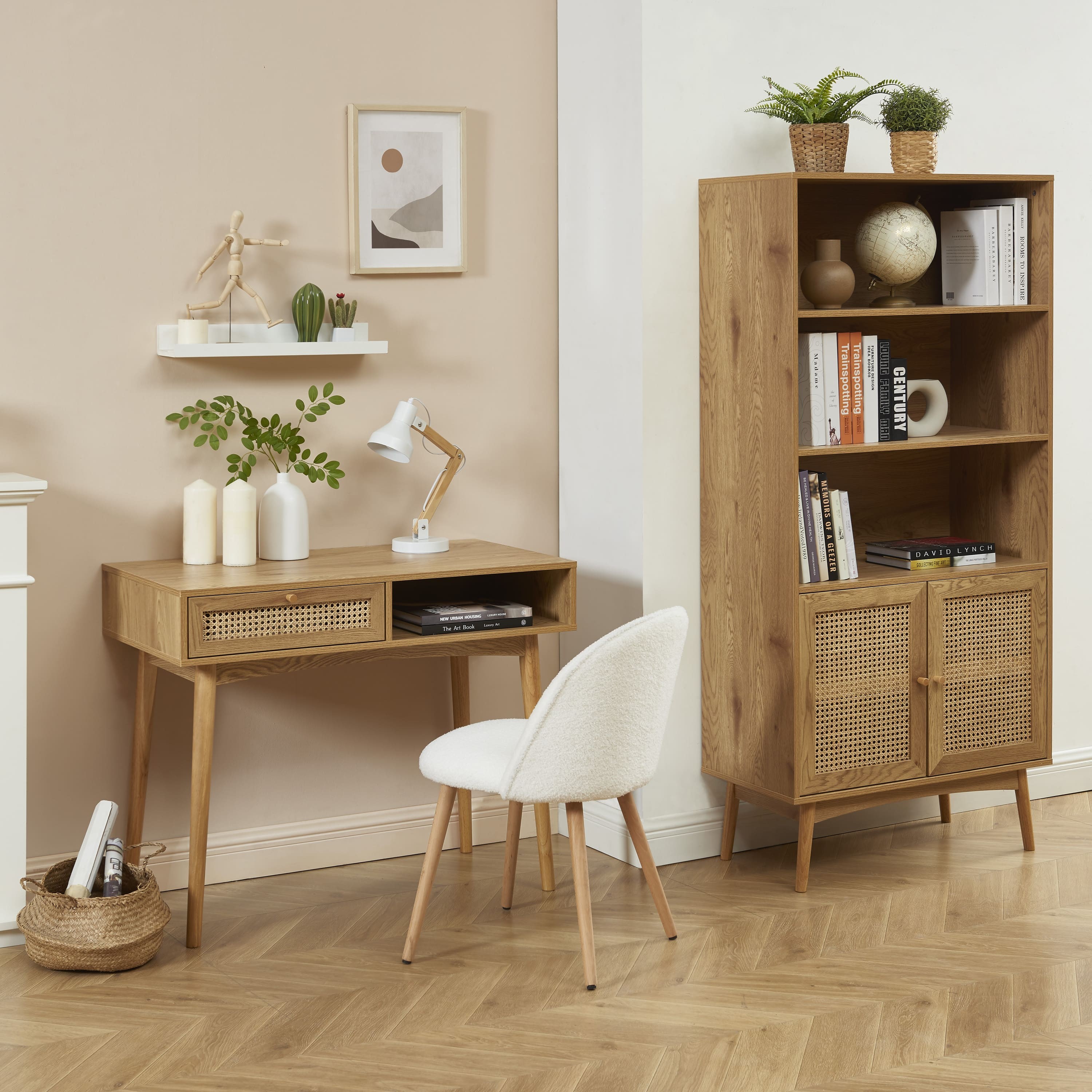 Bibliothèque INES effet chêne et cannage rotin 80cm