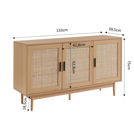 -59% SOLDESBaïta169,99 € -100,99 € 69,00 € Buffet BAAMA effet chêne et rotin naturel 2 portes 80cm-100,99 €
