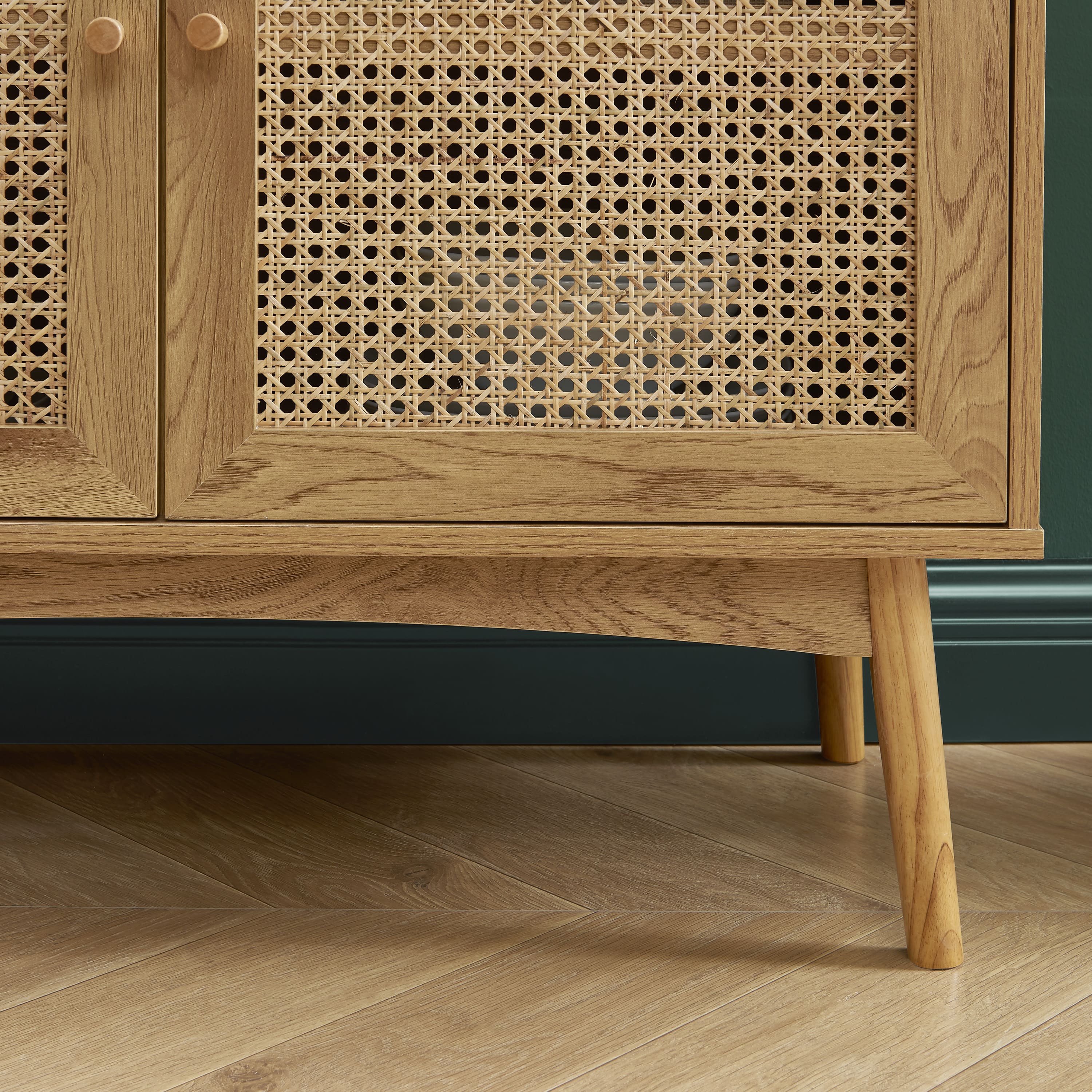 Buffet INES effet chêne et cannage rotin 2 portes 90cm
