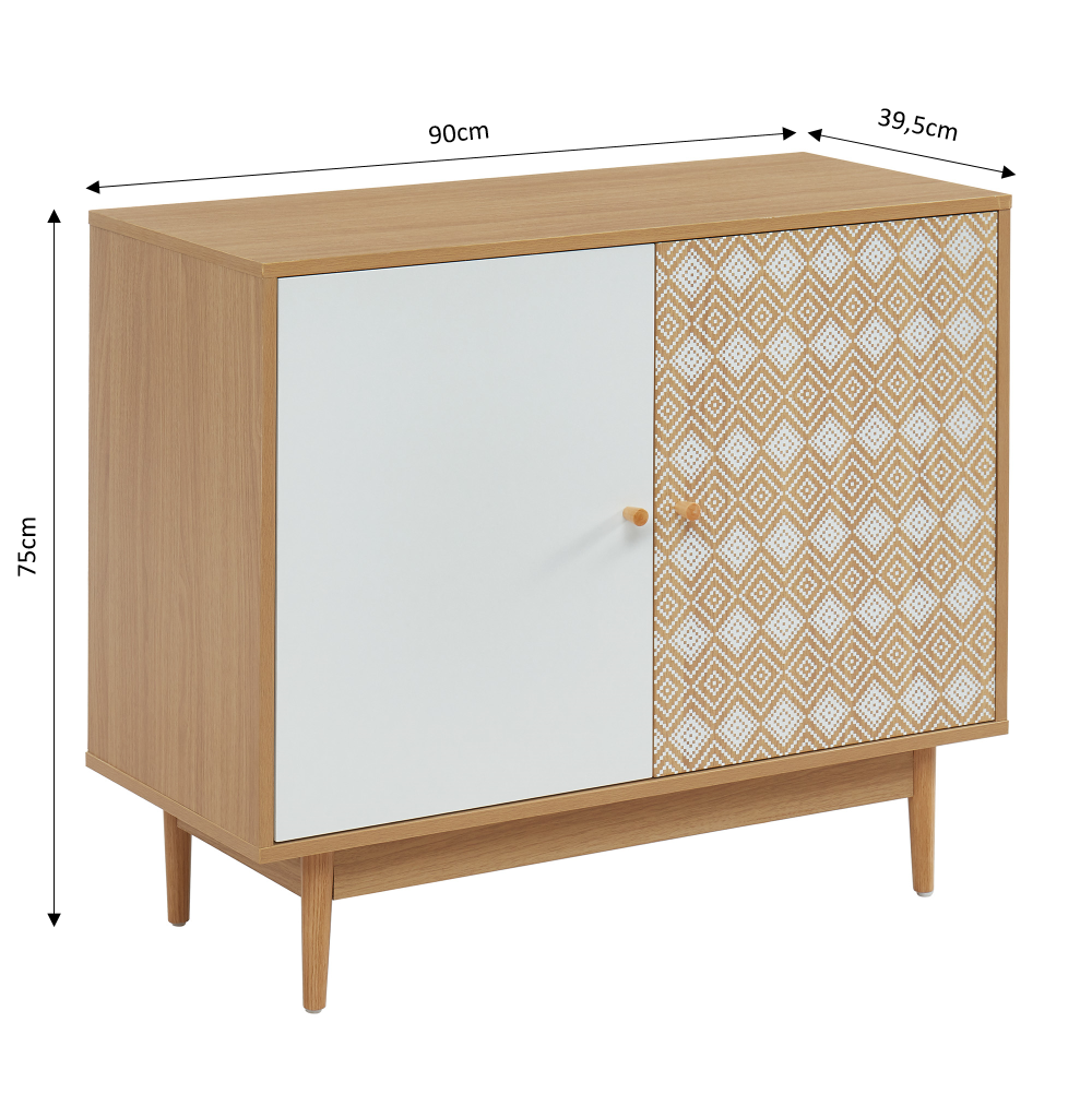 Buffet LEIKA blanc et effet chêne - dimensions : 90 x 39,5 x 75 cm