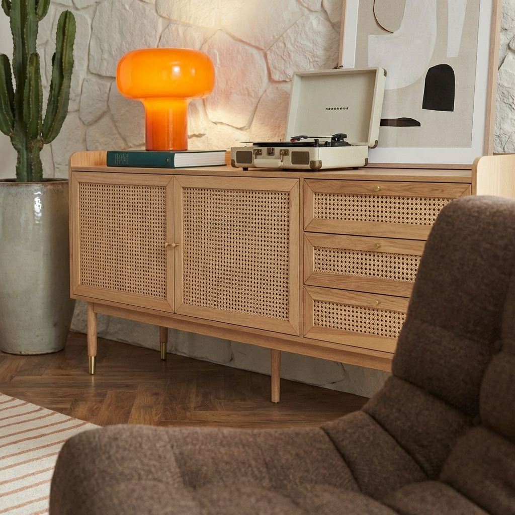 Vous êtes à la recherche d'un buffet pour votre salon ou salle à manger ? Avec la gamme LÉON, remettez votre intérieur au goût du jour avec le cannage !