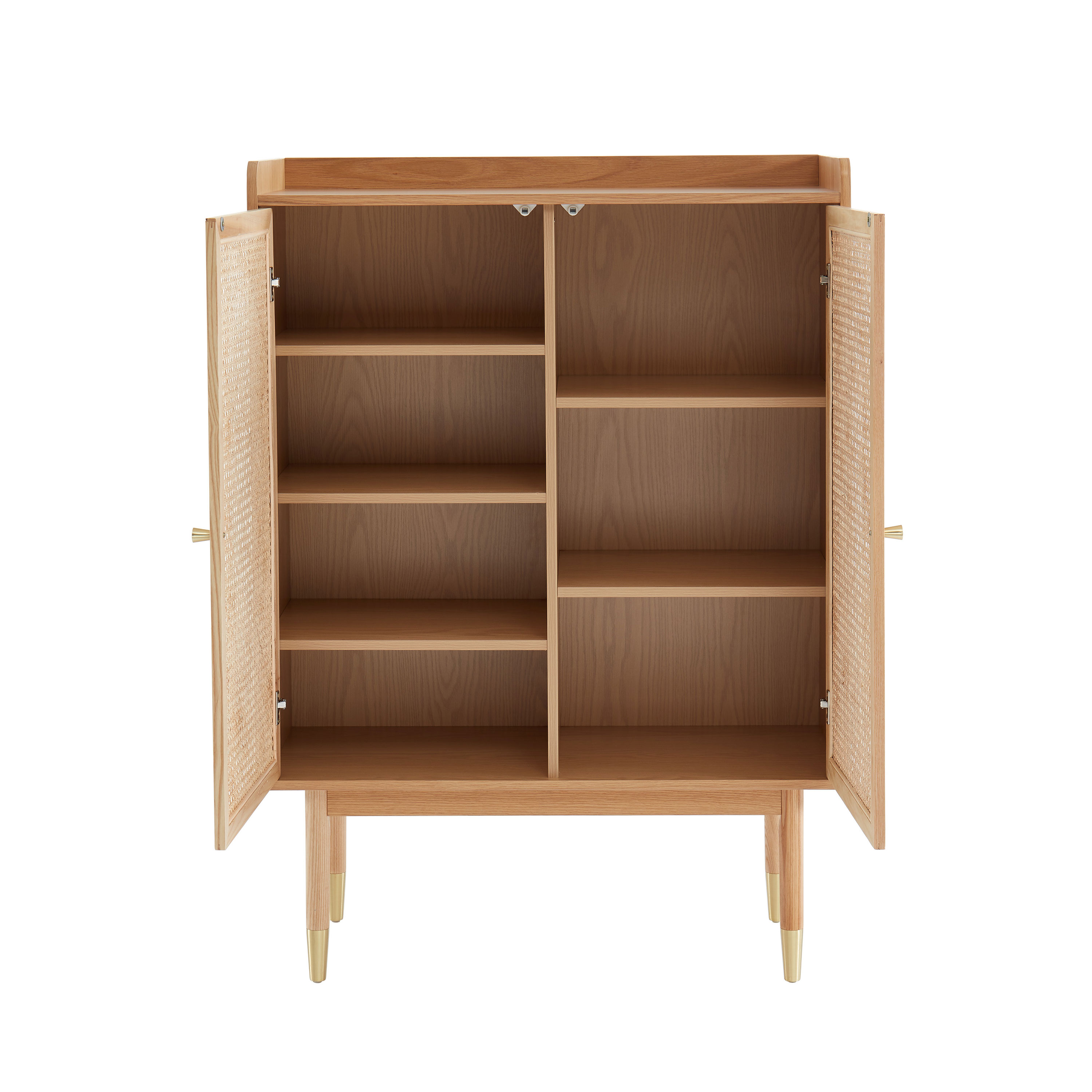 Buffet haut LEON placage chêne et cannage rotin 90cm
