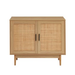 Que ce soit dans votre salon ou votre salle à manger, ce buffet en cannage répondra à vos besoins. L’atout de ce buffet réside dans ses deux portes en cannage tressé, qui apportent une matière naturelle et une ambiance accueillante à votre intérieur. Le cannage est un matériau intemporel qui offre un esthétique brut et artisanal. L'authenticité du tressage rappelle la beauté de la nature et évoque une sensation de sérénité.