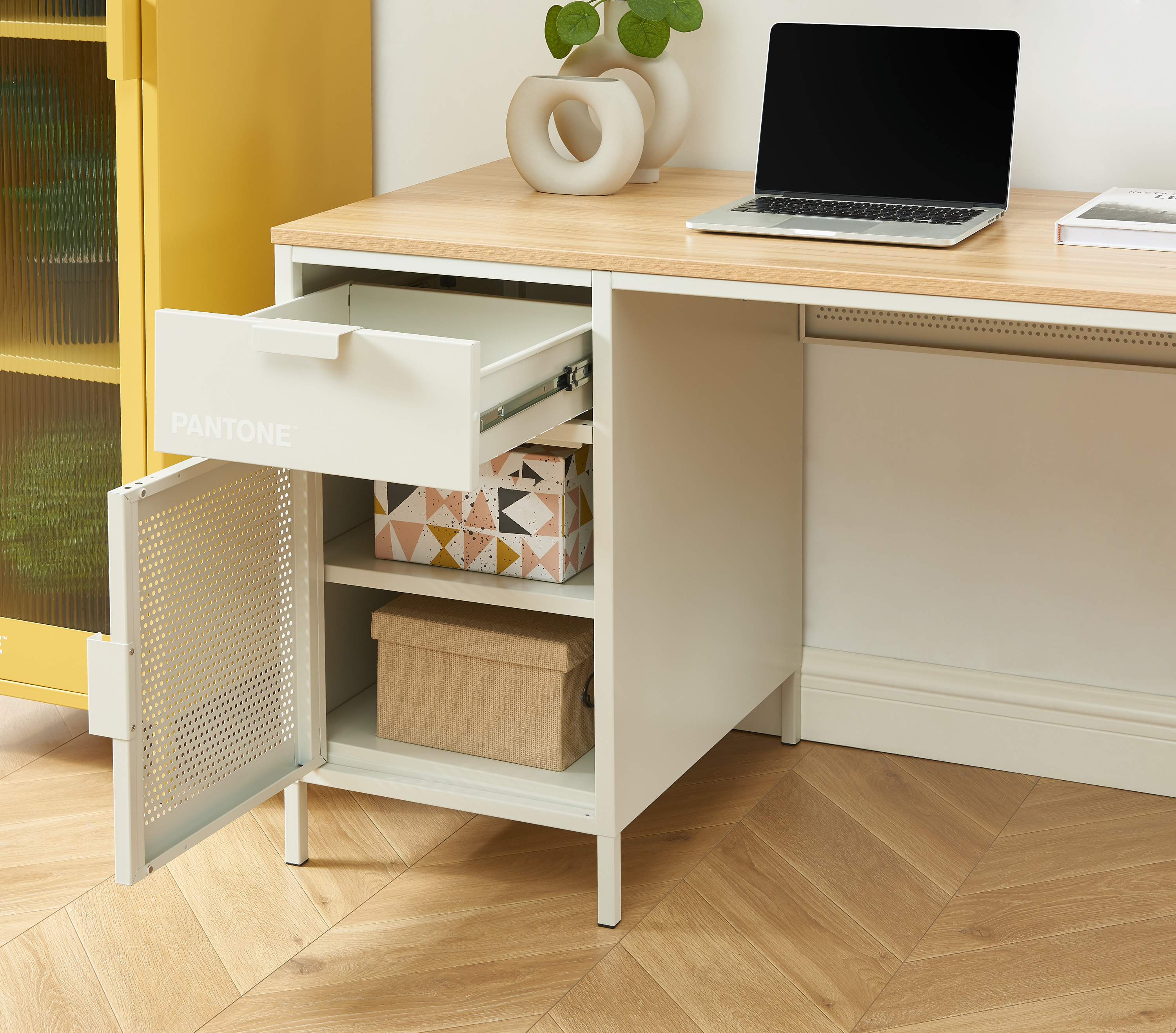 De plus, le bureau PANTONE vous offre de nombreux espaces de rangement, notamment avec son tiroir et sa porte. Vous pourrez ainsi organiser au mieux votre espace de travail !
