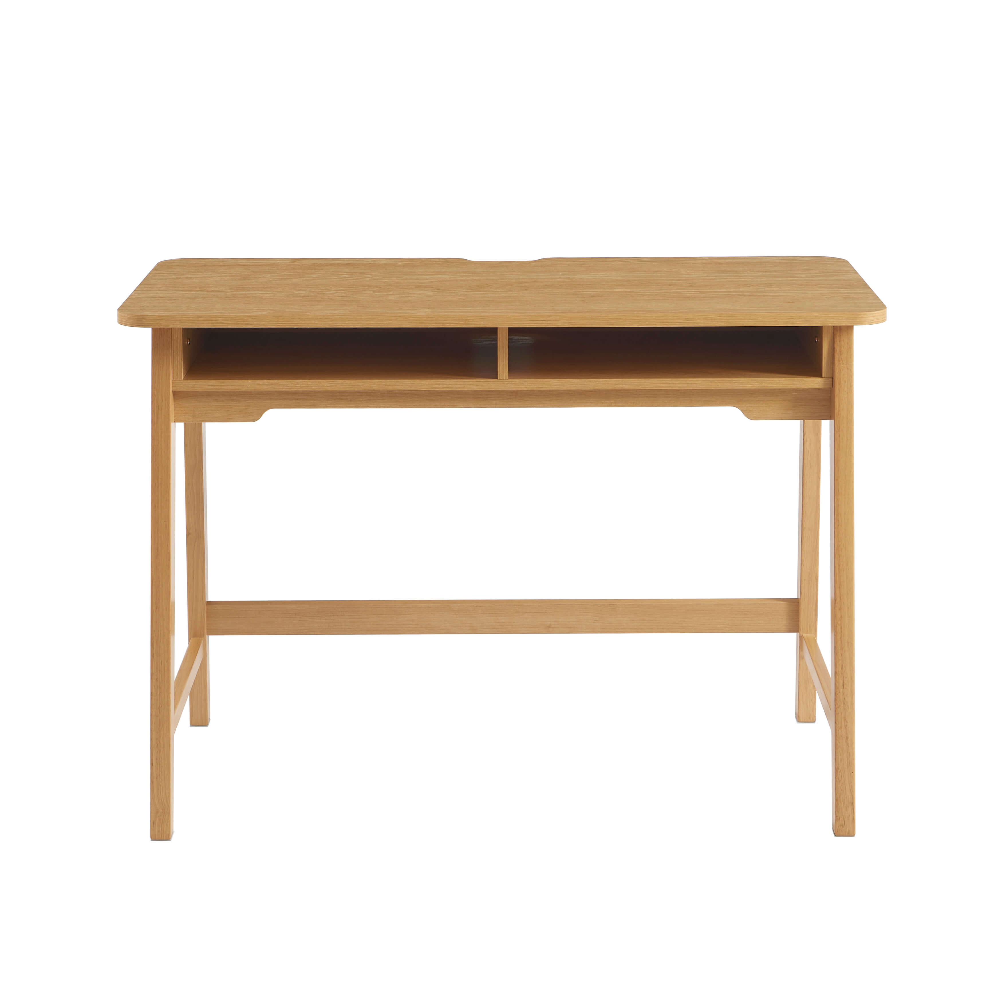 Sobre et pratique, le bureau MAIA effet chêne séduit par son design épuré, ses deux niches fonctionnelles et son piètement en bois robuste.