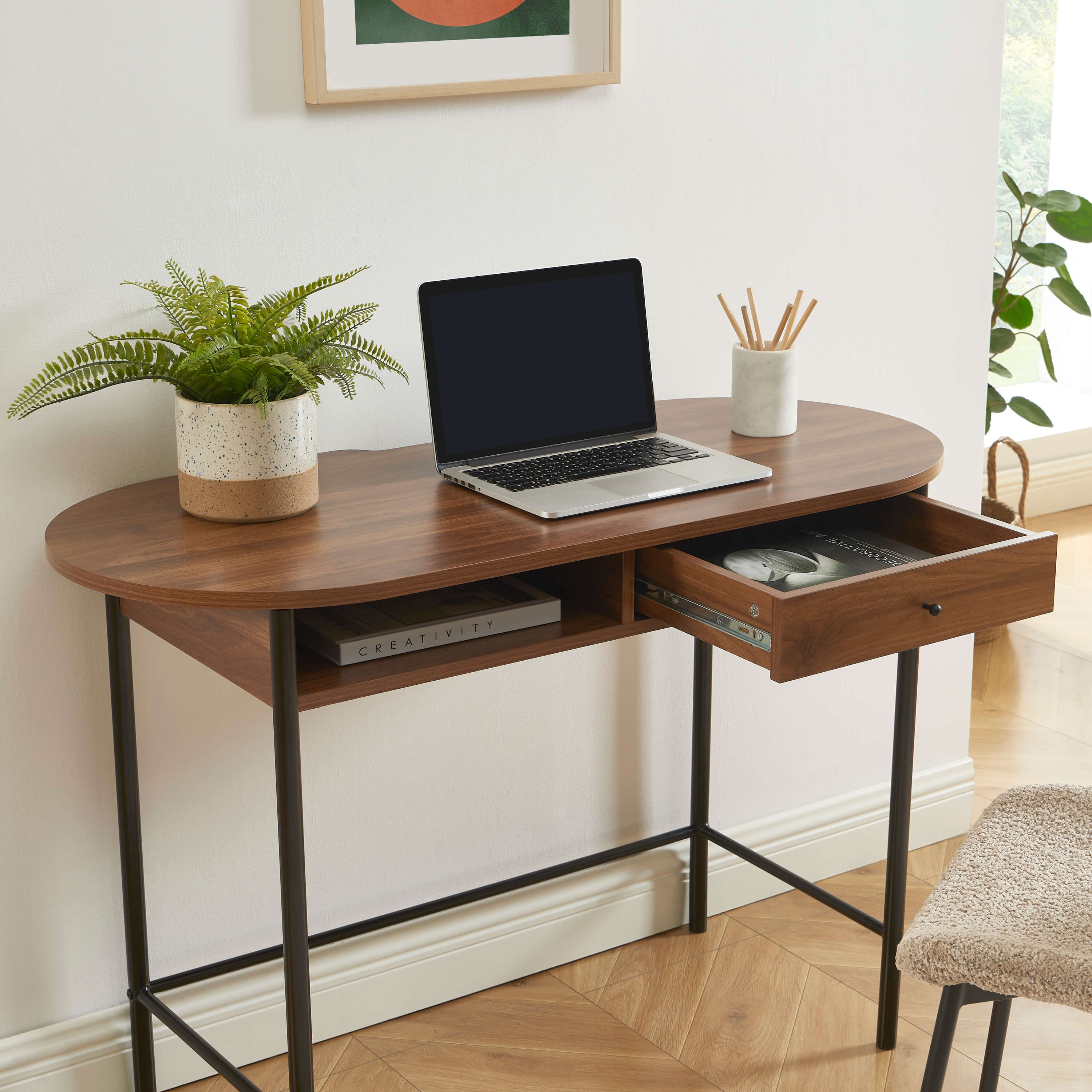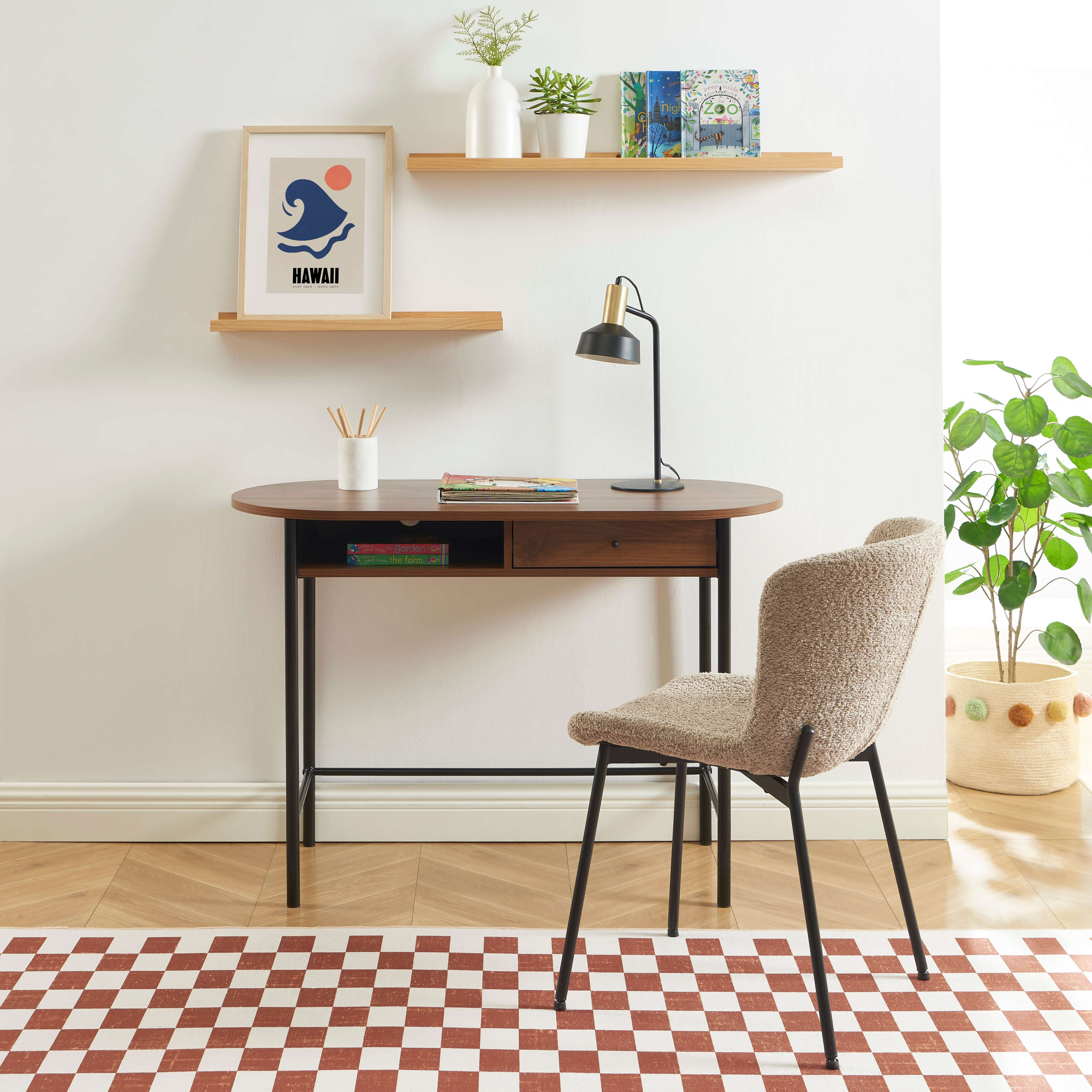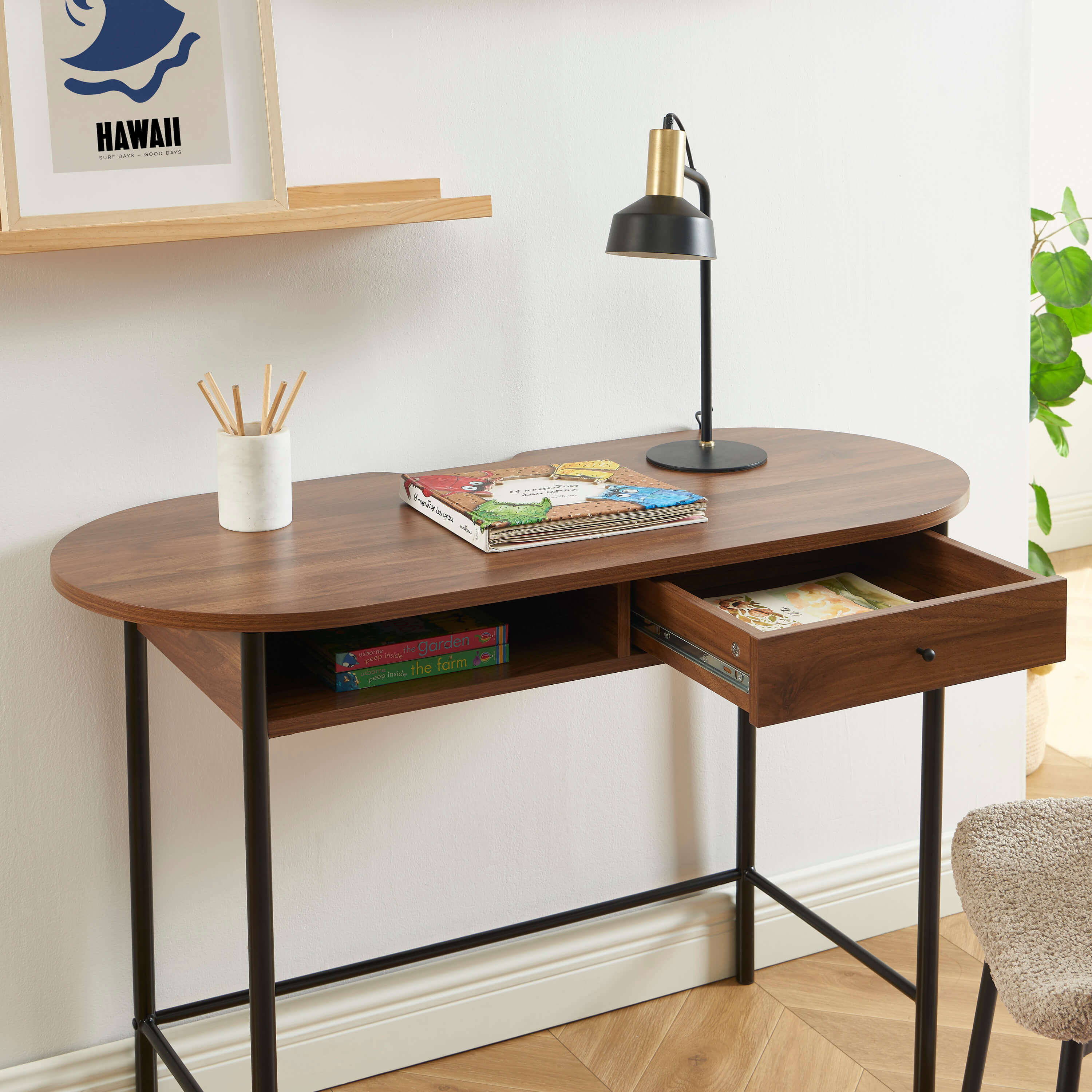 Avec une alliance parfaite entre un revêtement effet noyer et un piètement en métal, le bureau GAIA apporte une touche moderne et élégante à votre intérieur. Son style sobre lui permet de s'intégrer aussi bien dans un bureau que dans une chambre ou un salon.