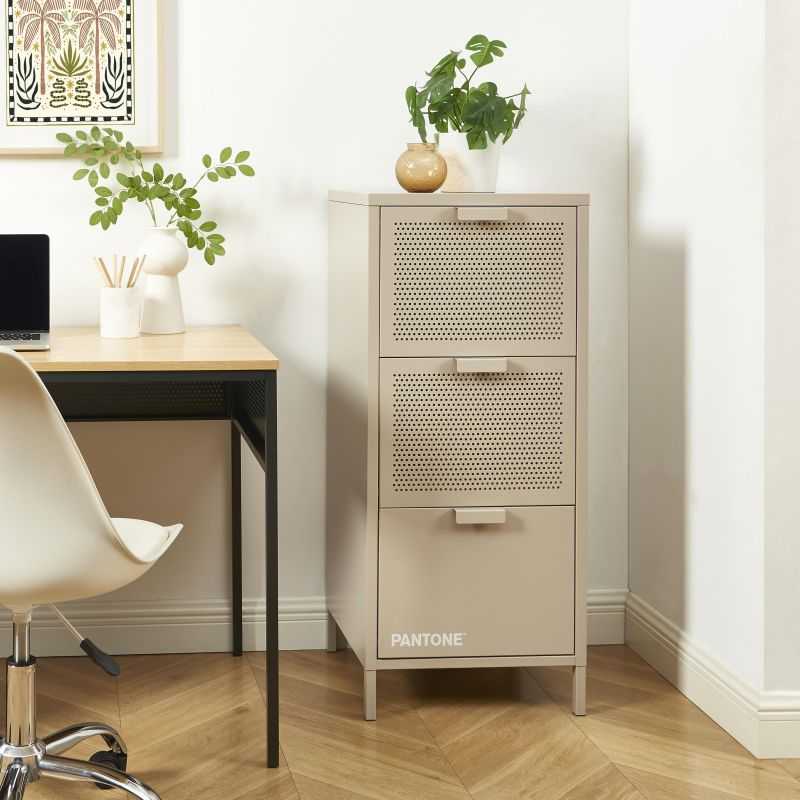 Caisson de bureau PANTONE métal taupe 3 tiroirs h105cm
