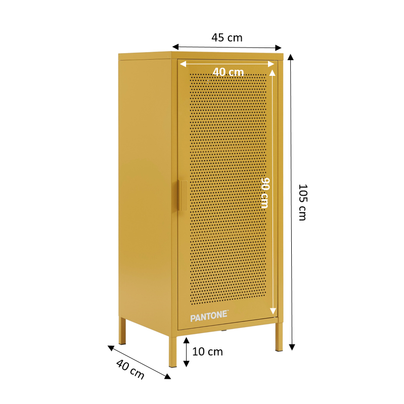 Le meuble PANTONE propose plusieurs options de couleur, chacune ajoutant une touche de caractère et de personnalité à votre espace de vie. La porte en acier perforé du meuble PANTONE renforce encore le style industriel tandis que les pieds en métal assurent sa stabilité.
