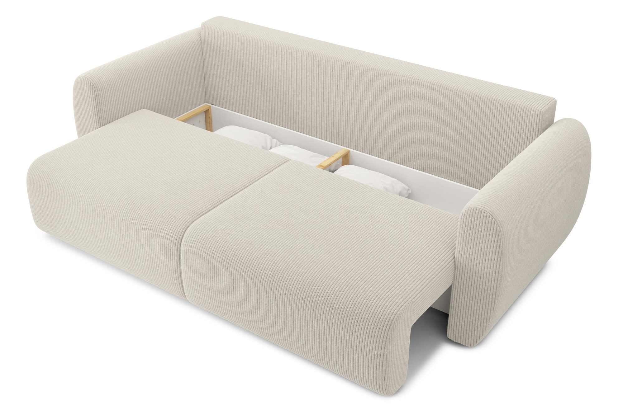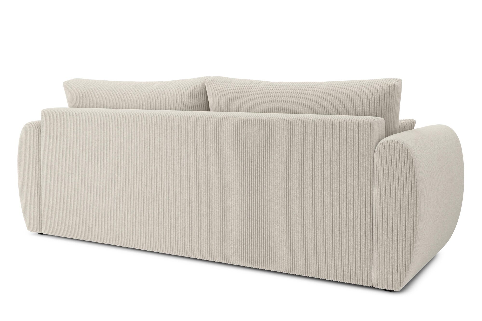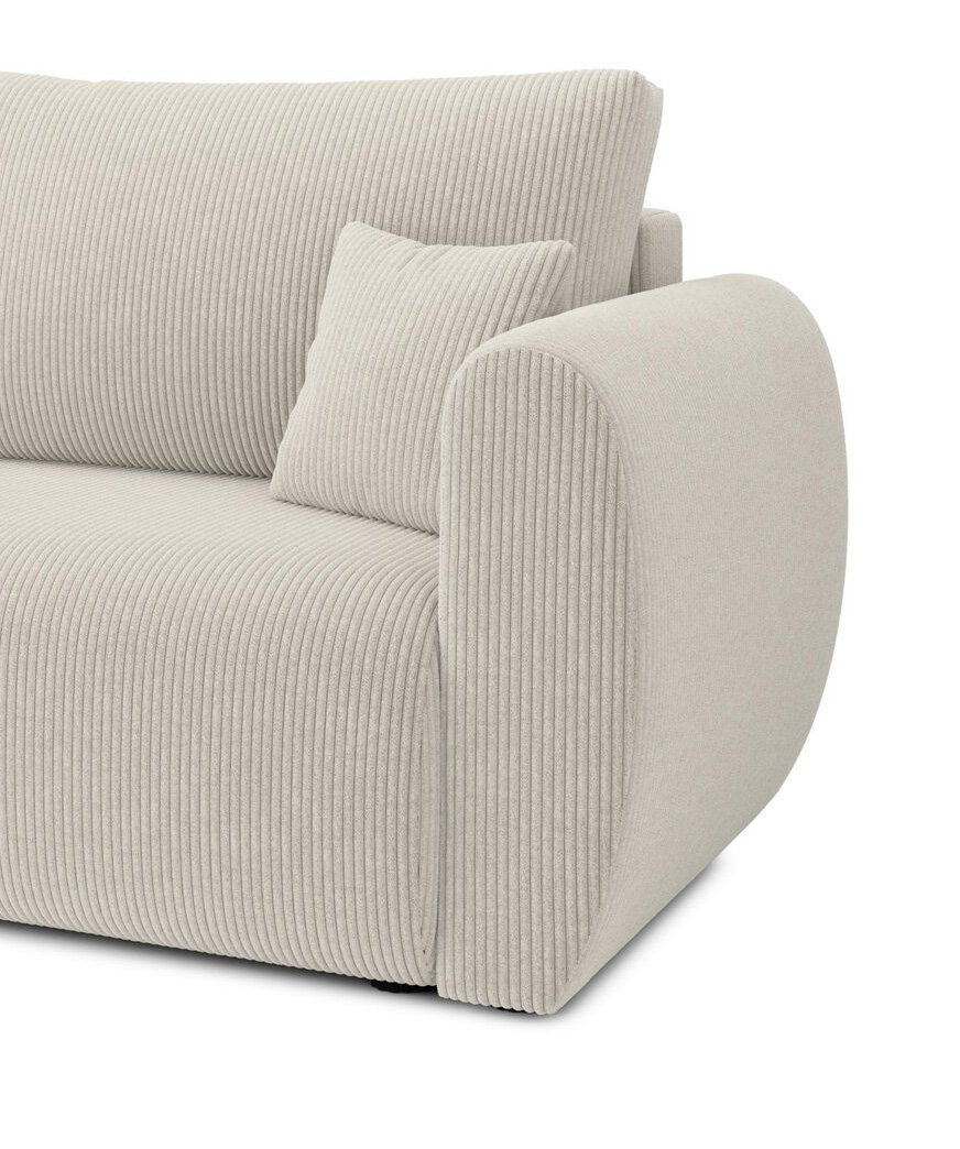 équilibréCanapé droit convertible REFA 3 places avec coffre de rangement, en velours côtelé beige. Dimensions du canapé : 230 x 98 x 90 cm. Dimensions couchage : 150 x 190 cm