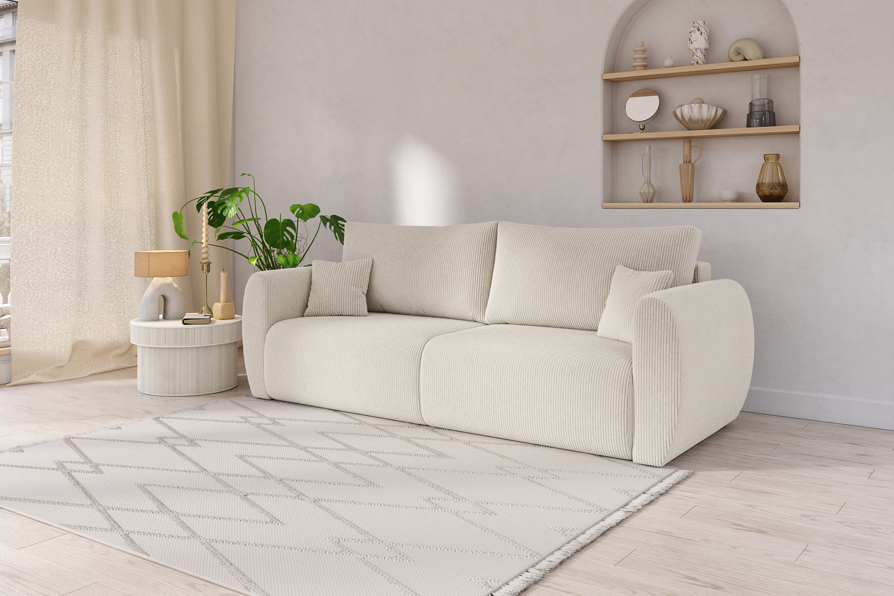 Canapé droit convertible REFA 3 places velours côtelé beige