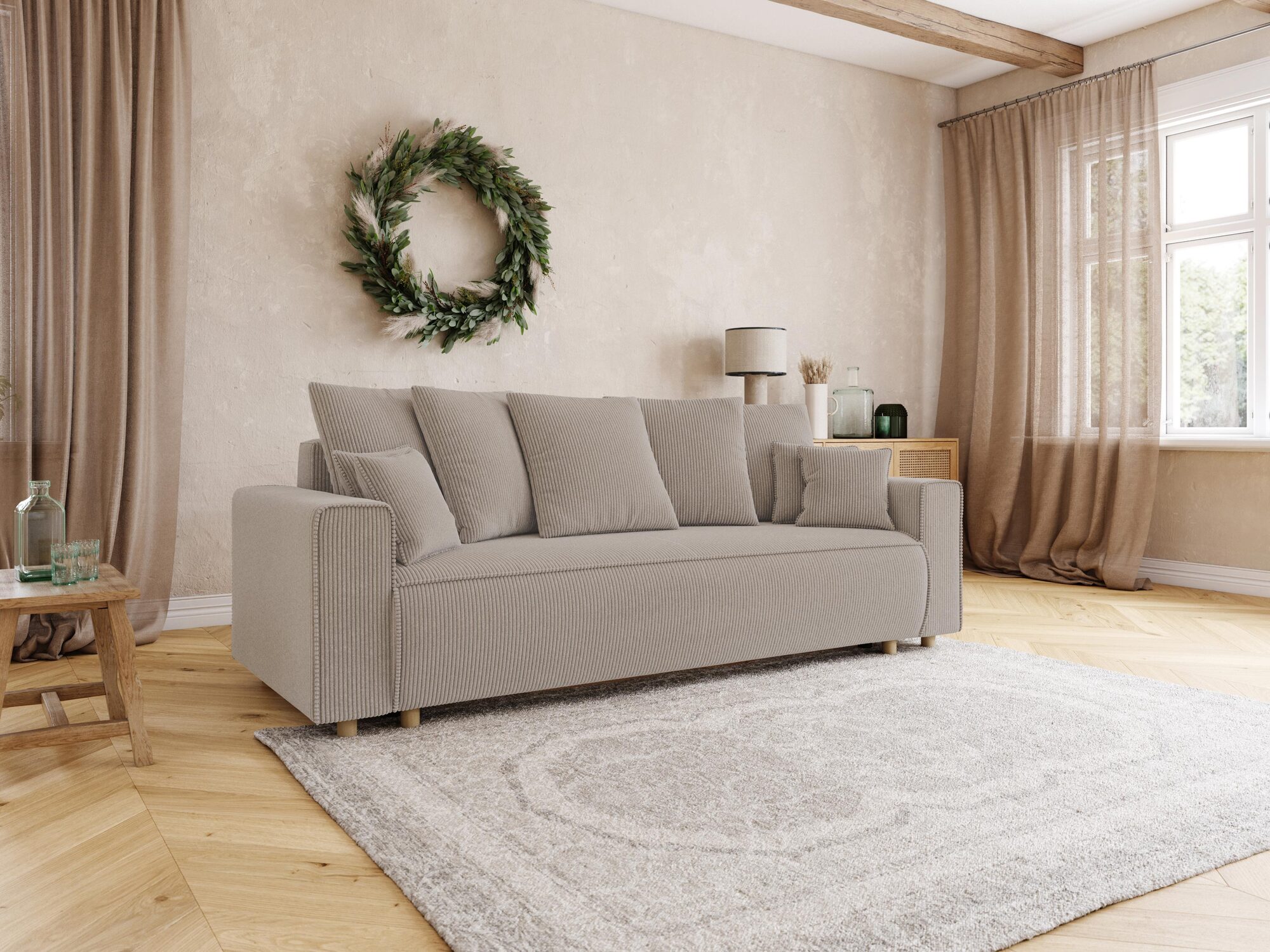 Canapé droit convertible CHARTRONS 3 places velours côtelé grège