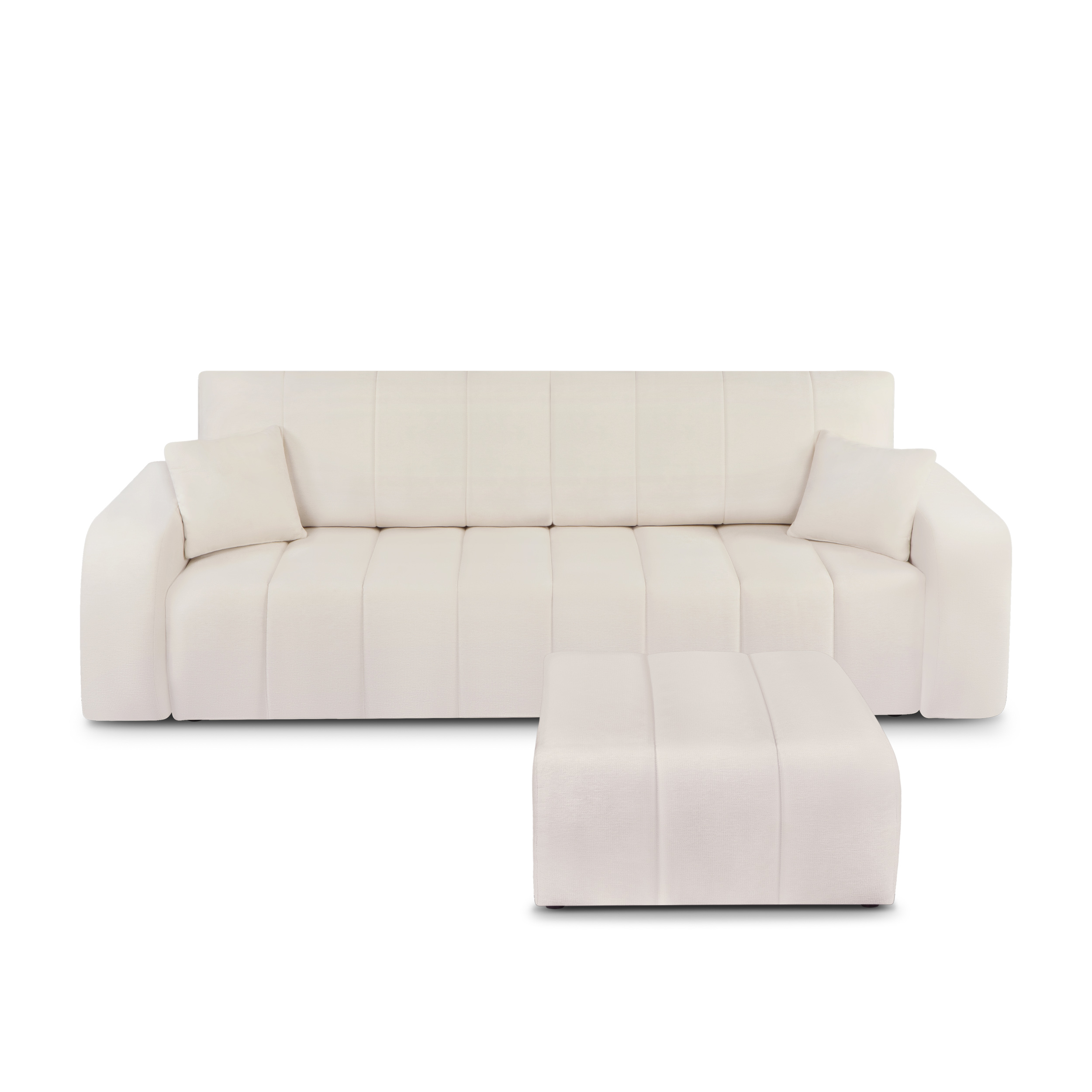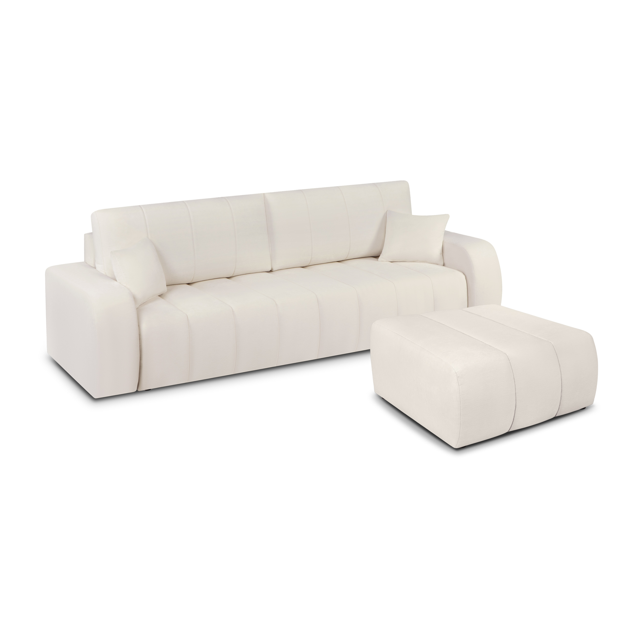 Canapé droit convertible BELEM 3 places tissu chenille écru