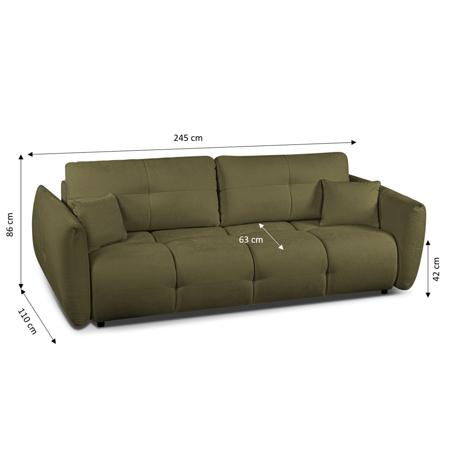 Canapé droit convertible COMO 3 places tissu chenille vert kaki