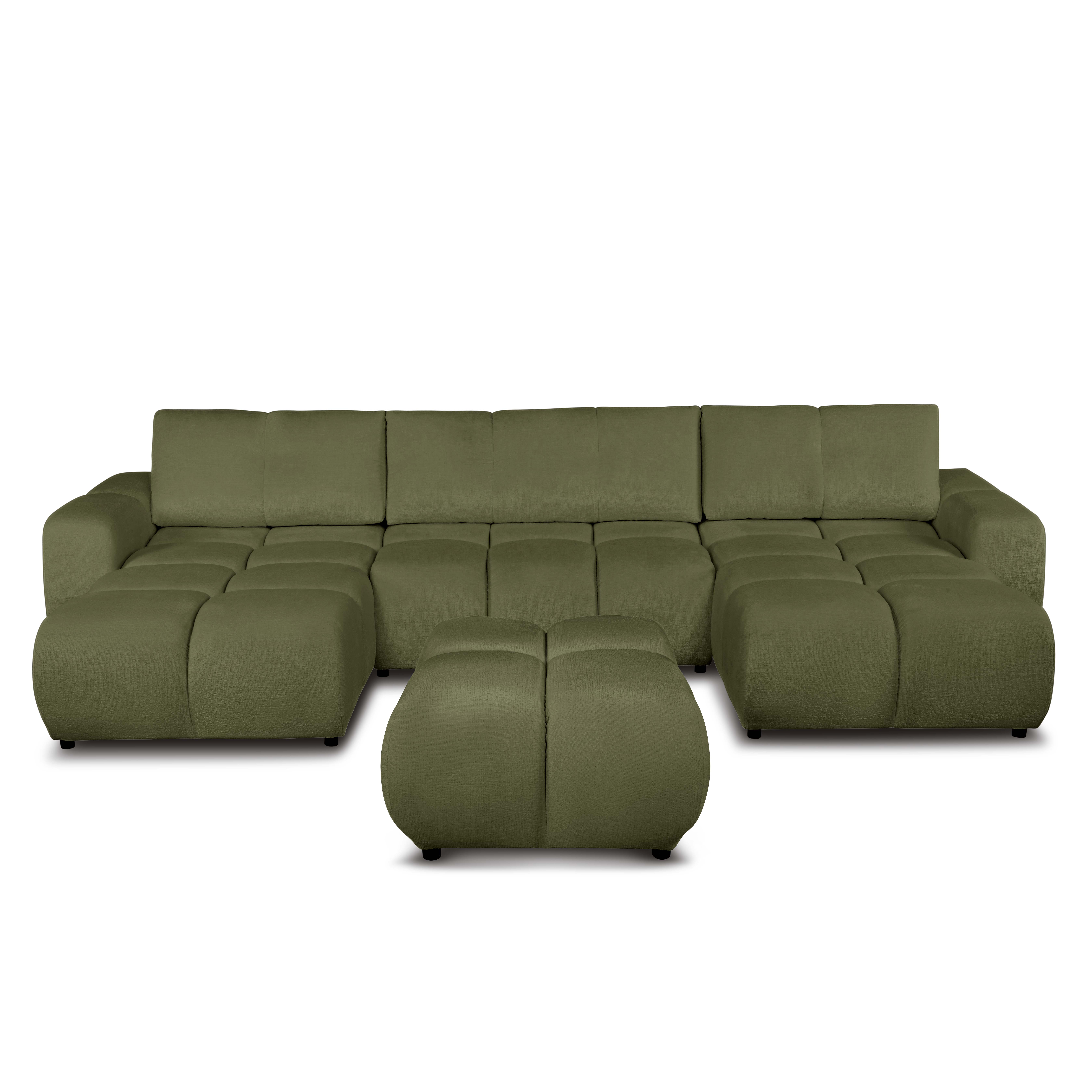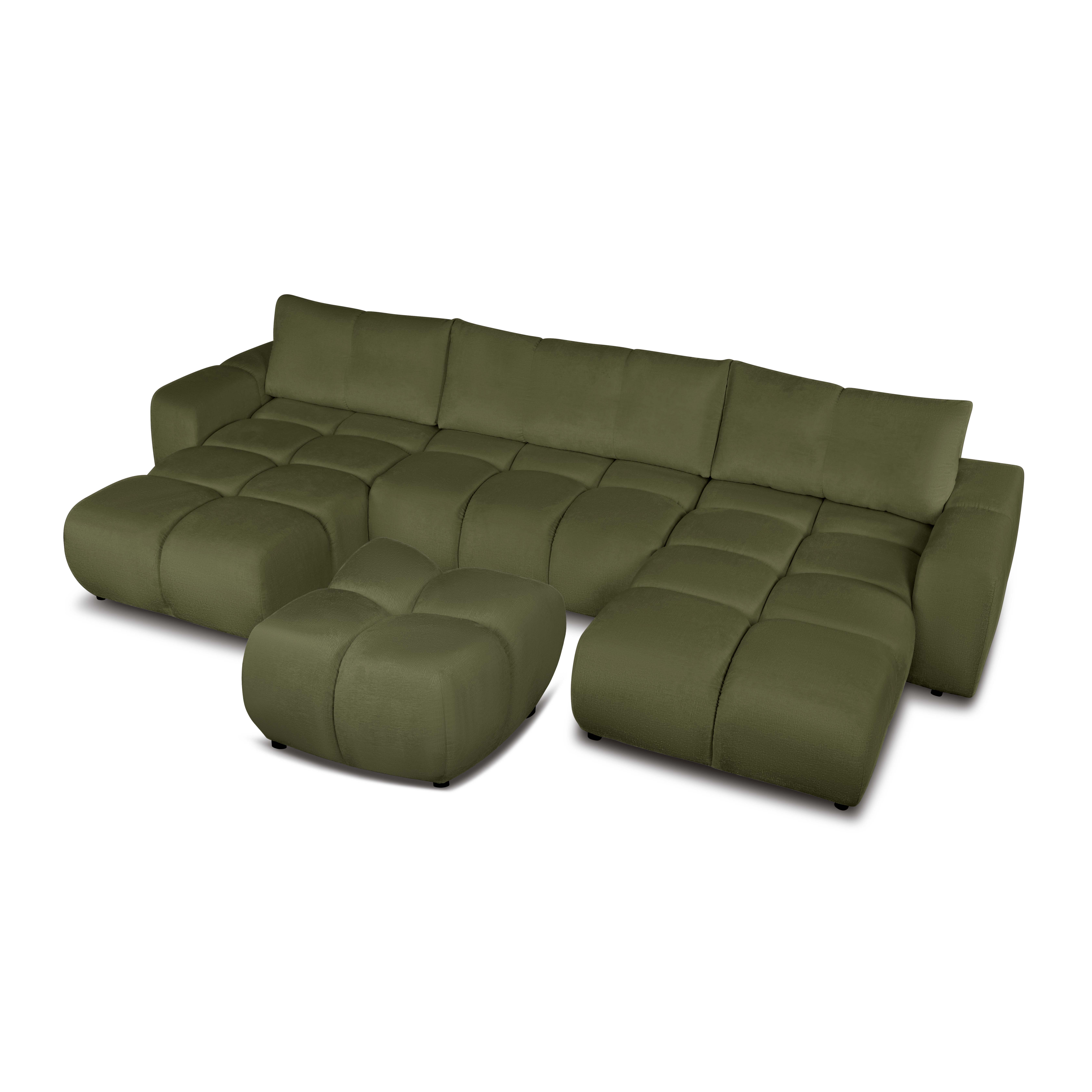 Canapé panoramique convertible SORELLA 6 places tissu chenille vert kaki