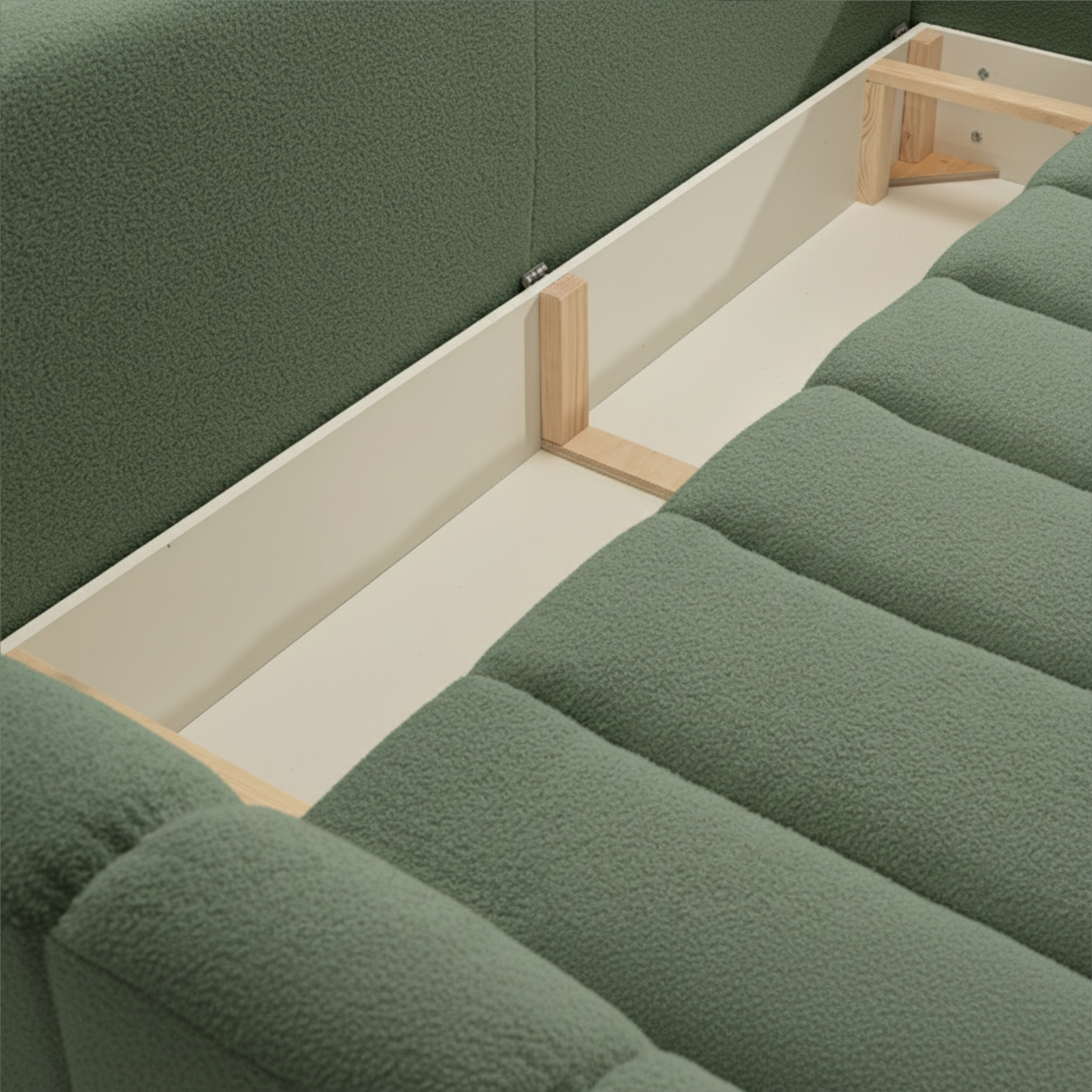 Avec son tissu bouclette doux, sa fonction convertible et son coffre de rangement intégré, le canapé GIORGIO est l'allié parfait pour un salon aussi chaleureux que pratique. Fabriqué en Europe, il conjugue confort et style au quotidien.