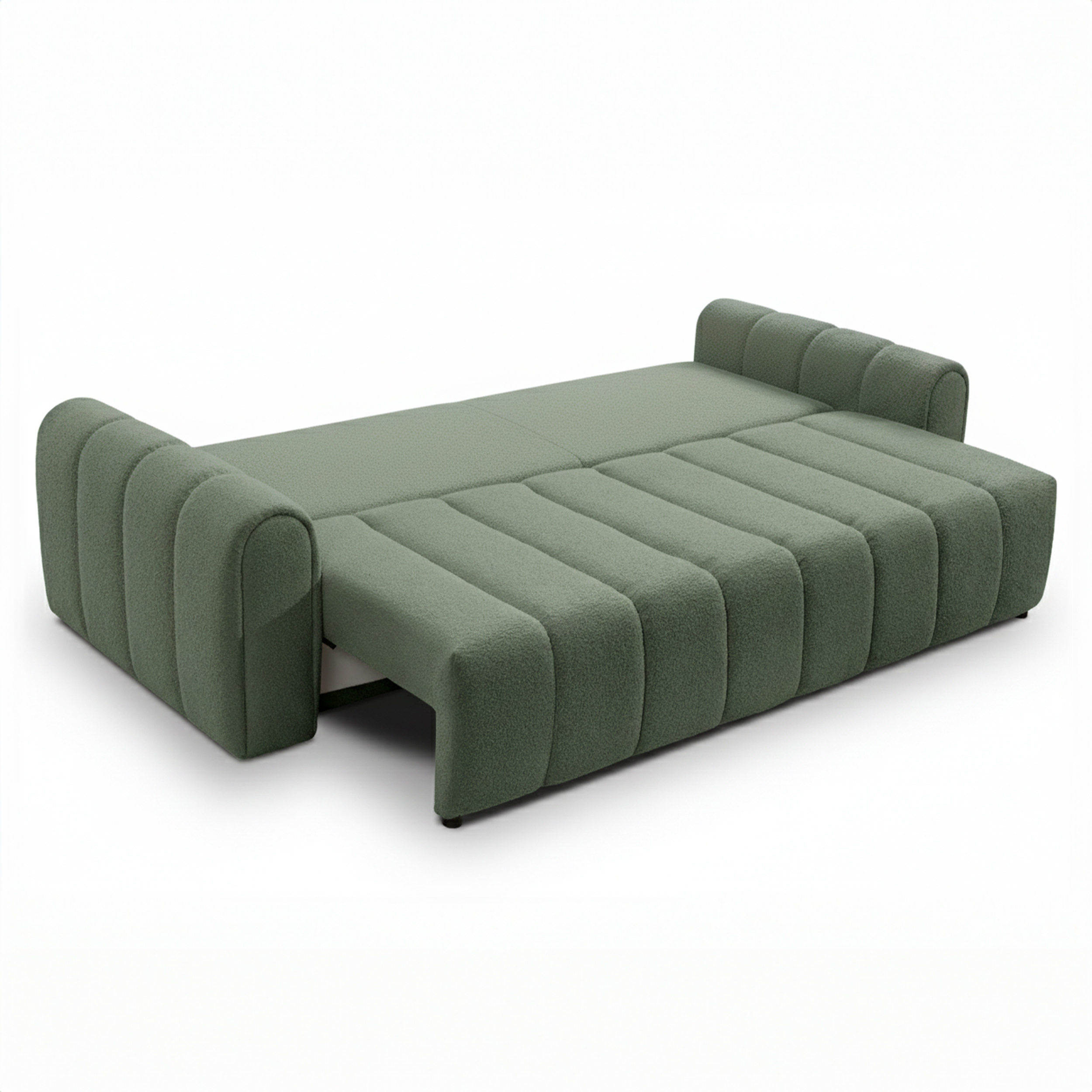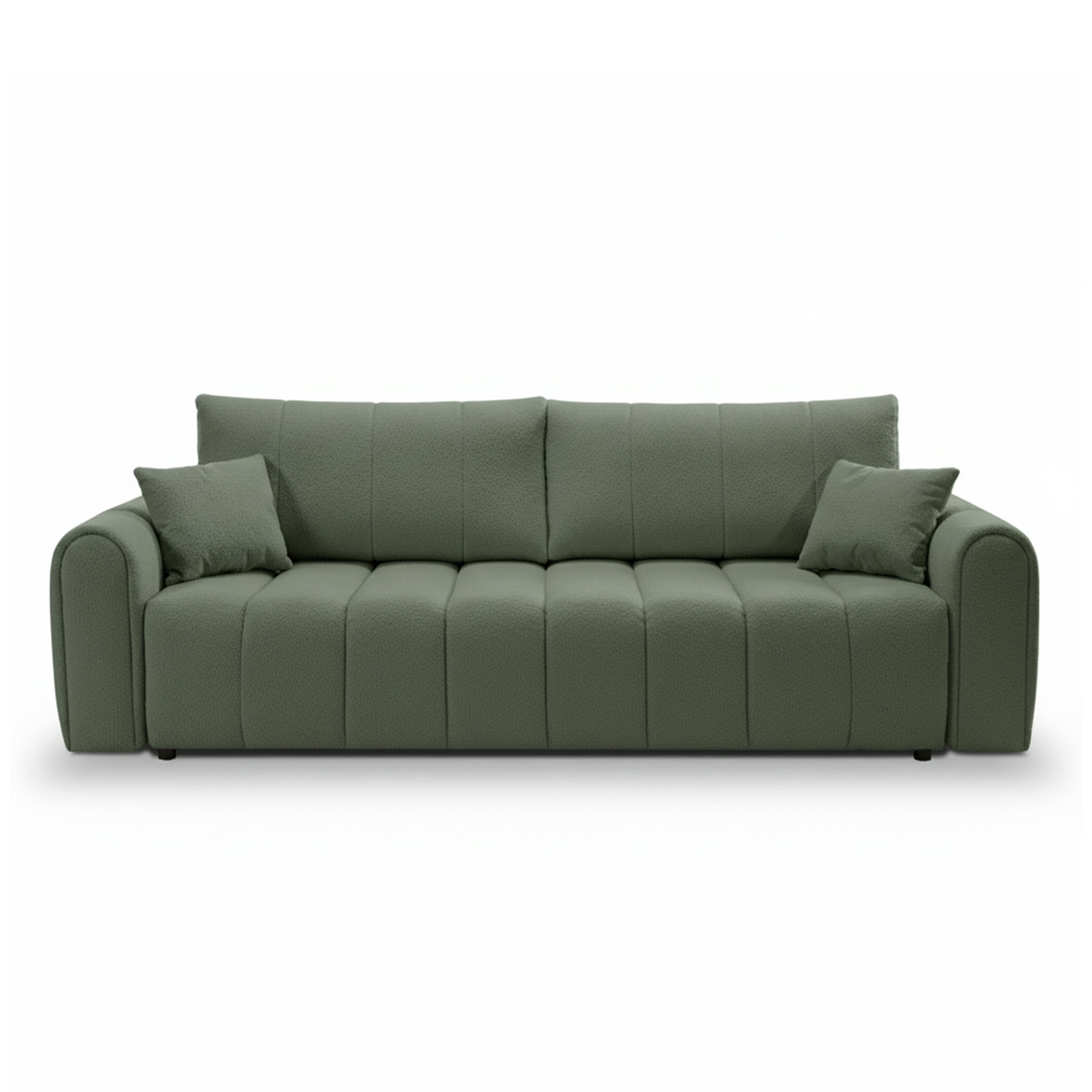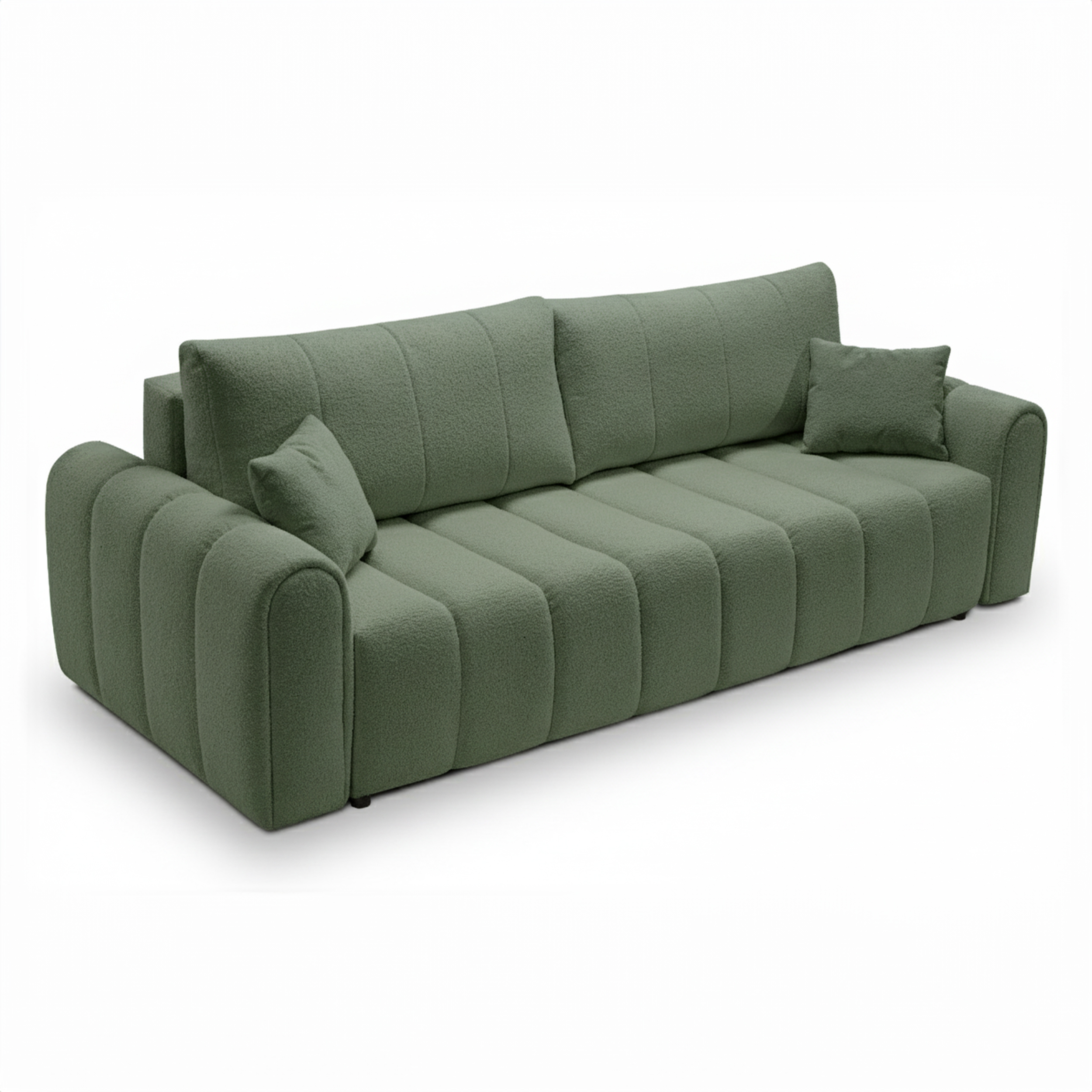 Canapé droit convertible GIORGIO 3 places tissu bouclette vert kaki