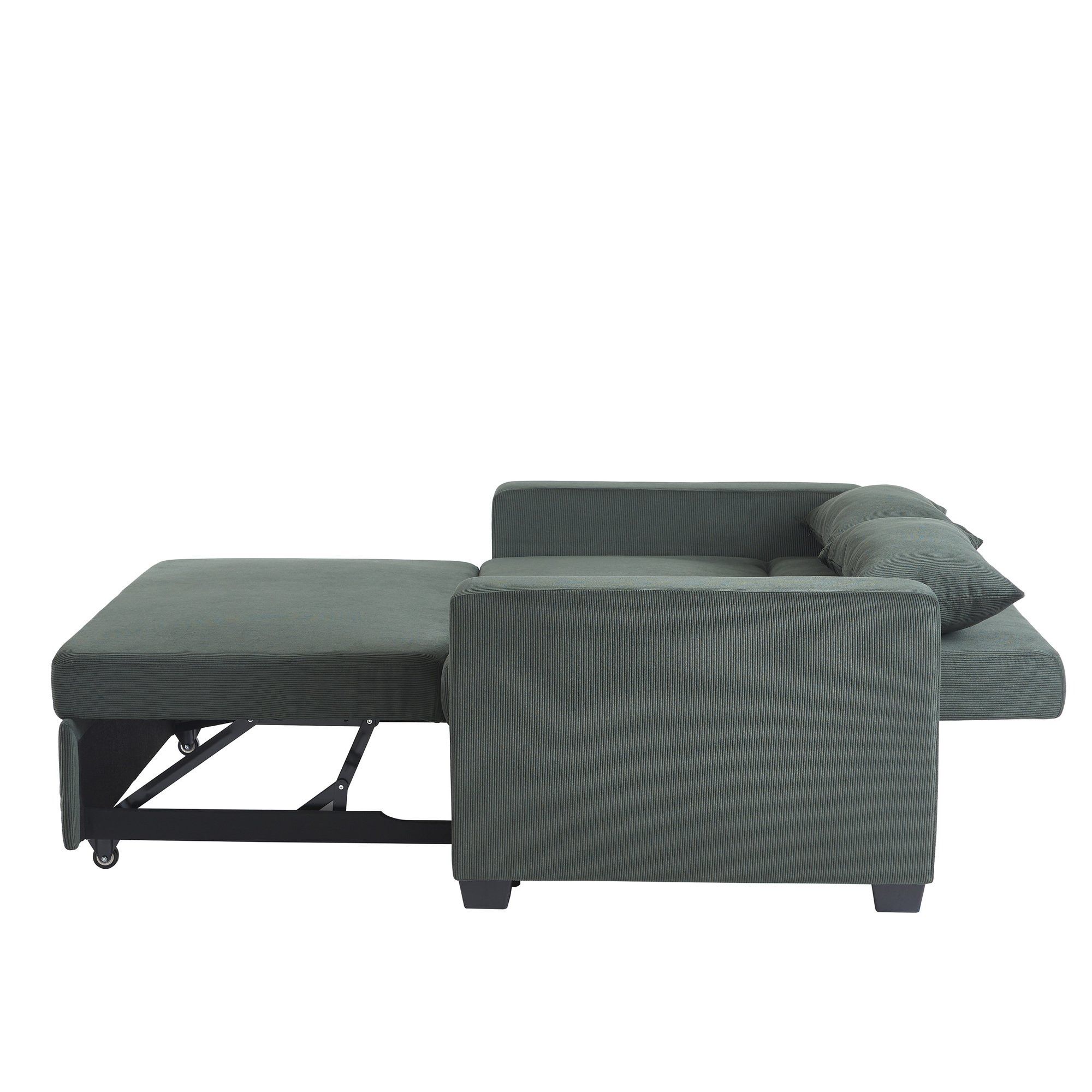 fermeCanapé droit convertible EVA 2 places en velours côtelé vert. Dimensions du canapé : 151 x 89,5 x 89,5 cm. Dimensions du couchage : 188 x 118,5 cm