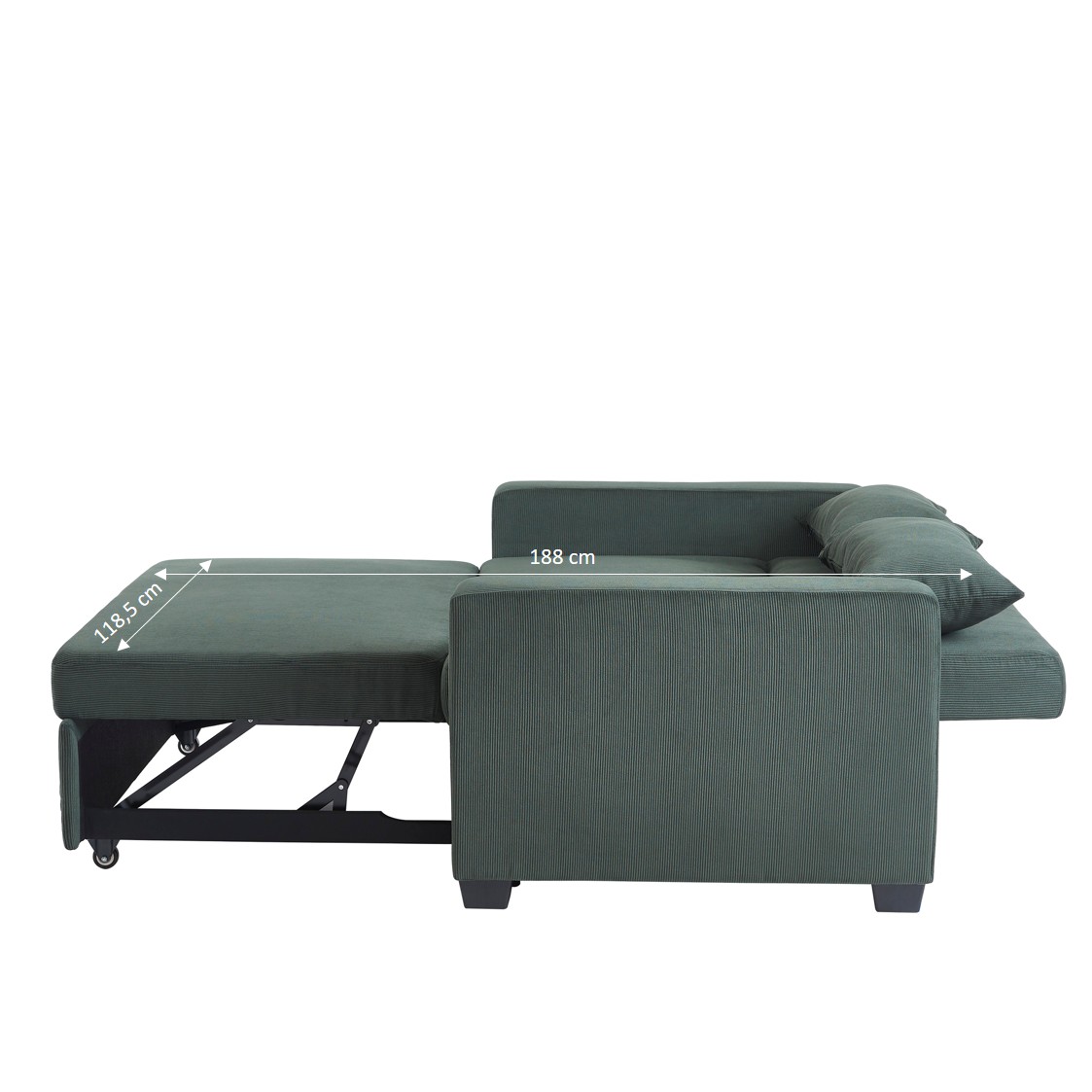Canapé droit EVA convertible velours côtelé vert 2 places