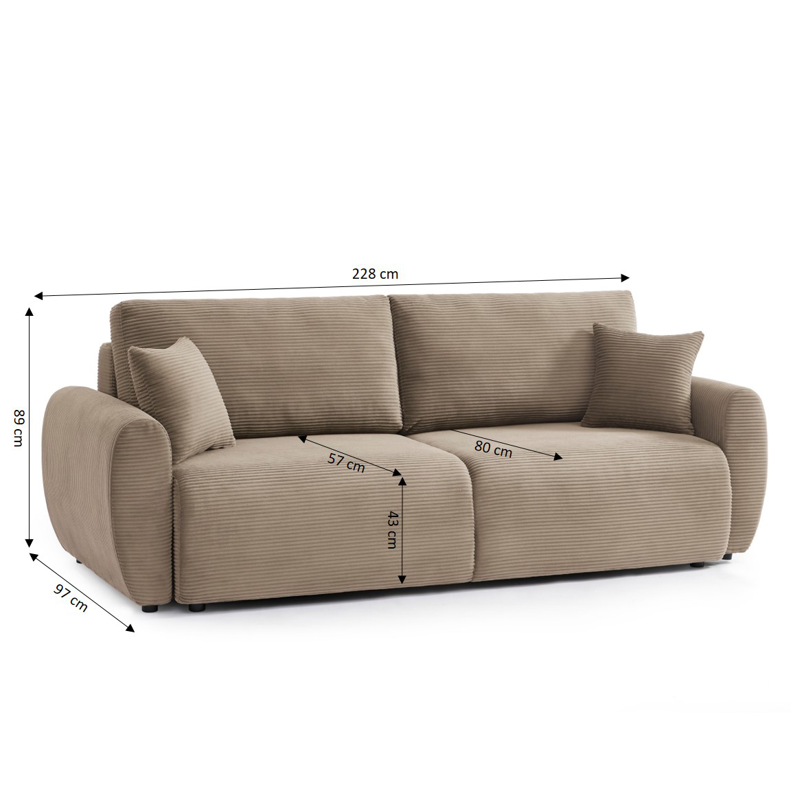 Canapé droit convertible 3 places DANILO velours côtelé taupe
