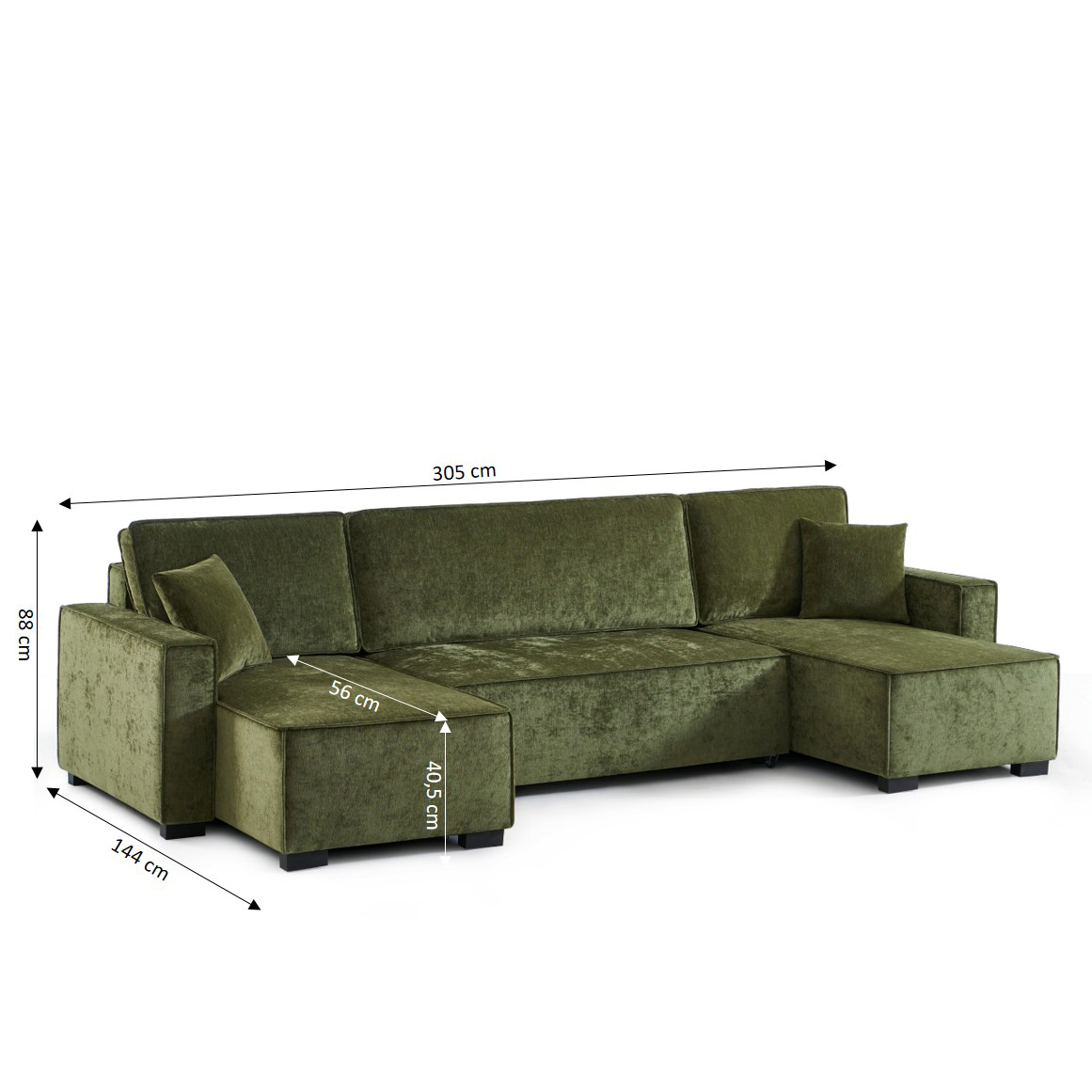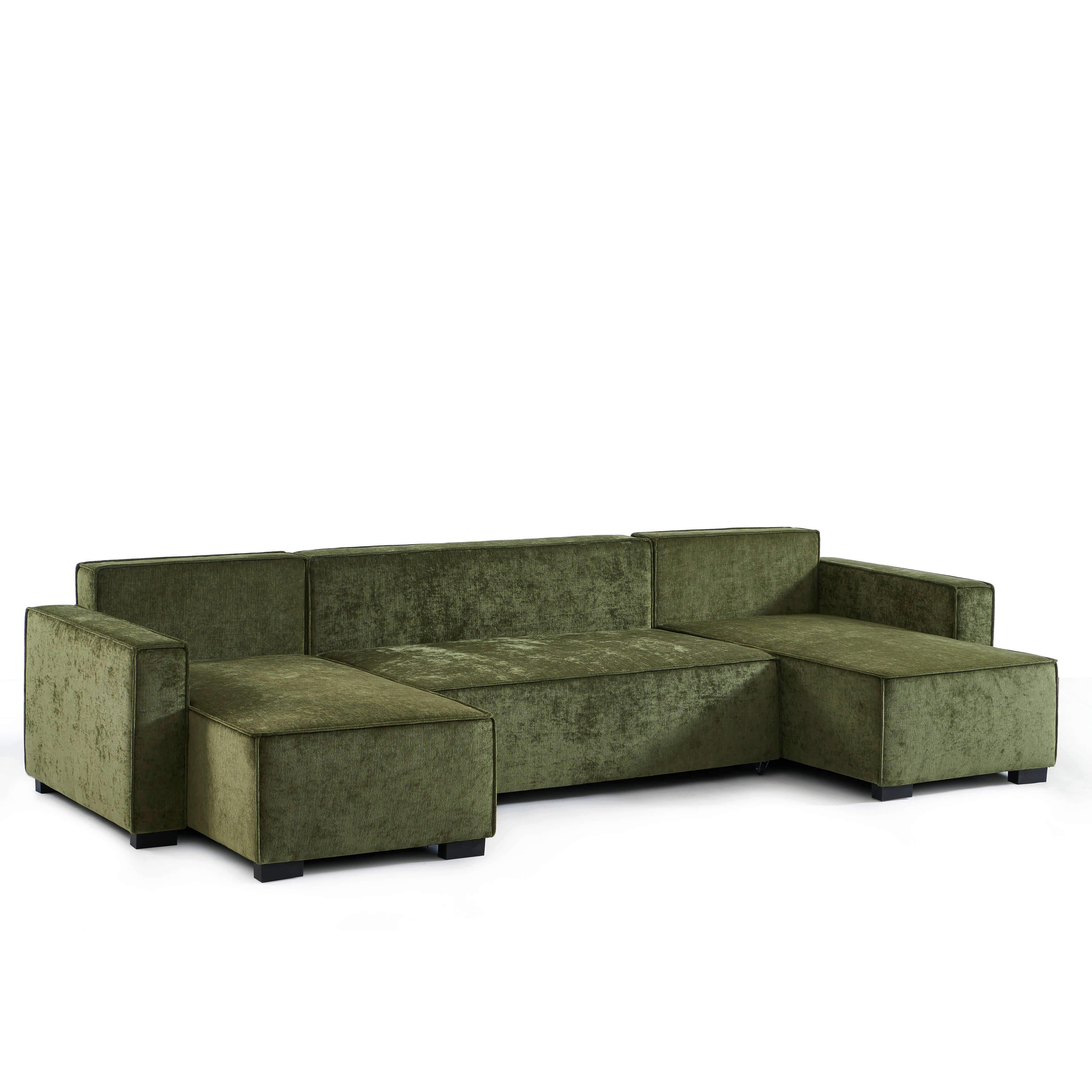 Canapé panoramique convertible GAVI 6 places tissu vert