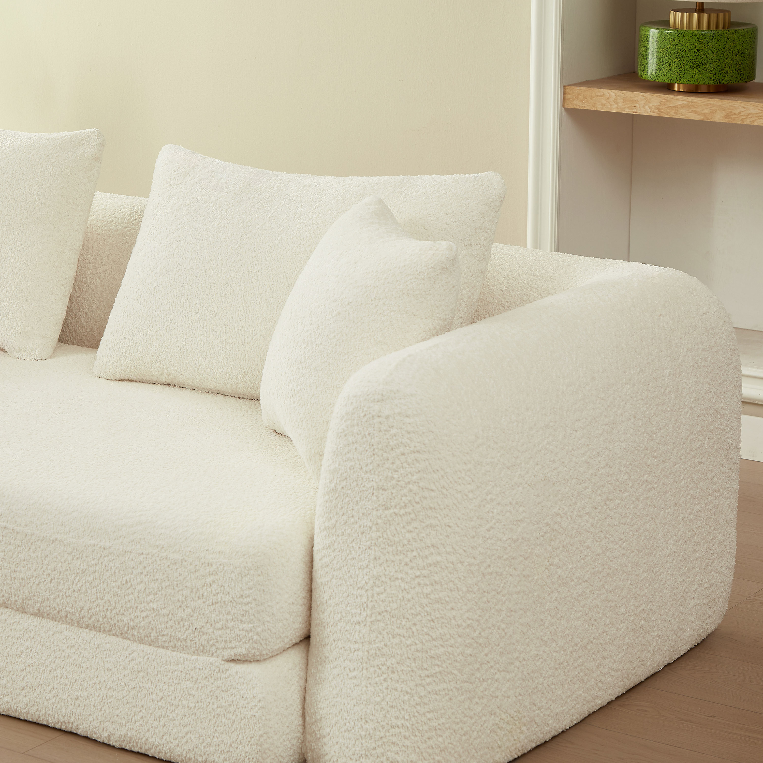 Le canapé MORPHEO 3 places séduit par son revêtement en tissu bouclette teddybear, à la fois doux, agréable au toucher et chaleureux. Son style contemporain apportera une note cosy à votre salon, tout en restant facile à intégrer dans différents univers décoratifs.