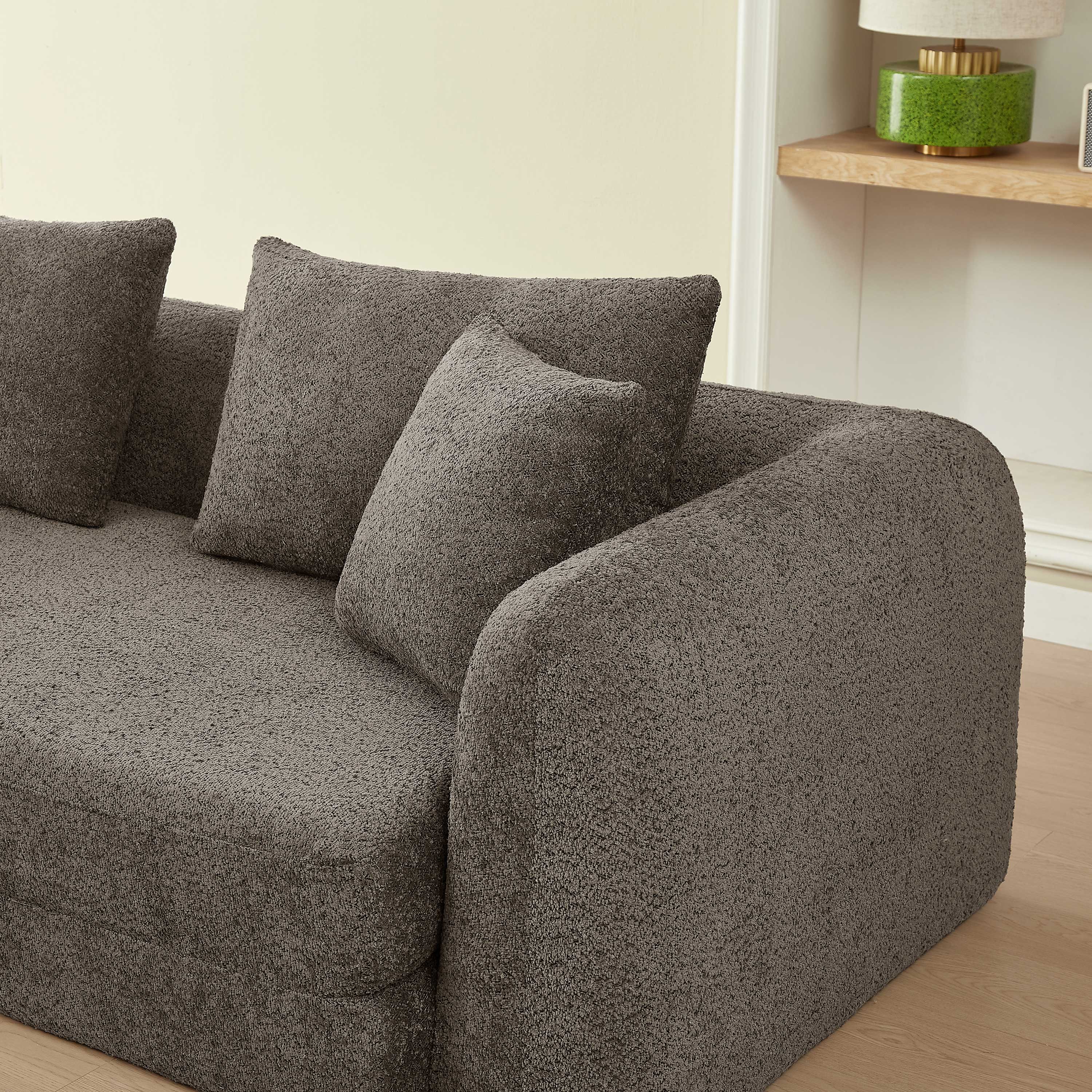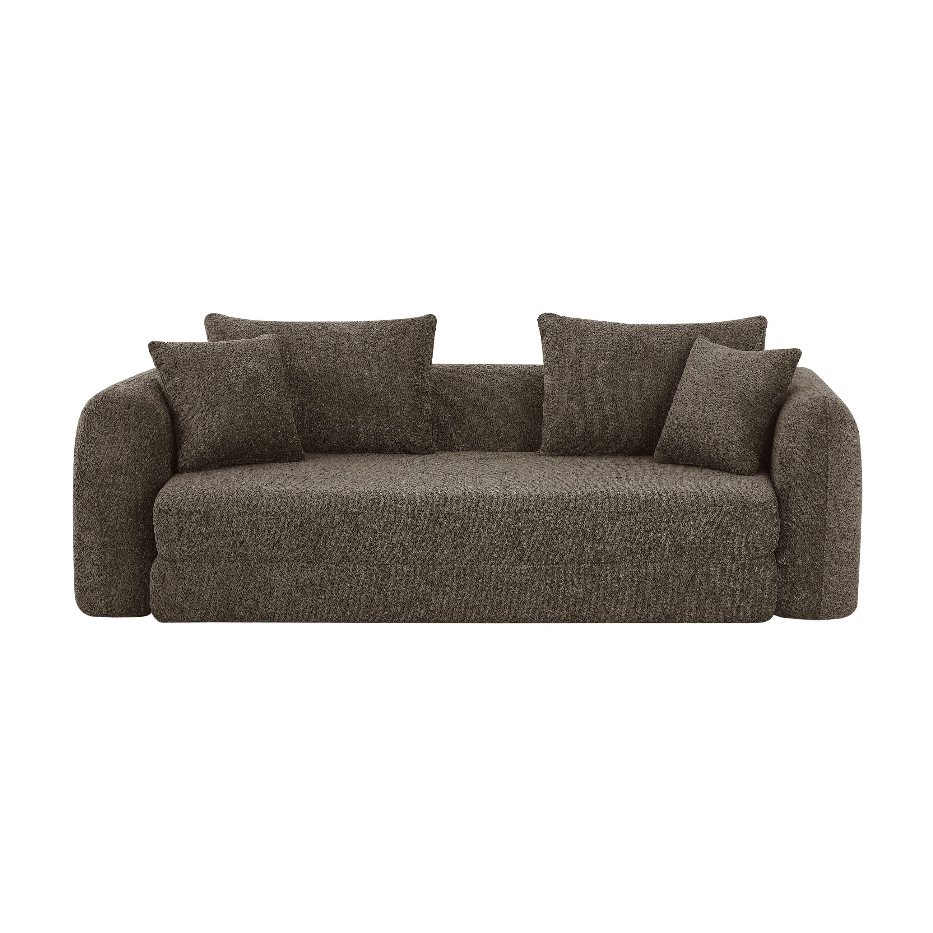 Canapé droit compressé convertible MORPHEO 3 places tissu bouclette marron