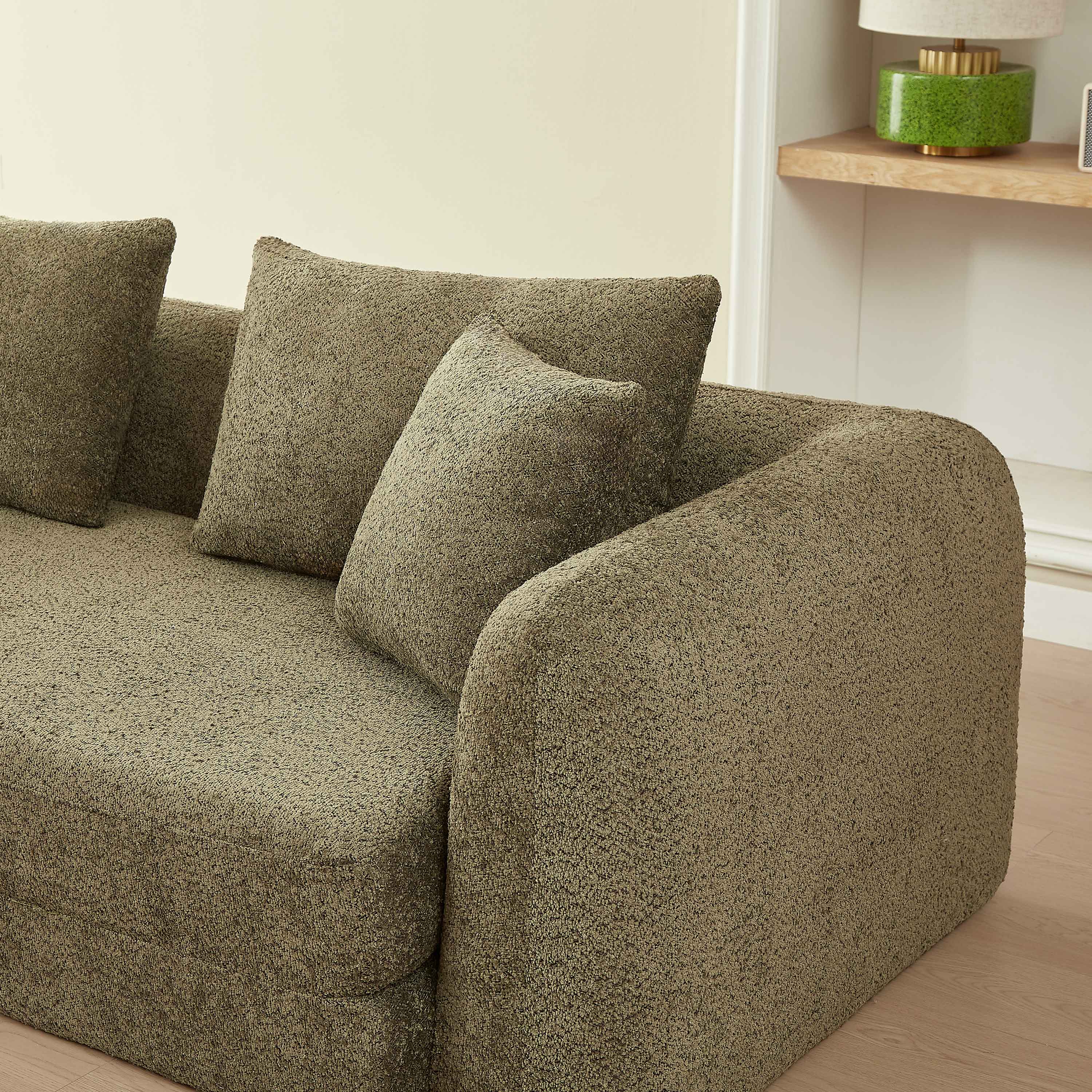 Canapé droit compressé convertible MORPHEO 3 places tissu bouclette vert