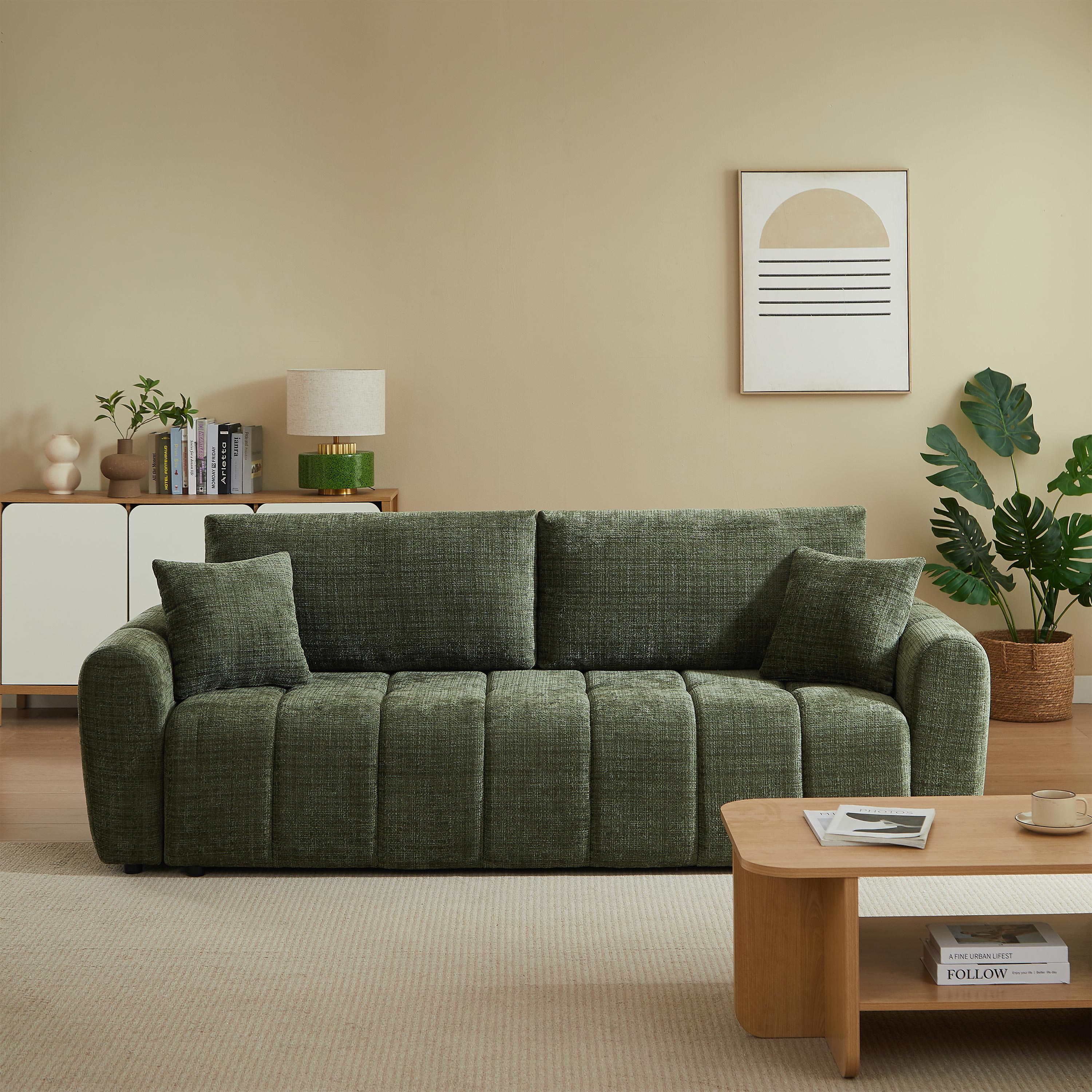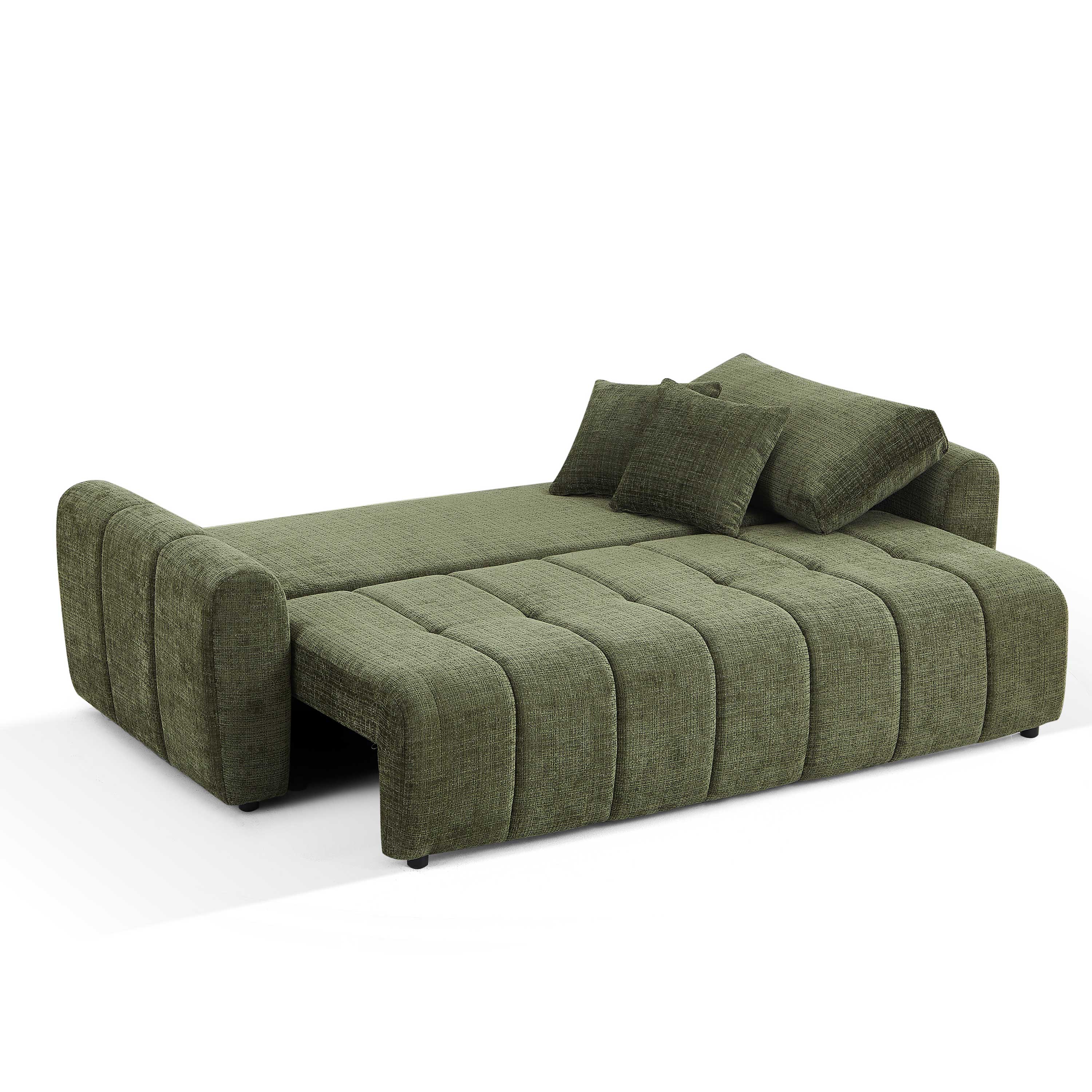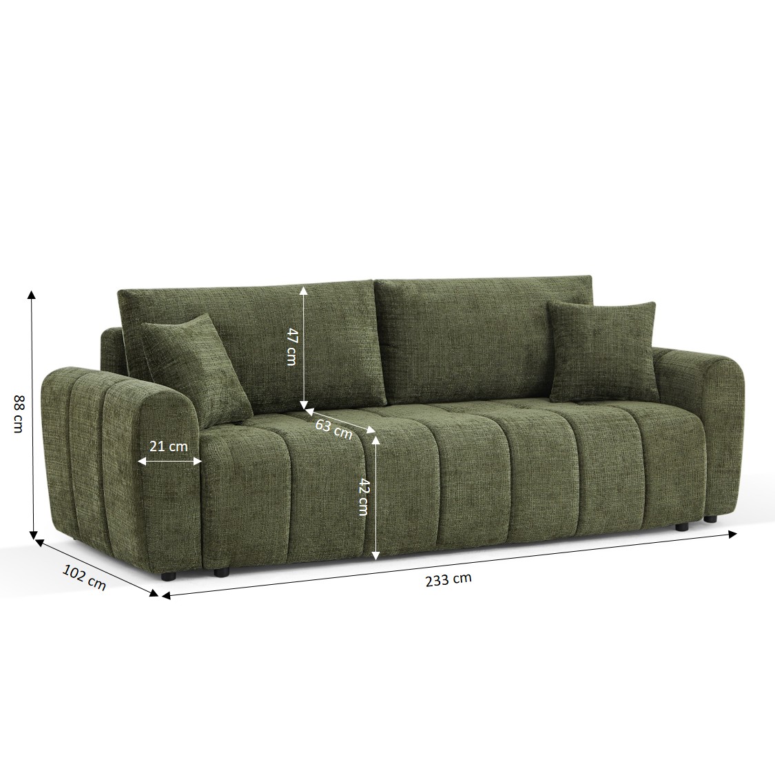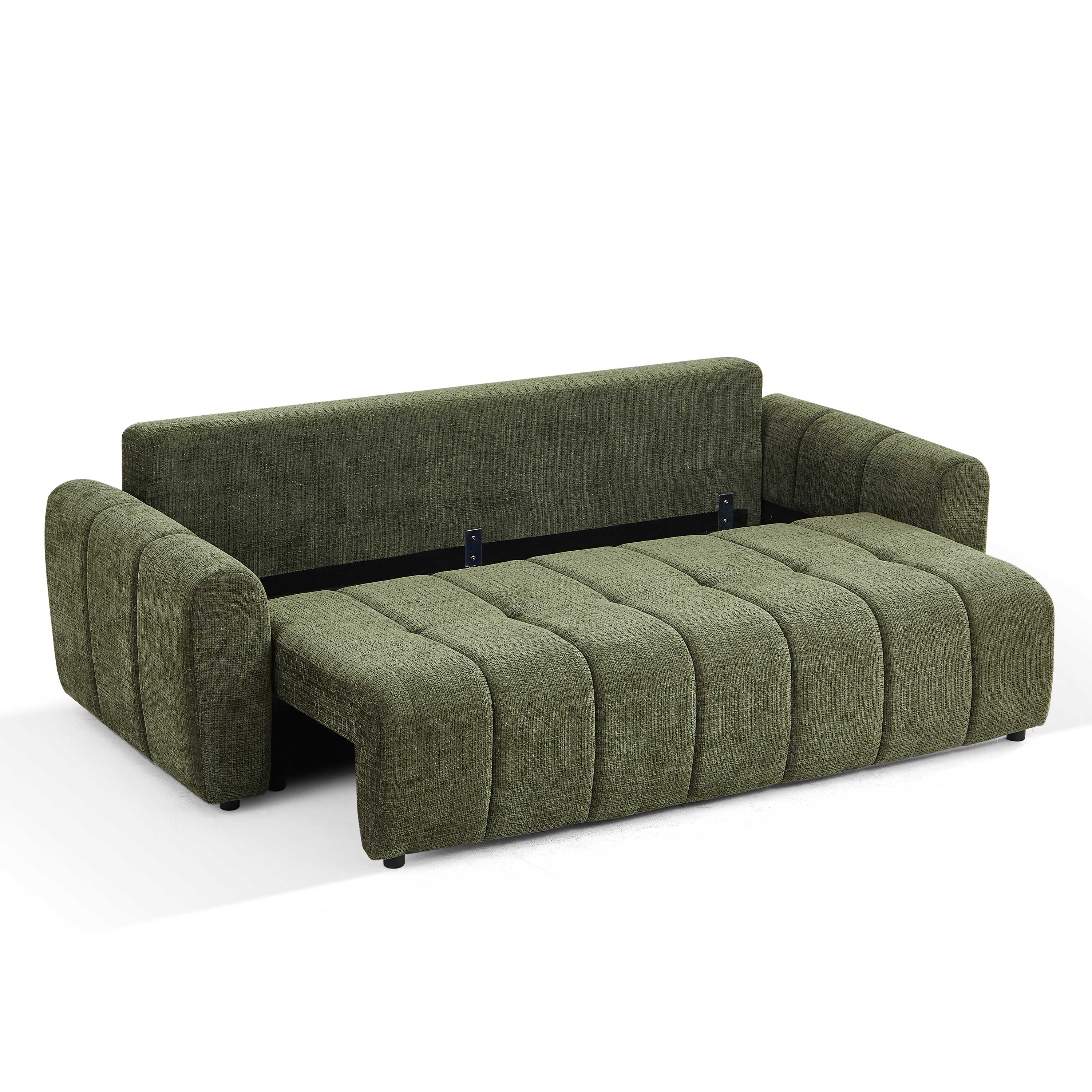 Canapé droit convertible JONEA 3 places tissu texturé vert