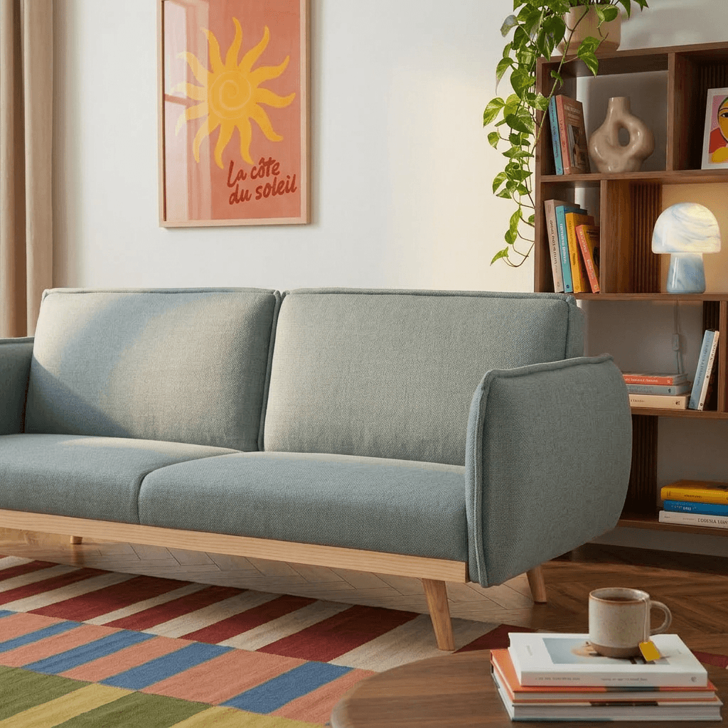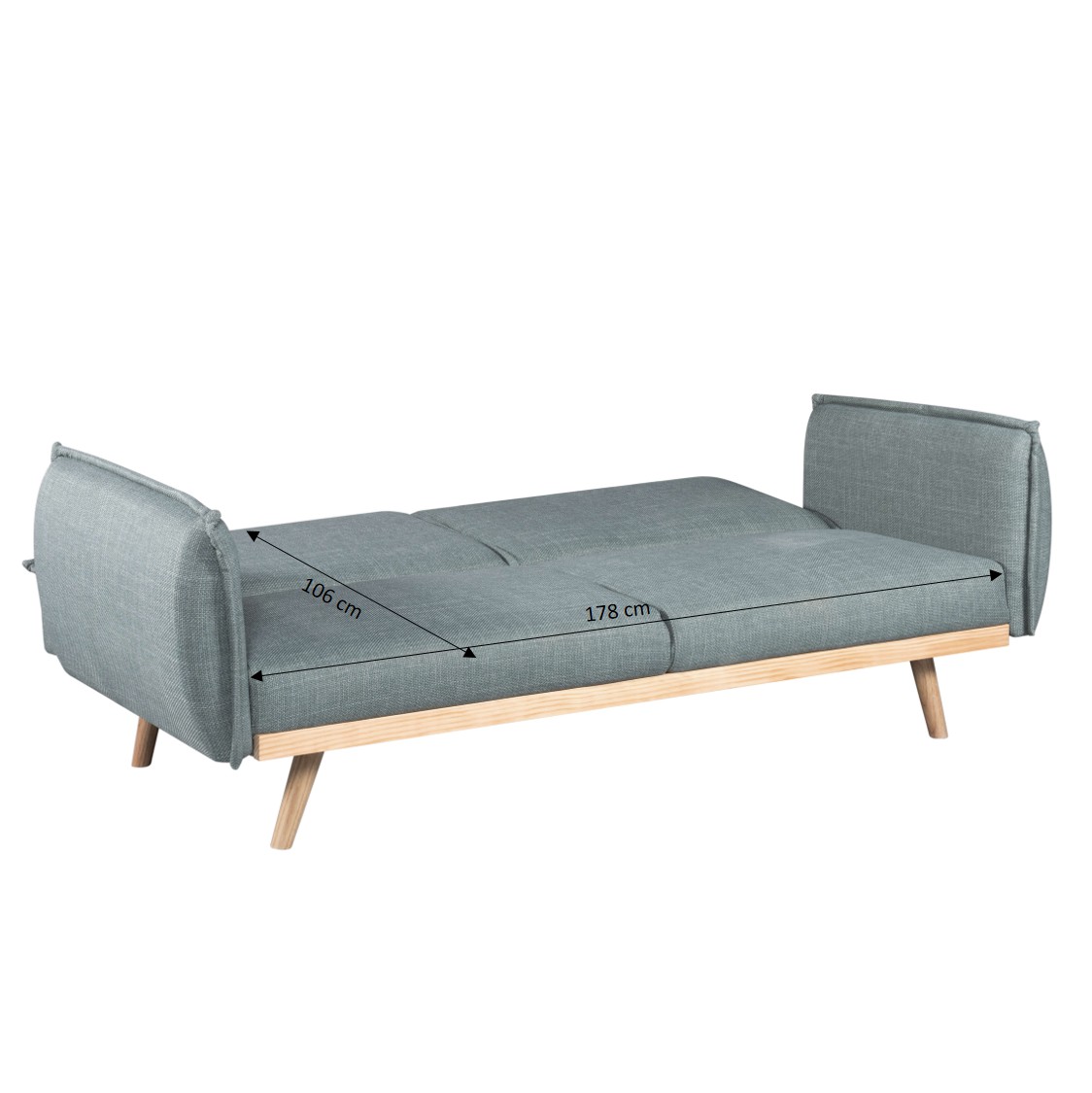 fermeLe canapé droit convertible VESTA séduit par son style scandinave intemporel et sa base en bois chaleureuse. Convertible, il allie esthétique et praticité.