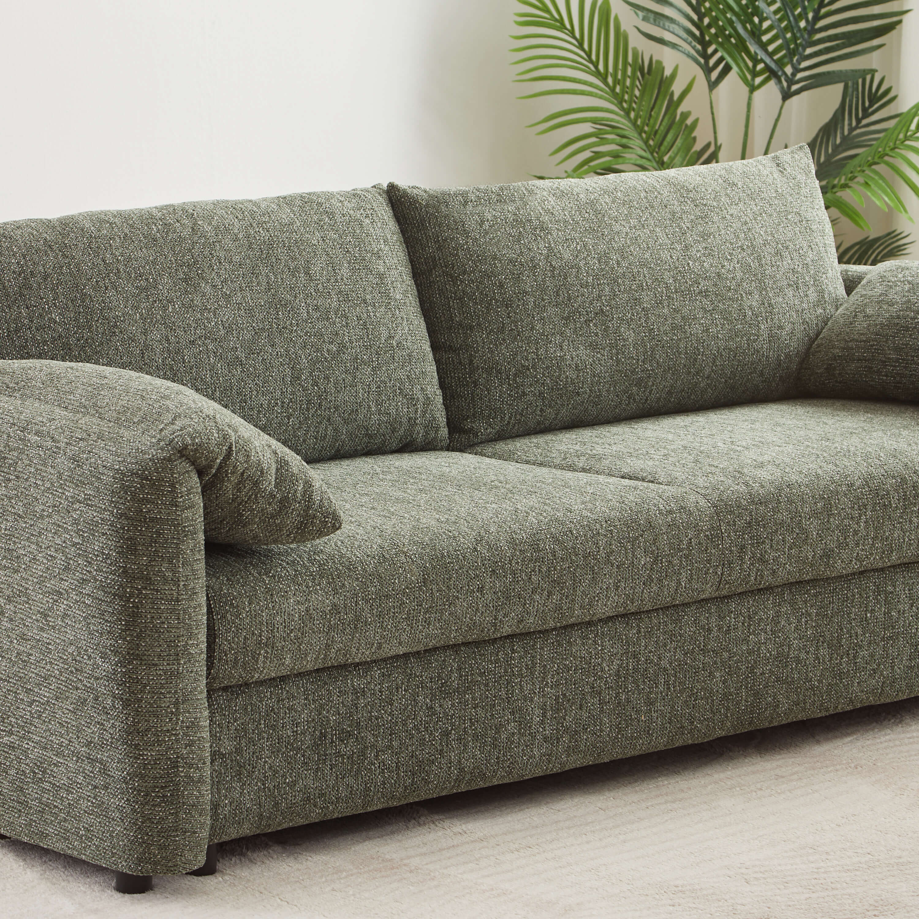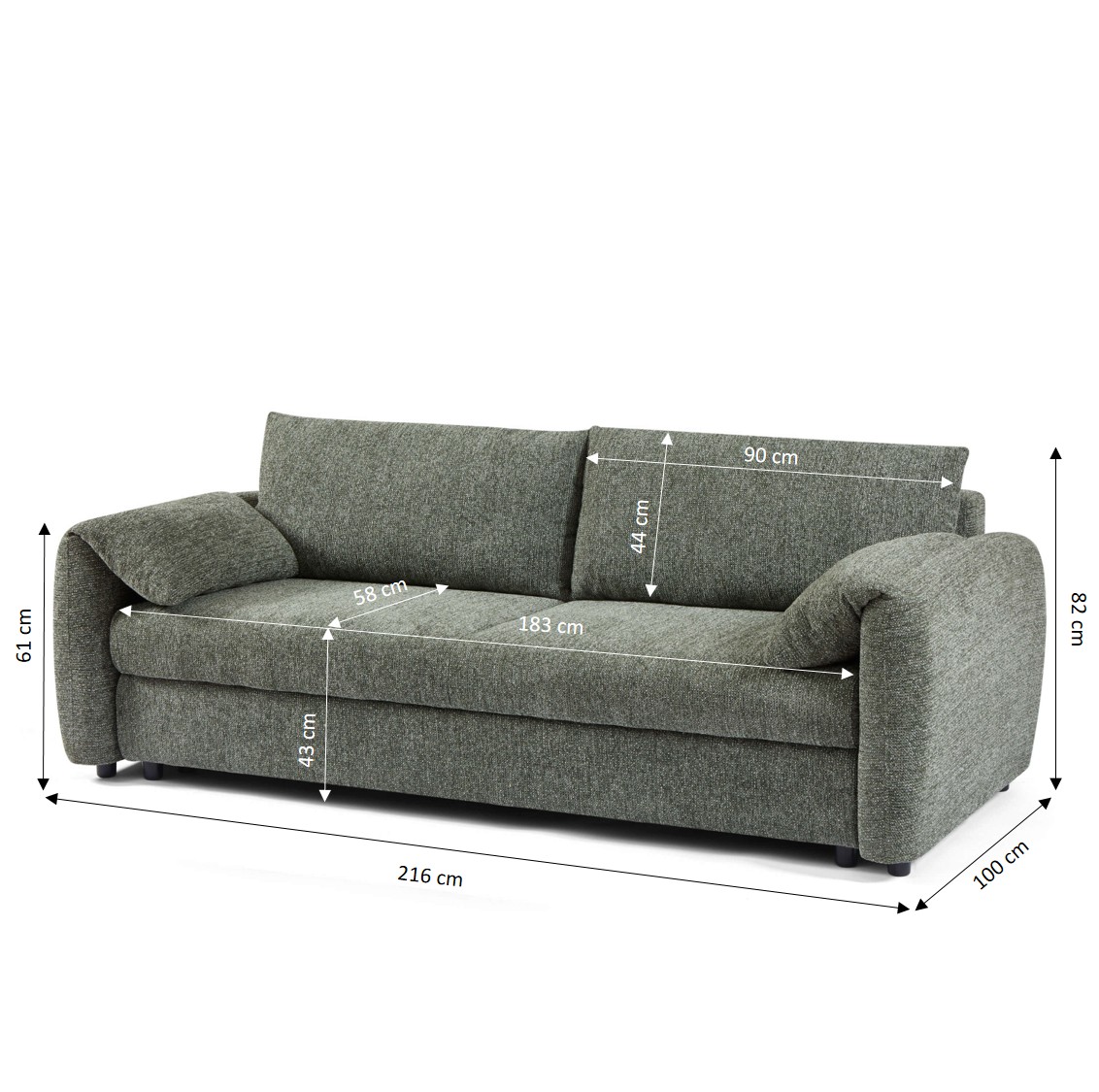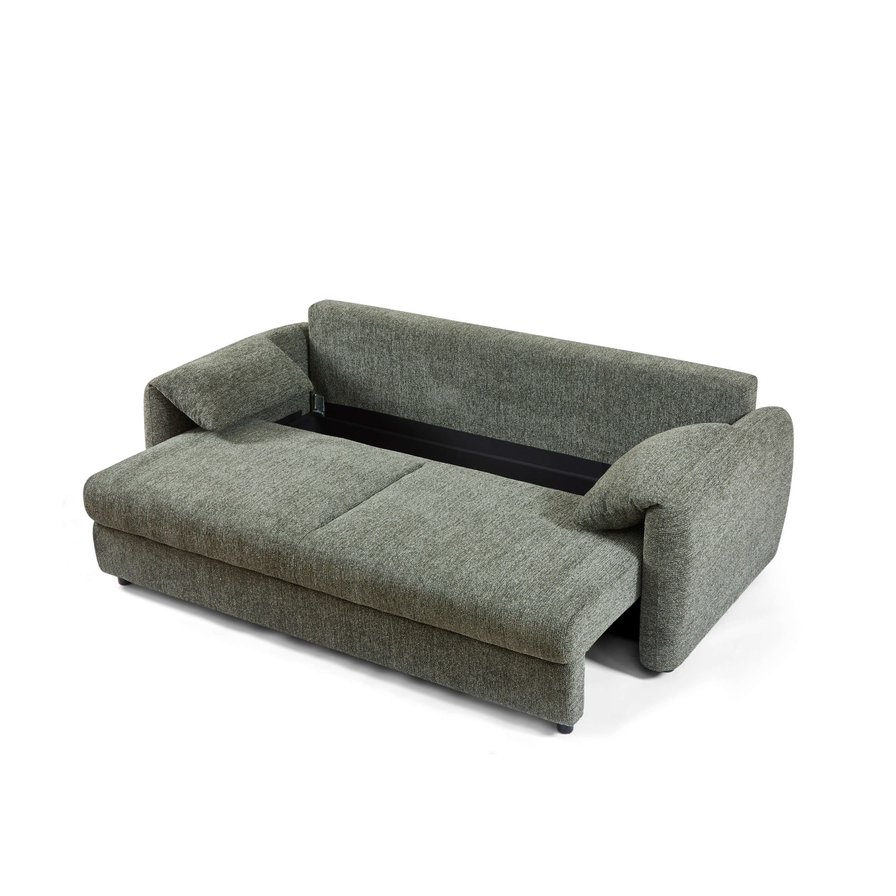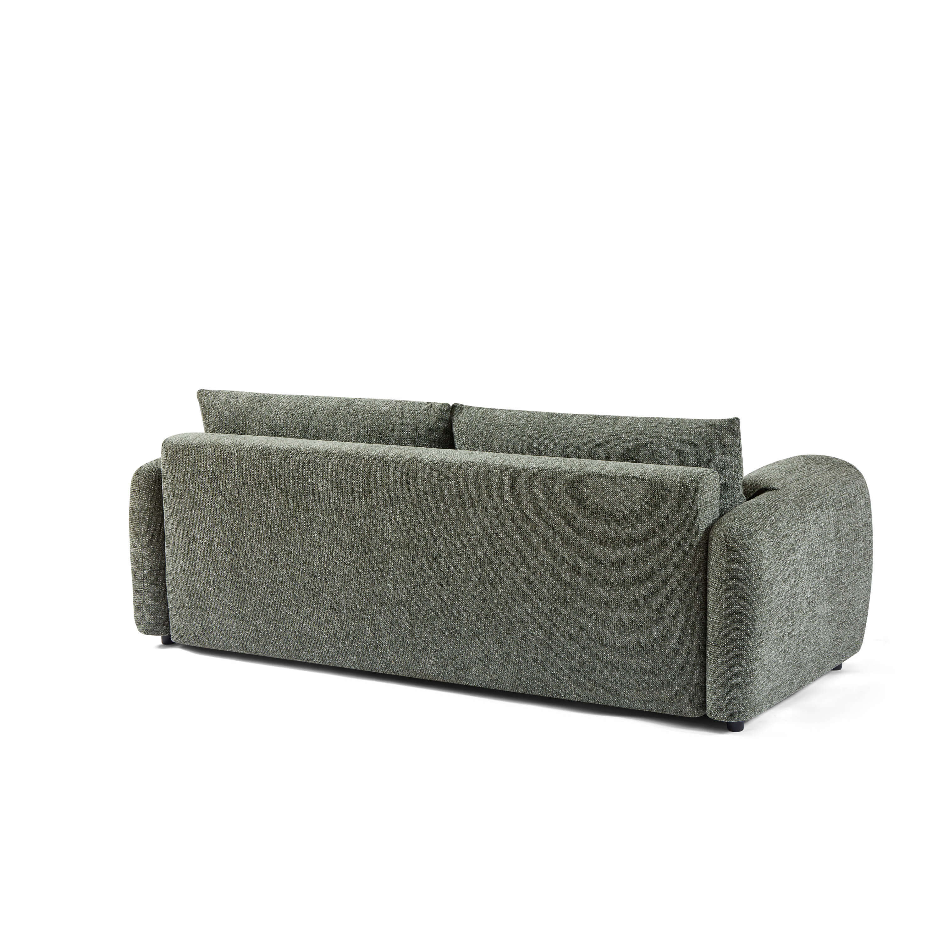 Canapé droit convertible ANGEA 3 places tissu chenille tramé vert