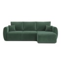 équilibréCanapé d'angle convertible REFA 4 places, avec angle reversible et coffre de rangement, en velours côtelé vert. Dimensions du canapé : 252 x 141 x 90 cm. Dimensions du couchage : 150 x 210 cm