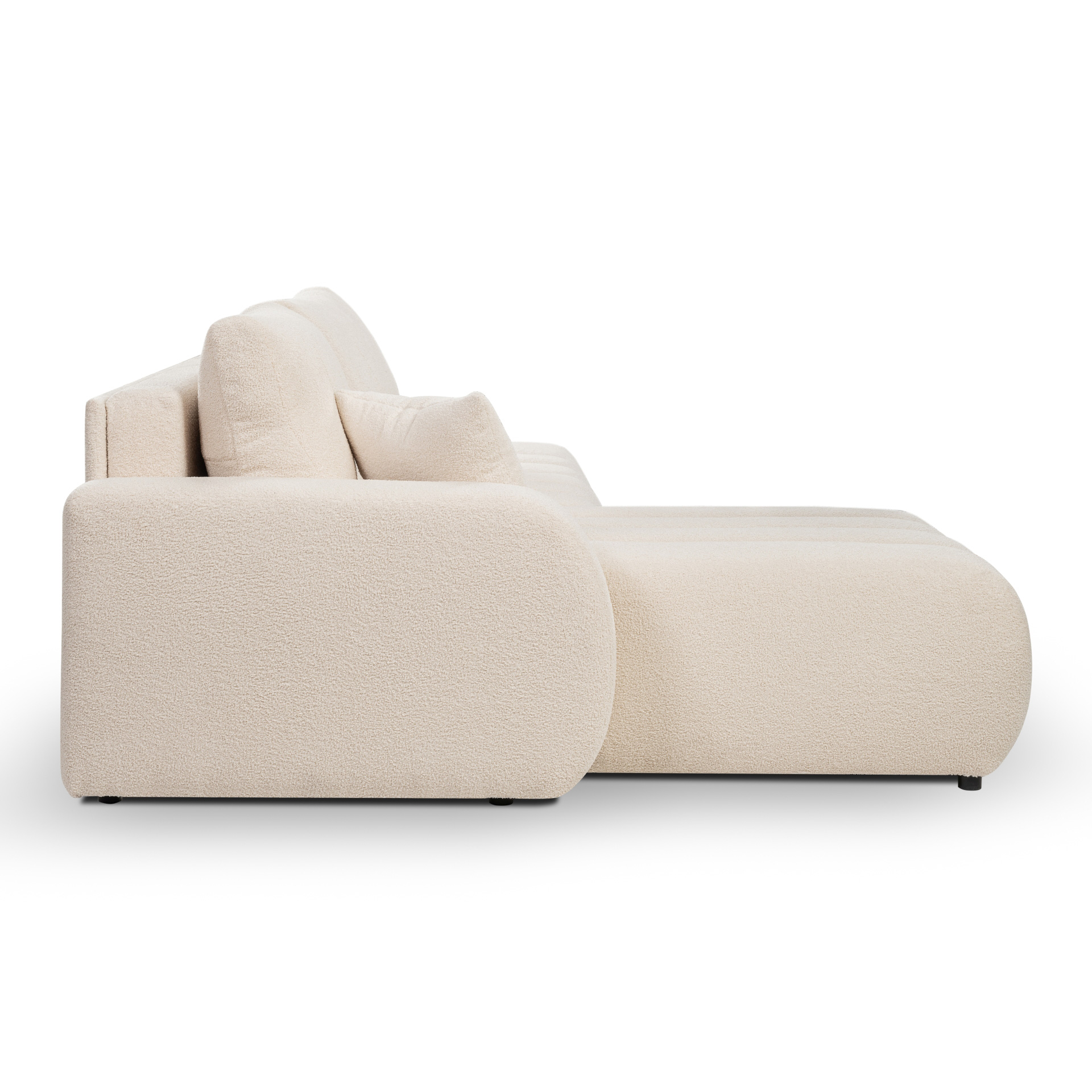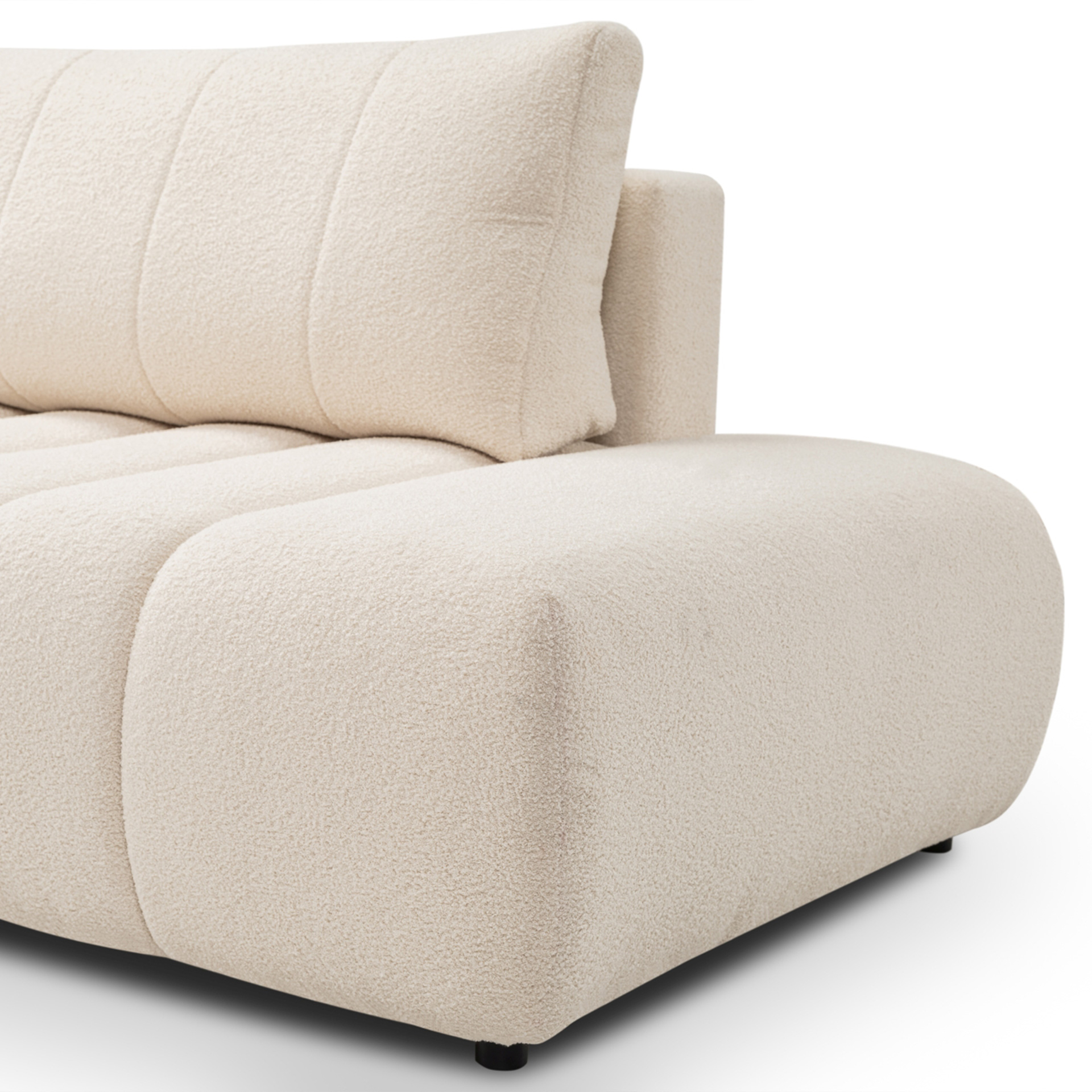 Craquez pour le canapé d'angle BELEM : le parfait mélange entre confort et praticité. Habillé d'un tissu bouclette tout doux, il est parfait pour rendre votre salon cosy tout en simplifiant votre quotidien.