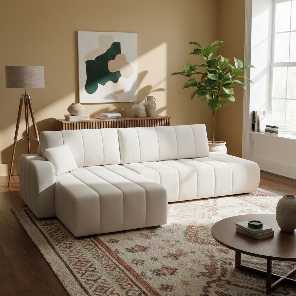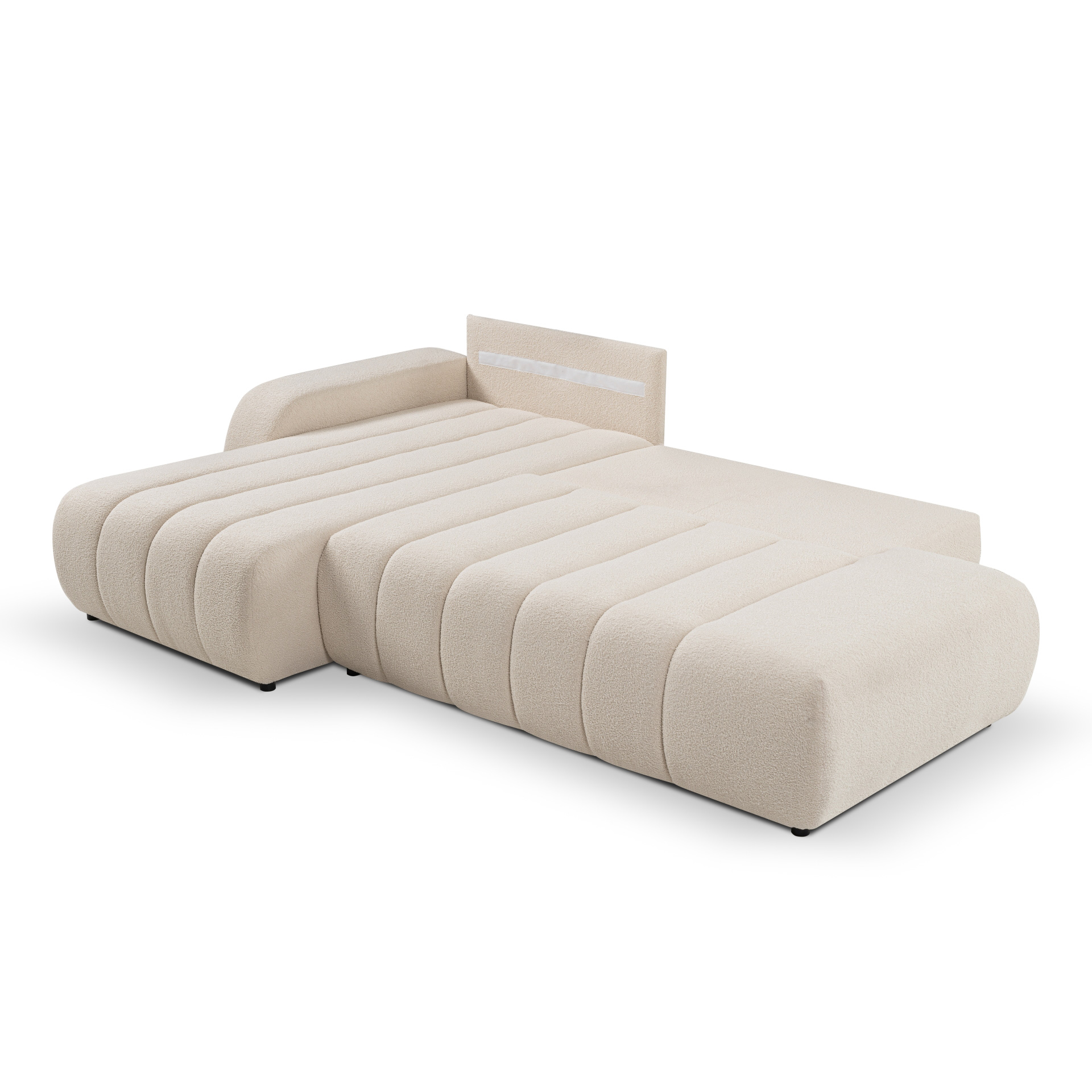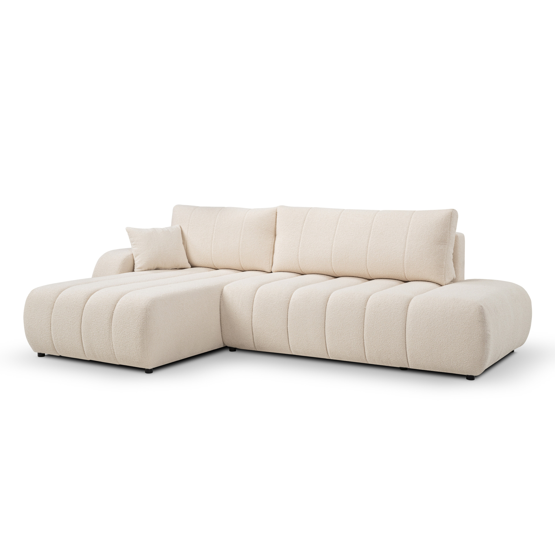 Canapé d'angle gauche convertible BELEM 4/5 places tissu bouclette écru