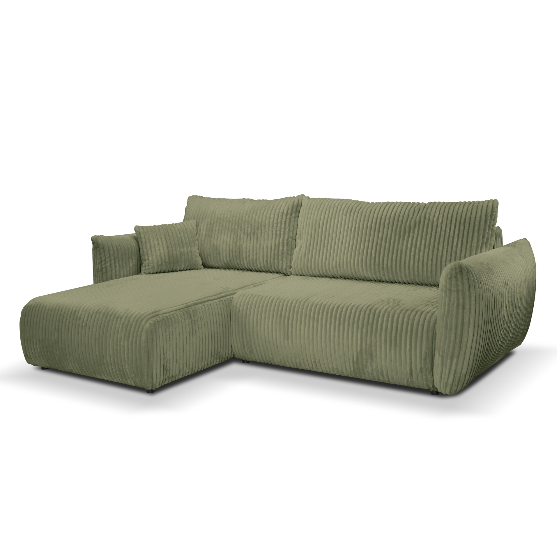Canapé d'angle convertible et réversible GLORIA 4 places velours côtelé vert sauge