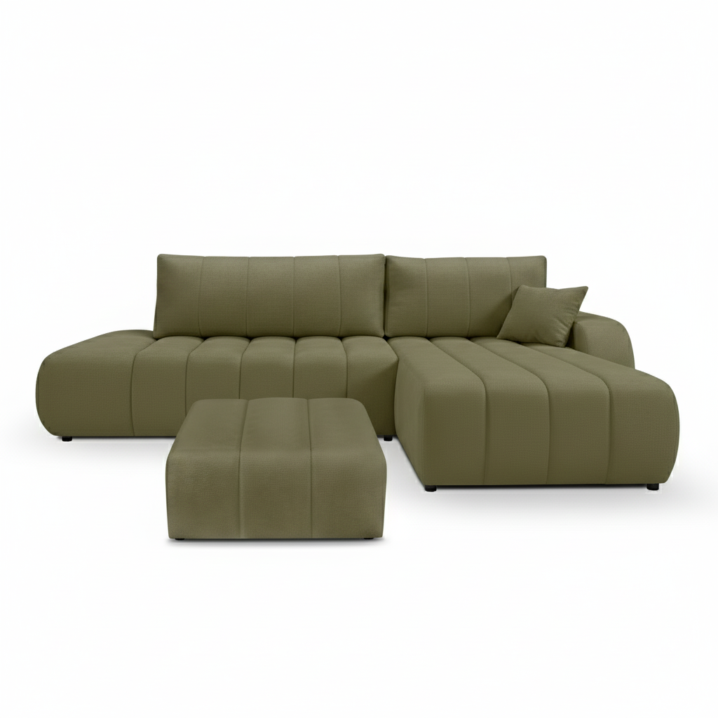 Canapé d'angle droit convertible BELEM 4/5 places tissu chenille vert