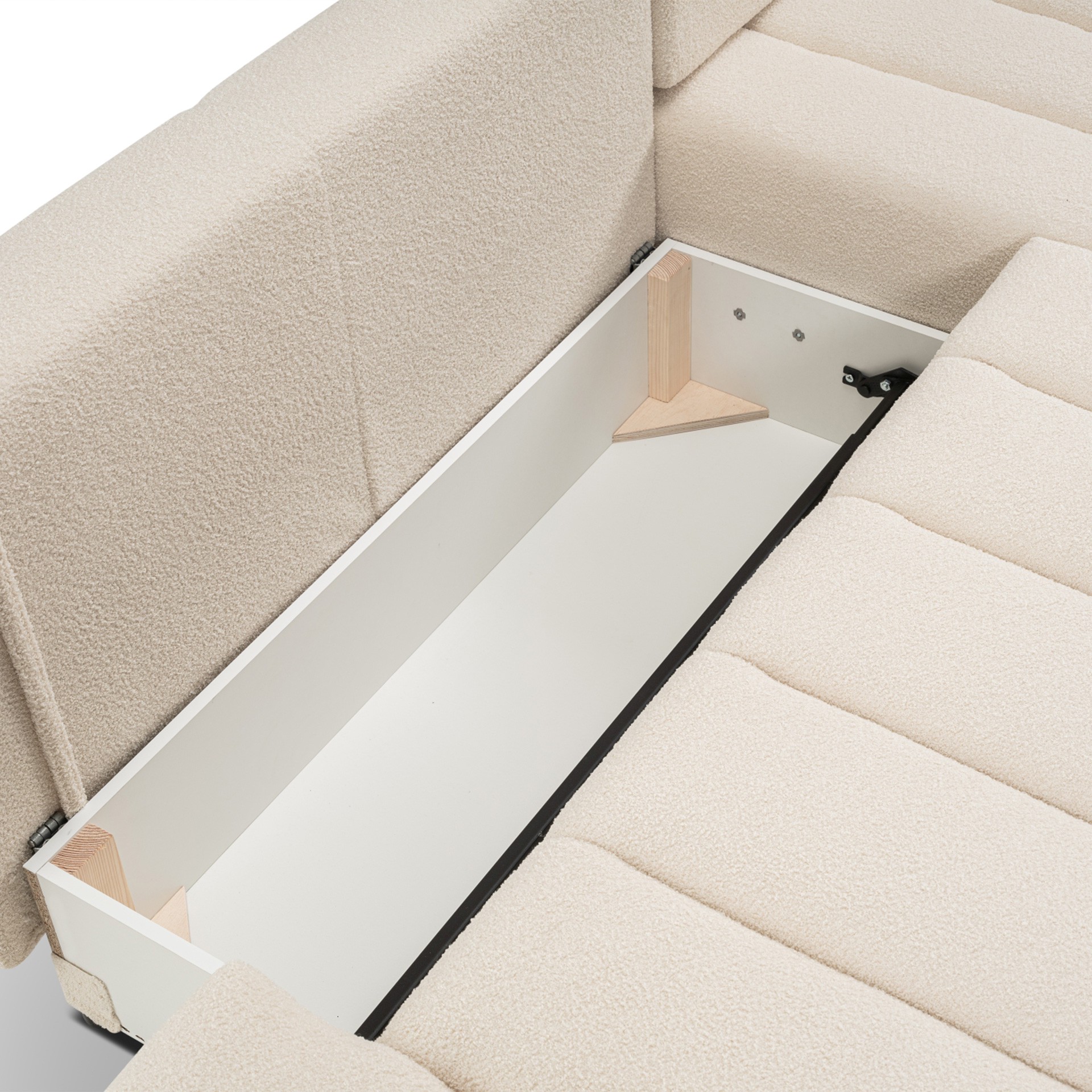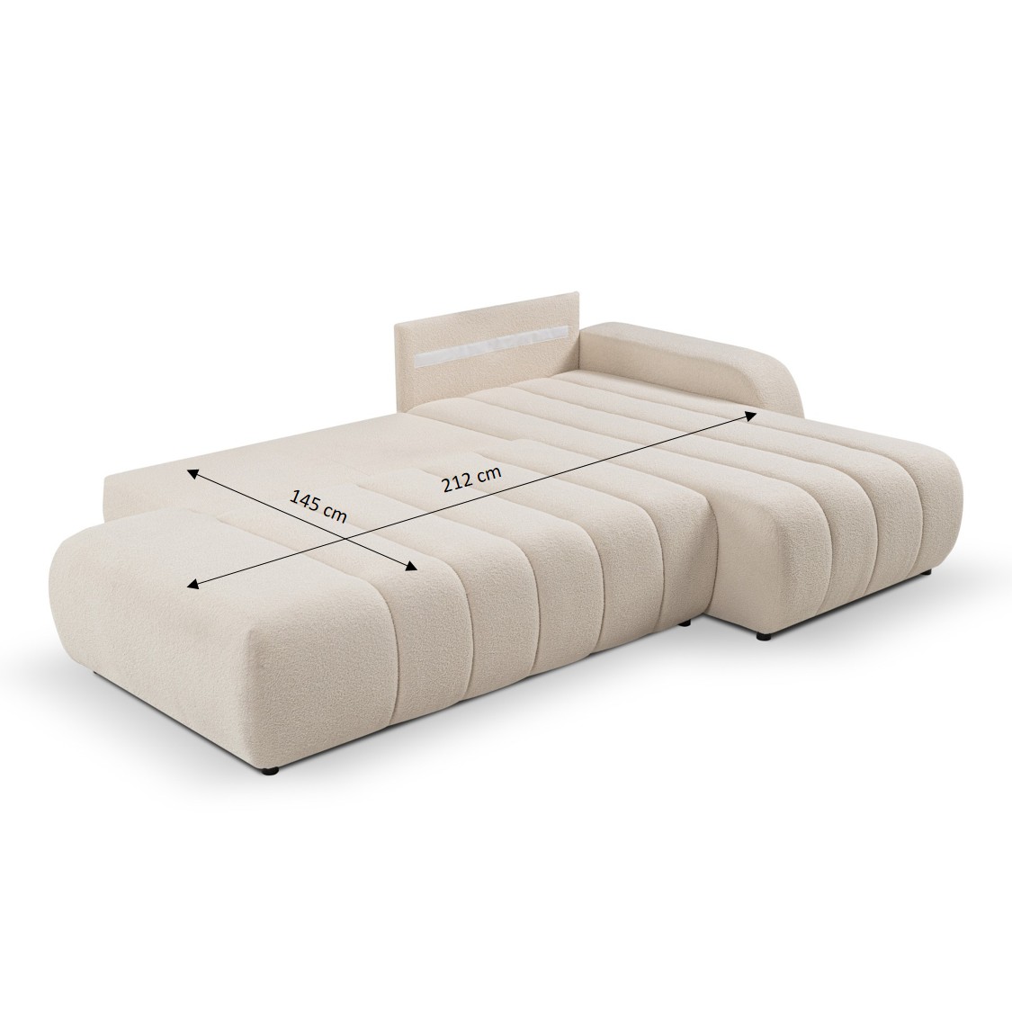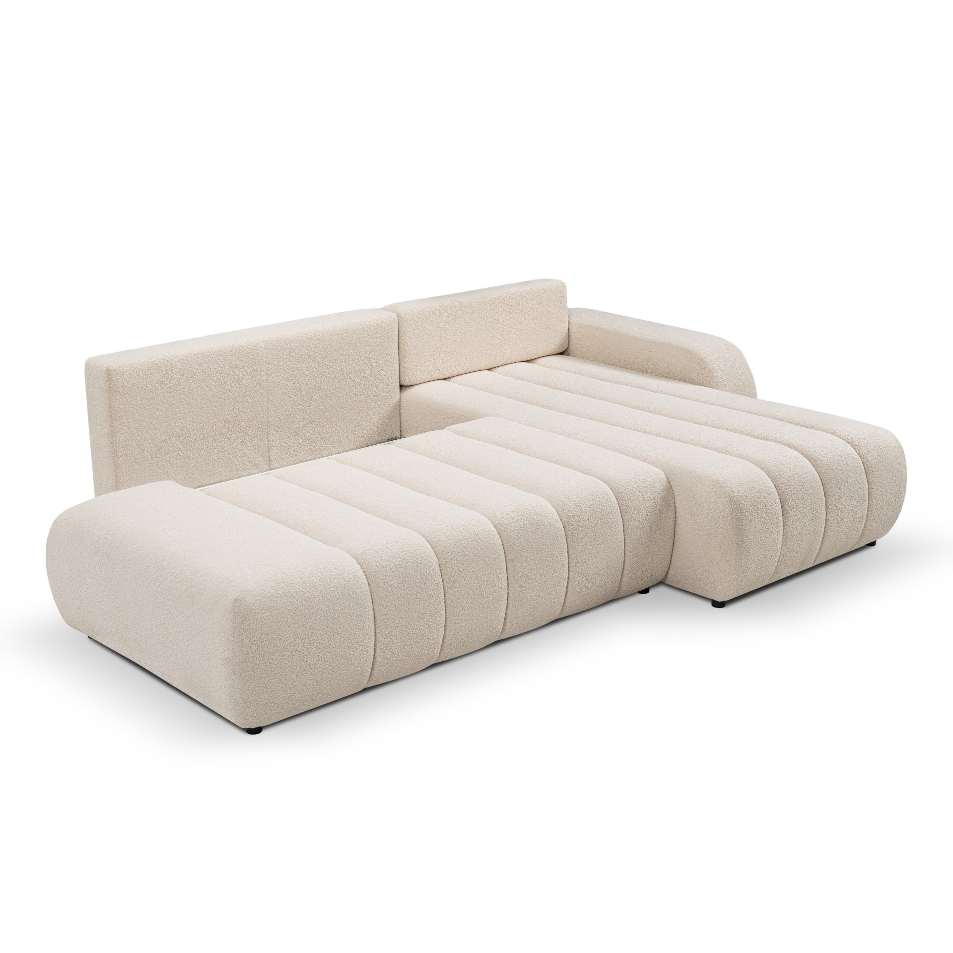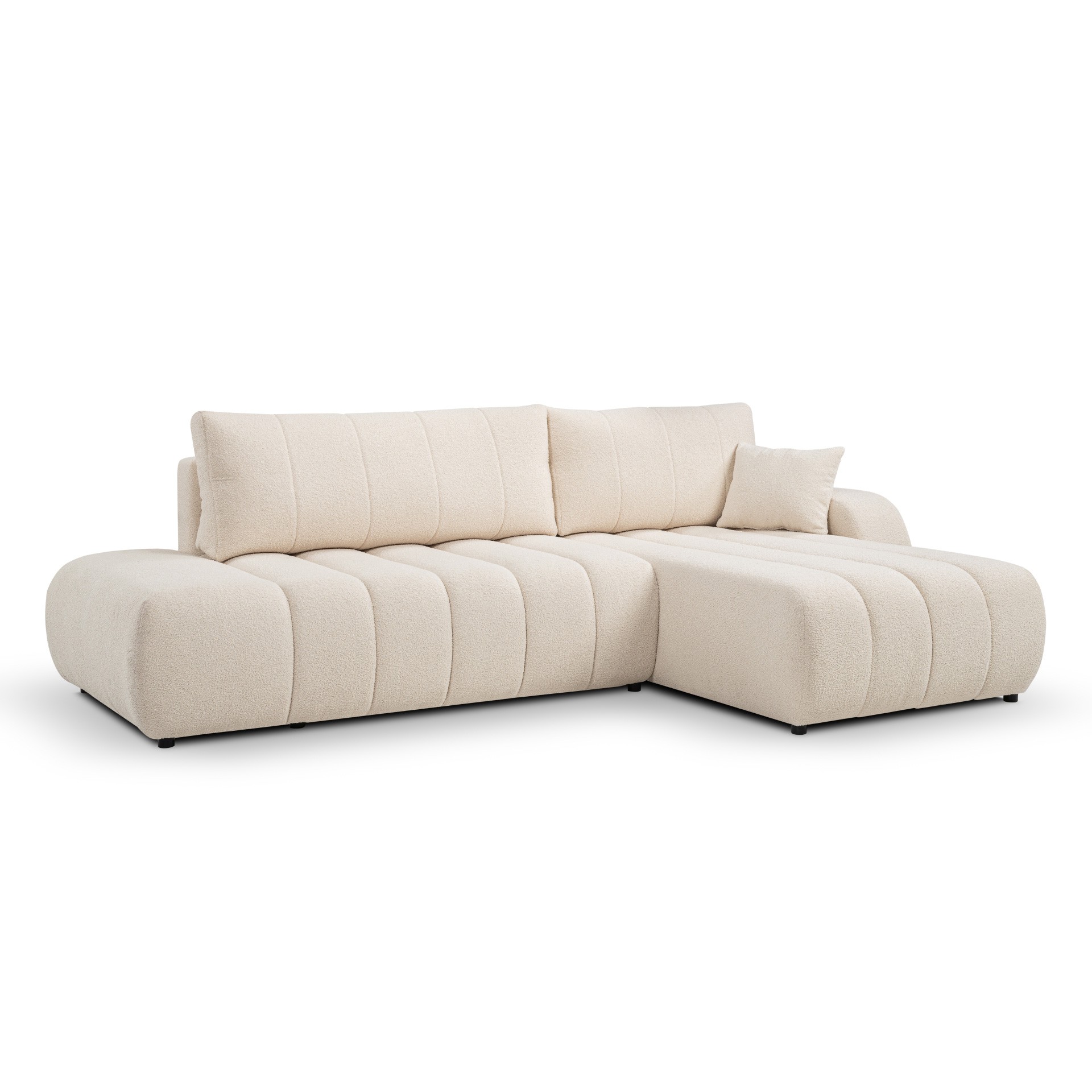 Canapé d'angle droit convertible BELEM 4/5 places tissu bouclette écru