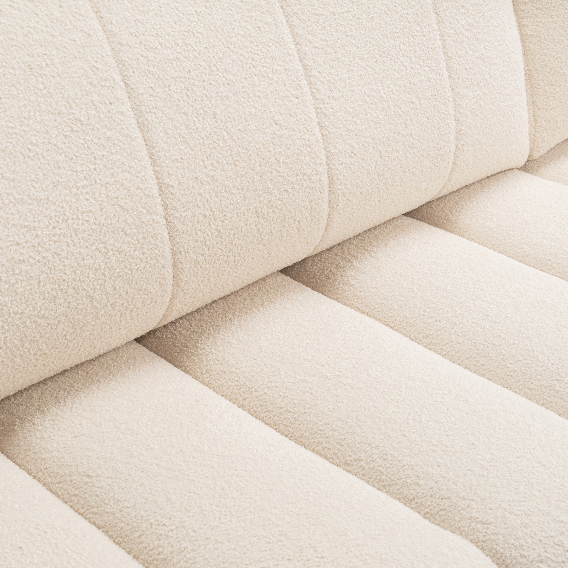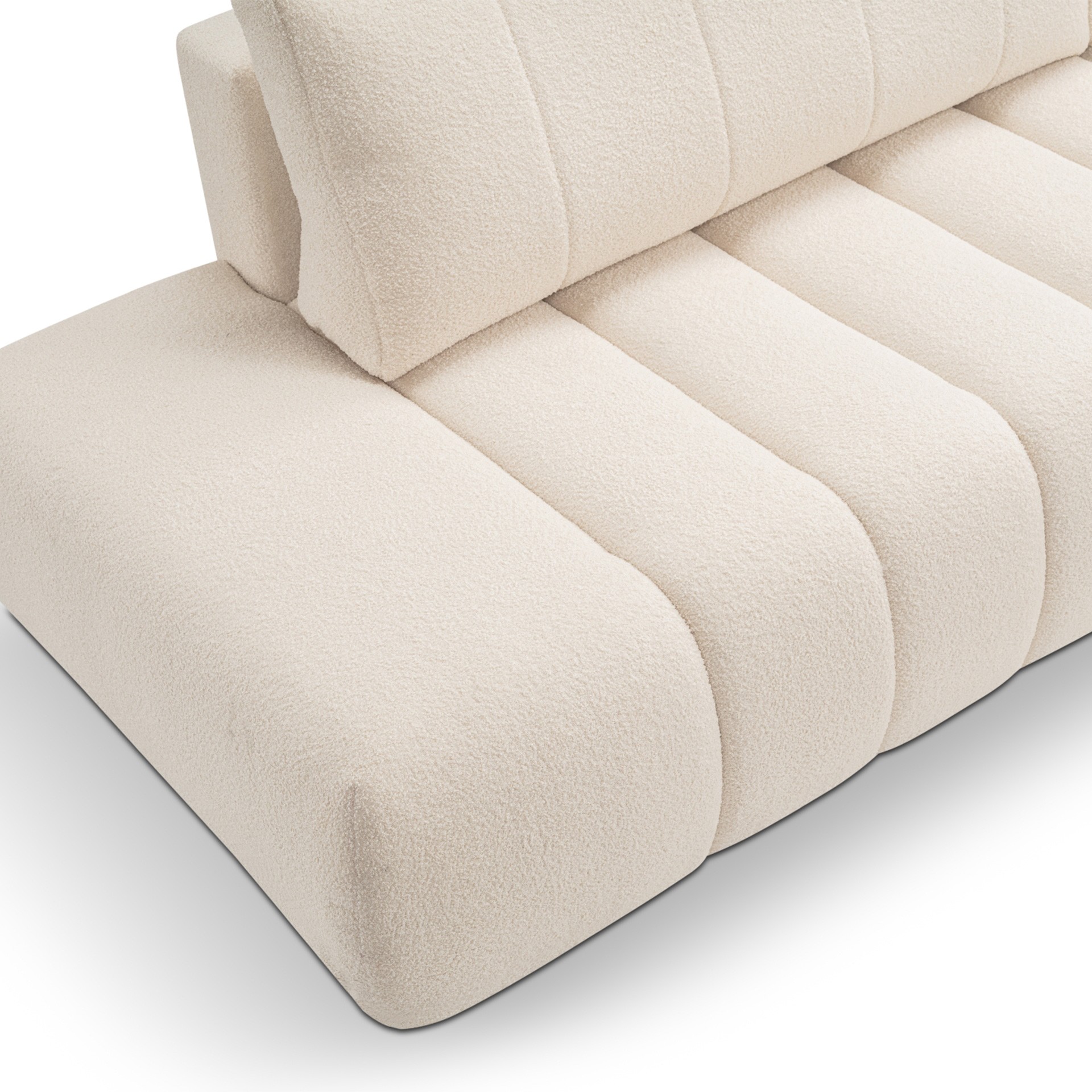 Son revêtement en tissu bouclette séduit par sa texture douce et enveloppante, parfaite pour créer une ambiance cocooning. Ce textile au toucher agréable apporte du relief et de la chaleur à votre intérieur. Sa teinte sobre et lumineuse, s'associe facilement à une décoration moderne, scandinave ou bohème. Disponible aussi dans d'autres coloris, le canapé BELEM s'adapte à toutes vos inspirations déco !
