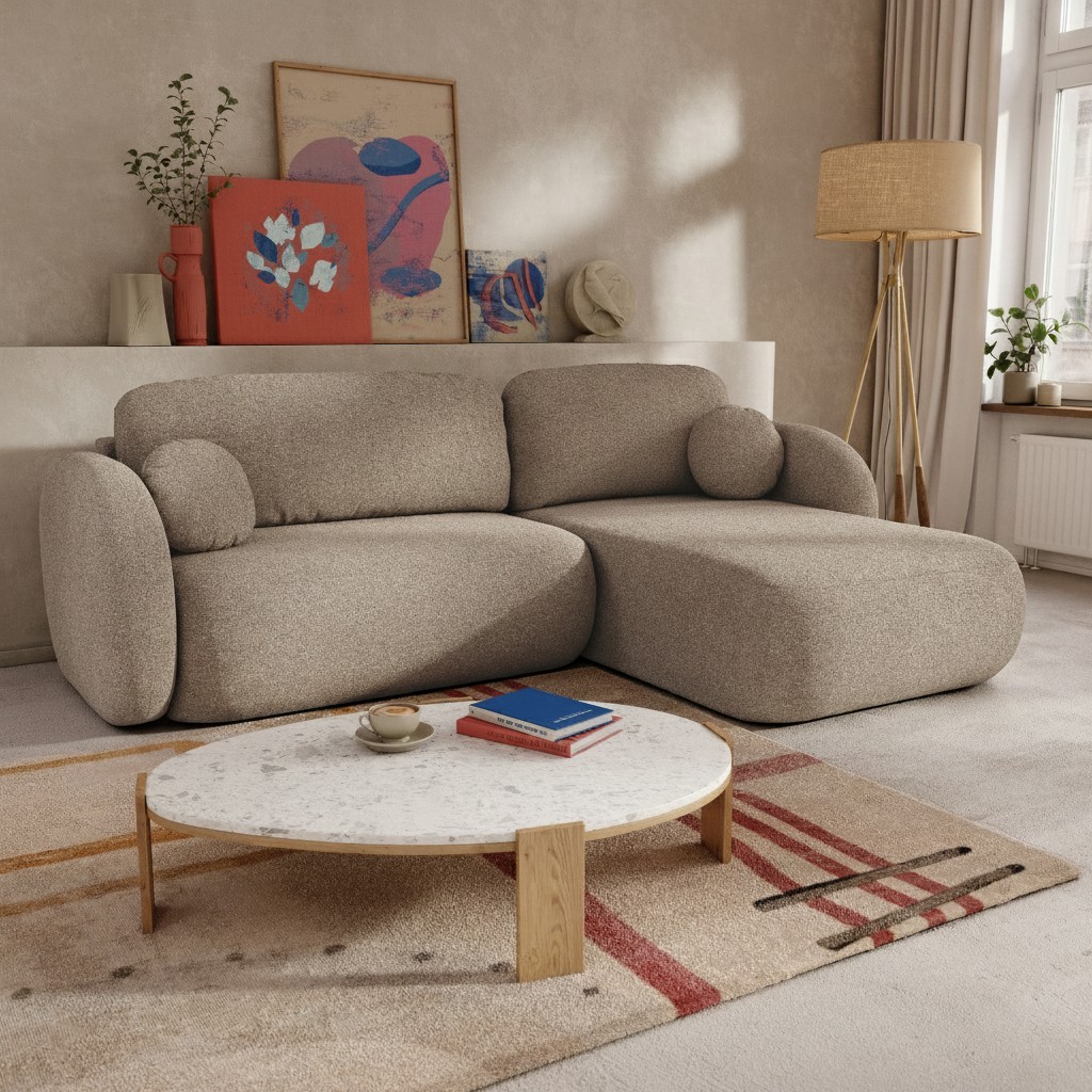Pensé pour devenir le coeur de votre salon, le canapé d'angle CARLOTTA allie esthétisme et confort. Ses courbes généreuses, ses lignes arrondies et son assise basse créent une ambiance accueillante, propice à la détente. Idéal pour réunir famille ou amis, il propose 4 places spacieuses et un angle droit confortable pour partager des moments chaleureux. Et pour accueillir vos invités de dernière minute, il se transforme facilement en lit d'appoint pour deux personnes.